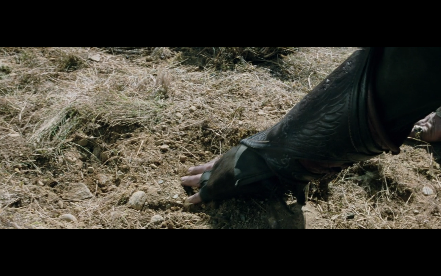 Wow, he really is digging in there, looking for Merry and Pippin.