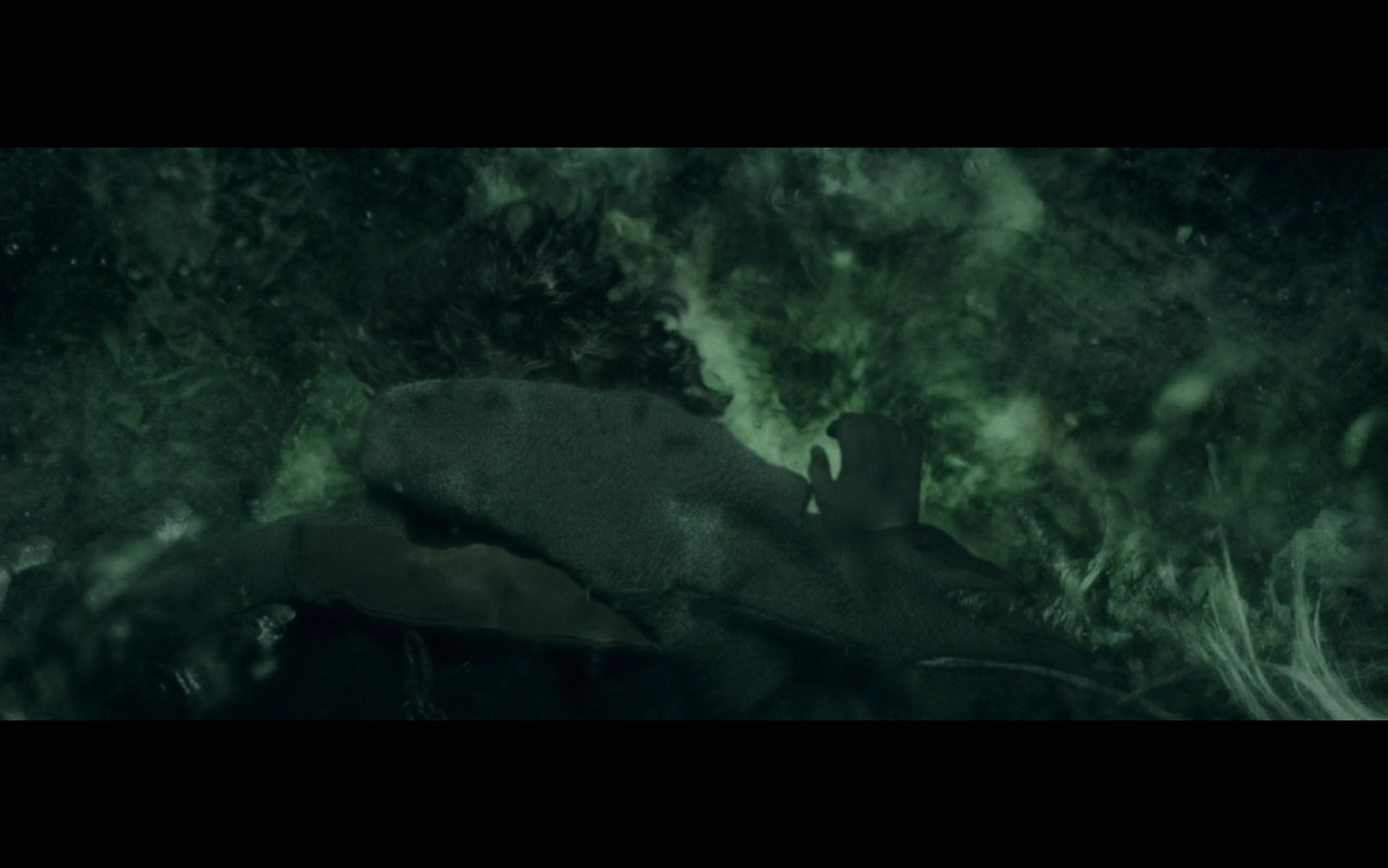 This is like the cave of evil part in The Empire Strikes Back in that I don’t really get what’s going on other than some weird, supernatural shit. Is this drowned corpse supposed to look like Elijah Wood? Is that why he walked over there? Is the corpse aware of him? Is that why its eyes opened like that? Which, by the way, that’s some freaky shit. And does that then hypnotize Frodo? Cause he just falls right in, and in my experience, I don’t fall forward unless I REALLY want to or I’ve had tequila.