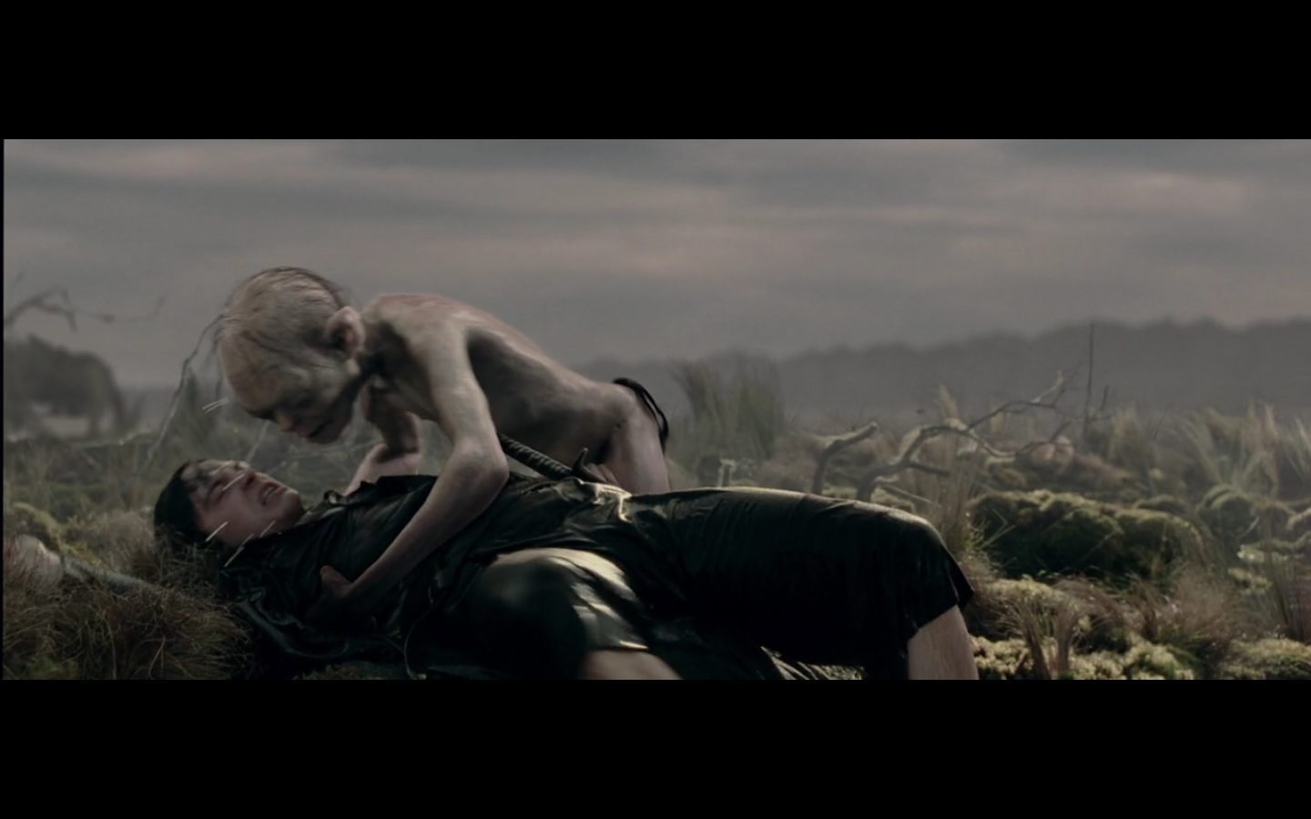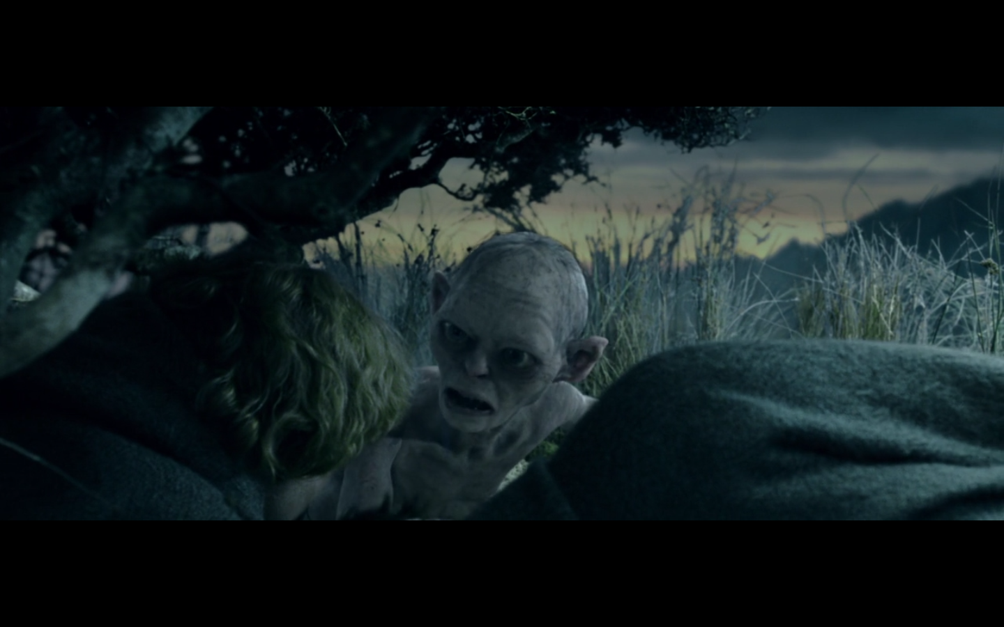 It’s pretty good that they threw this in, cause it makes Gollum a little more complex. You know he’s a devious little bastard, but when Frodo’s in real trouble, he’s going to try to save him EVERY TIME because of the ring. That’s made explicit in a little while, but this was a nice touch.