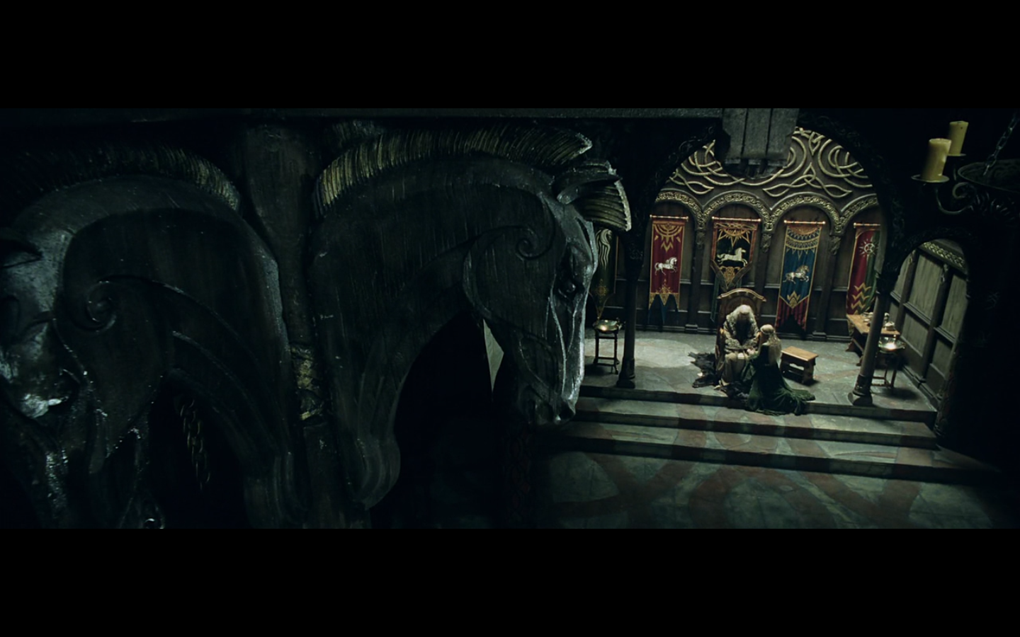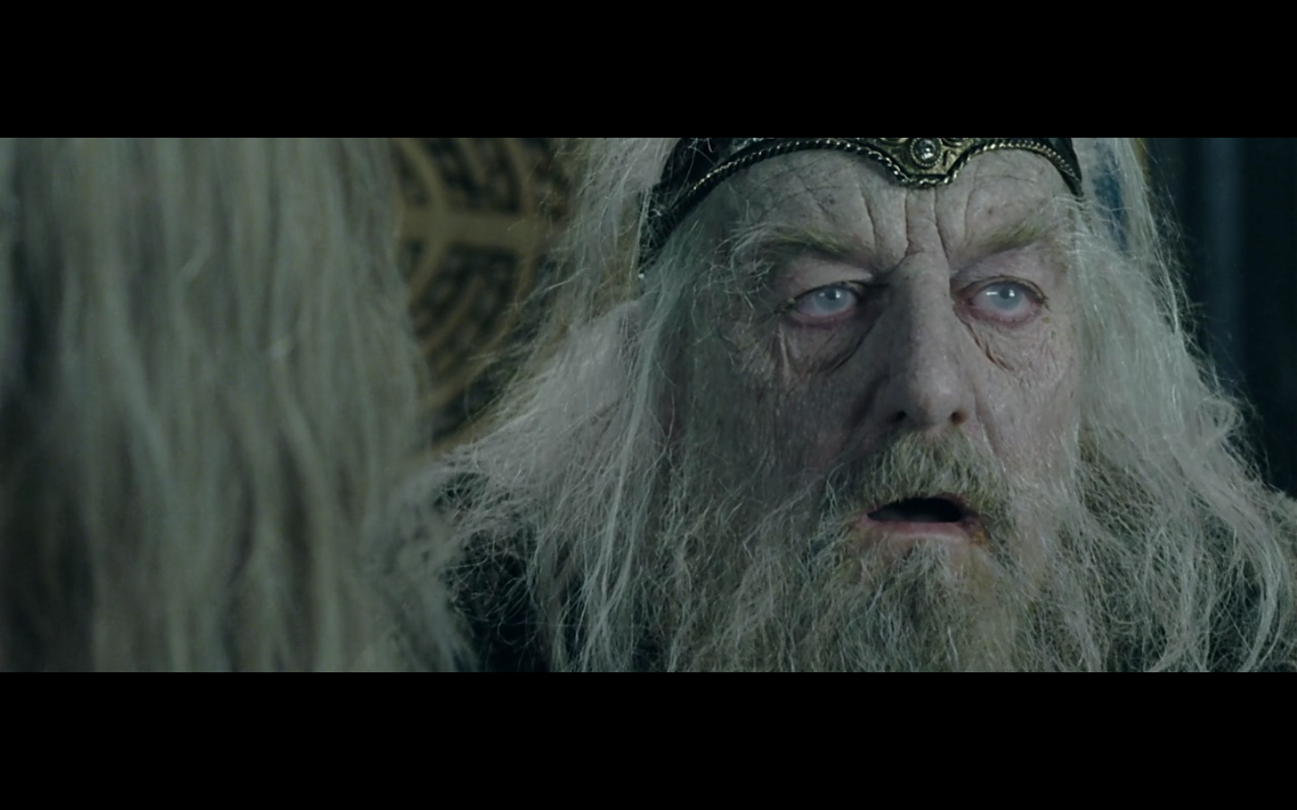 This is basically – Wormtongue drew a dick on Theoden’s face while he was asleep, and Gandalf just woke him up with a mirror.
