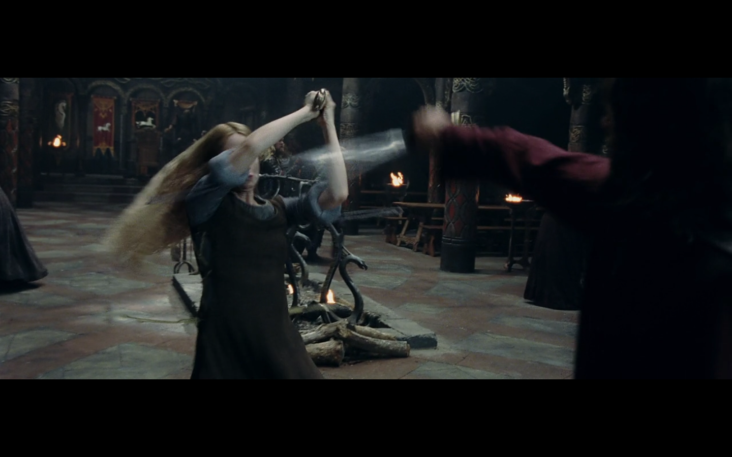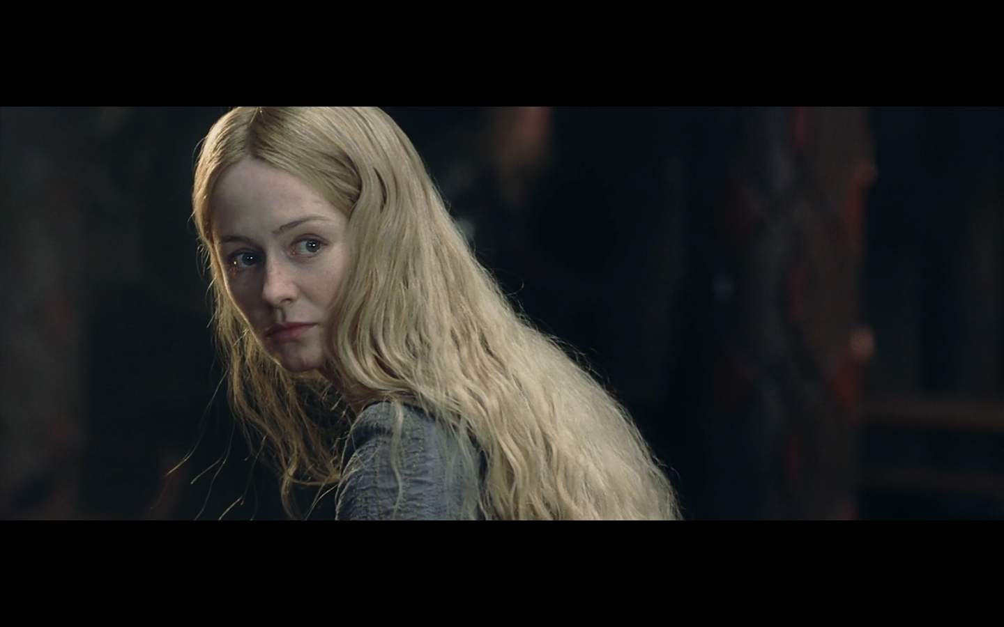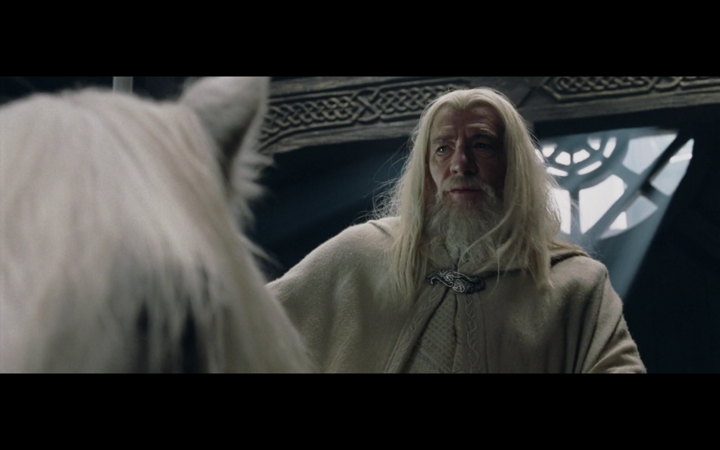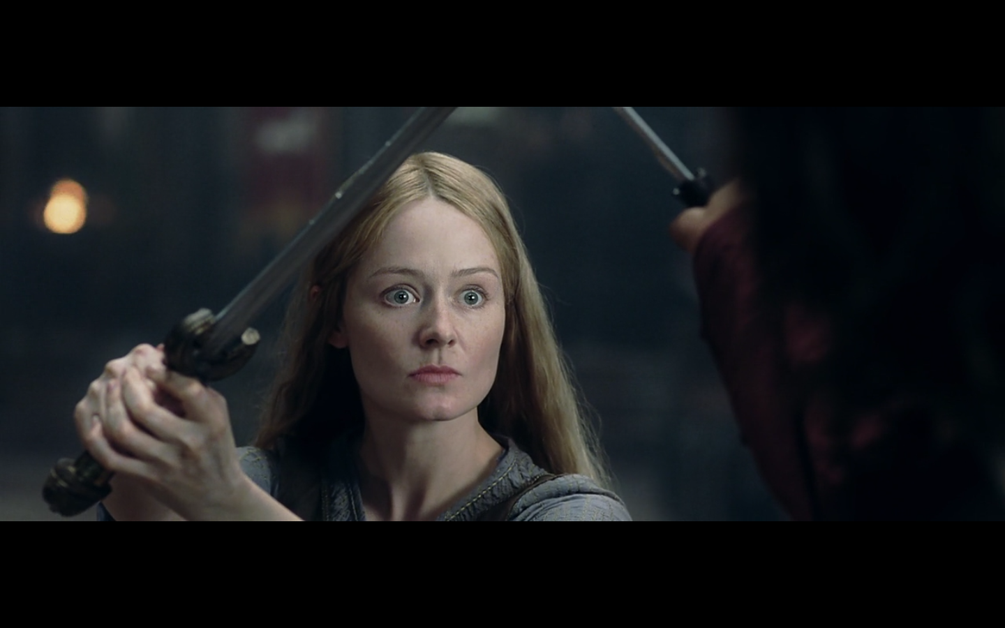 There’s a moment in here that I’m not gonna waste shots on where Theoden tells Eowyn that she has to lead the people to Helm’s Deep, and she’s like, “I can fight!” and he quickly goes, “No!” and tells her she has to do this, for him. Which is mostly about her wanting to fight and him being like, “No… I’m not losing another child,” and also probably because, “You’re a fucking girl. You’re not fighting,” because misogyny runs deep in societies like this. My thing is, wouldn’t you just be like, “Yes. I know you can fight. That’s why I’m asking you to lead them to Helm’s Deep.”? “You can fight. So you lead them, we’ll take care of this shit, and I’ll know that they’re in safe hands because you’re a good leader and you can fuck people up if they attack you.” Amazing how you can keep her safe and bolster her confidence at the same time.