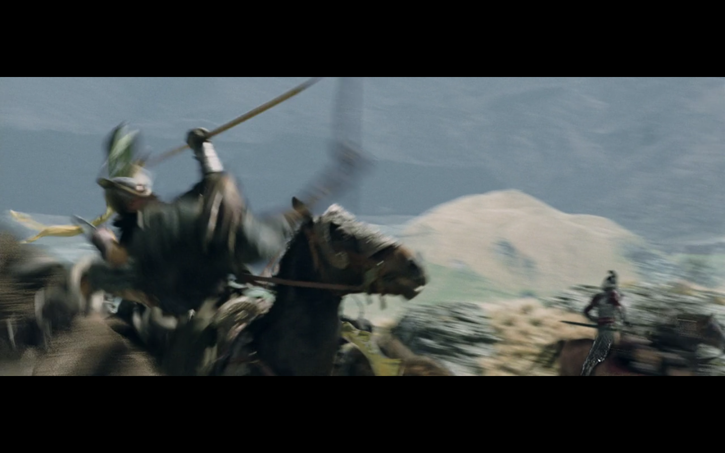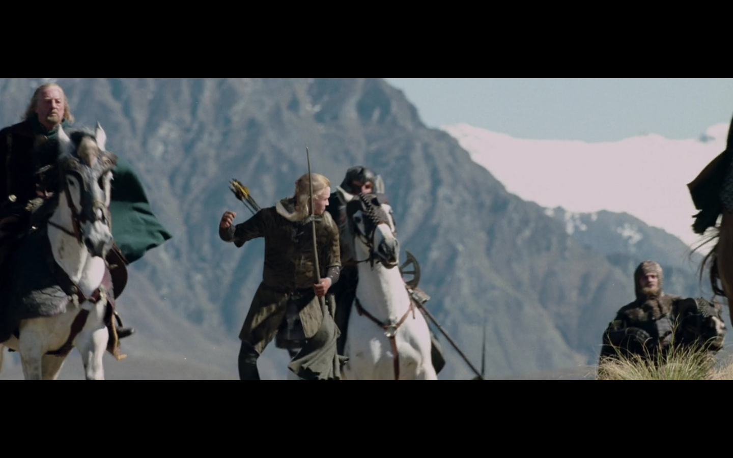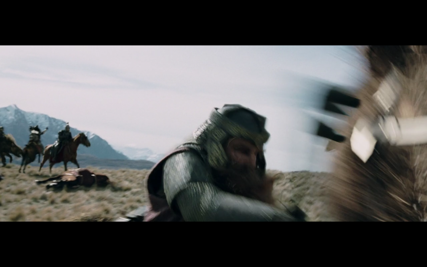 It must be said how sick that is that he swings around Gimli’s horse the long way around by grabbing the strap. Seriously, Legolas is one of my least favorite characters during all other parts of the franchise, but when the battle starts, I’m watching HIM.