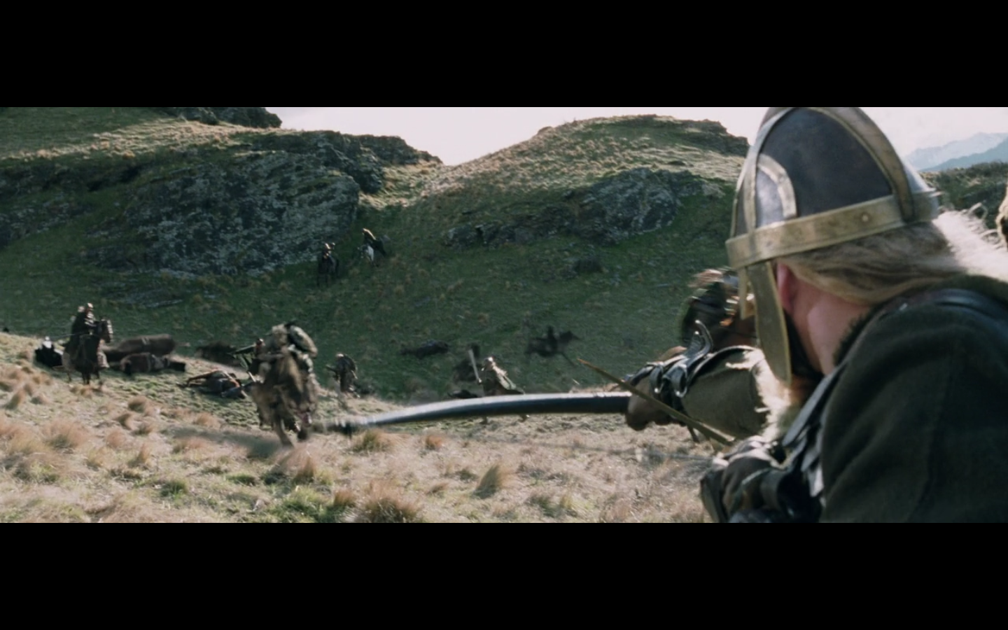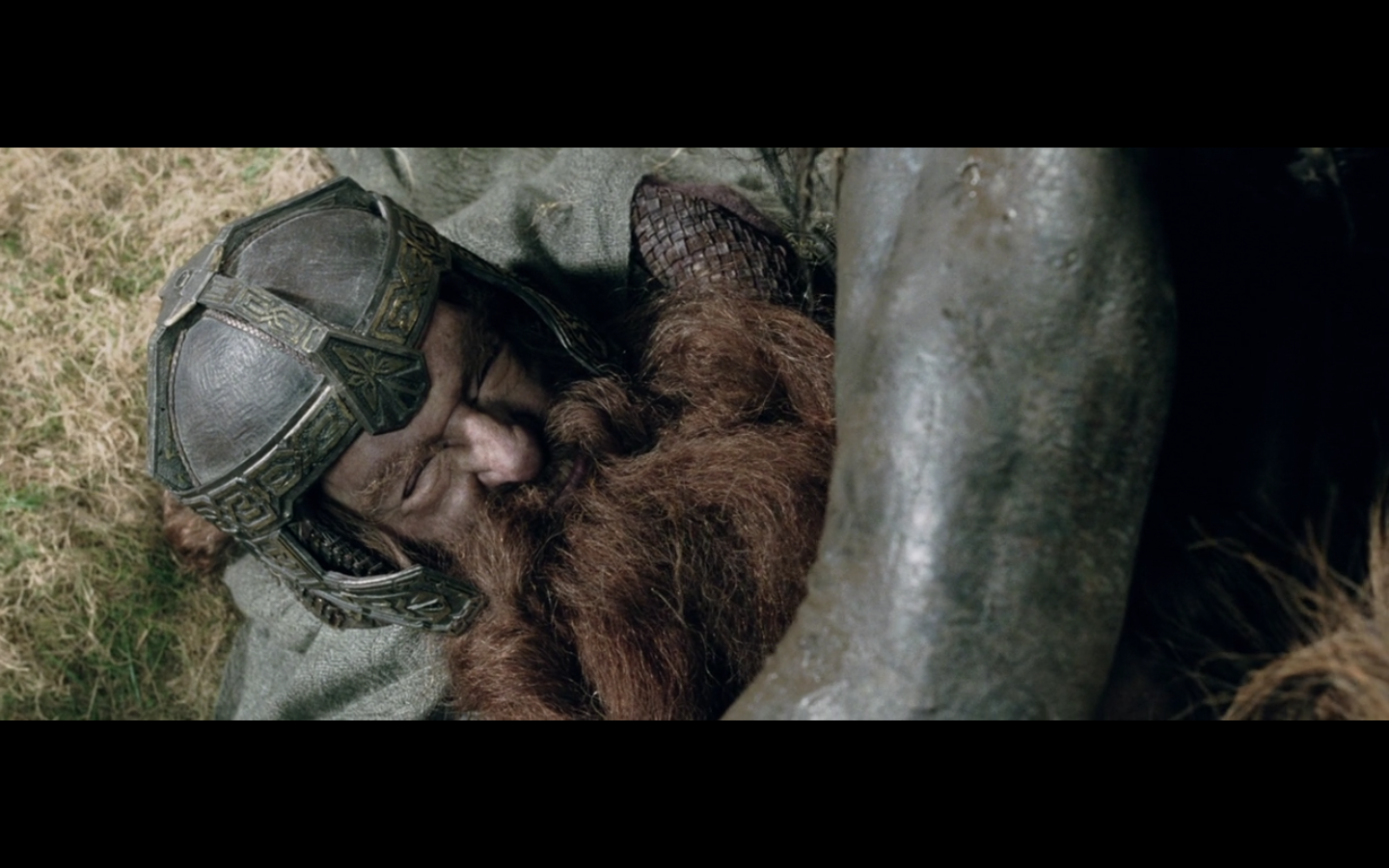 This was always a funny moment for me. He goes, “Where is Theodred? Where is my son?” and we immediately cut to this.