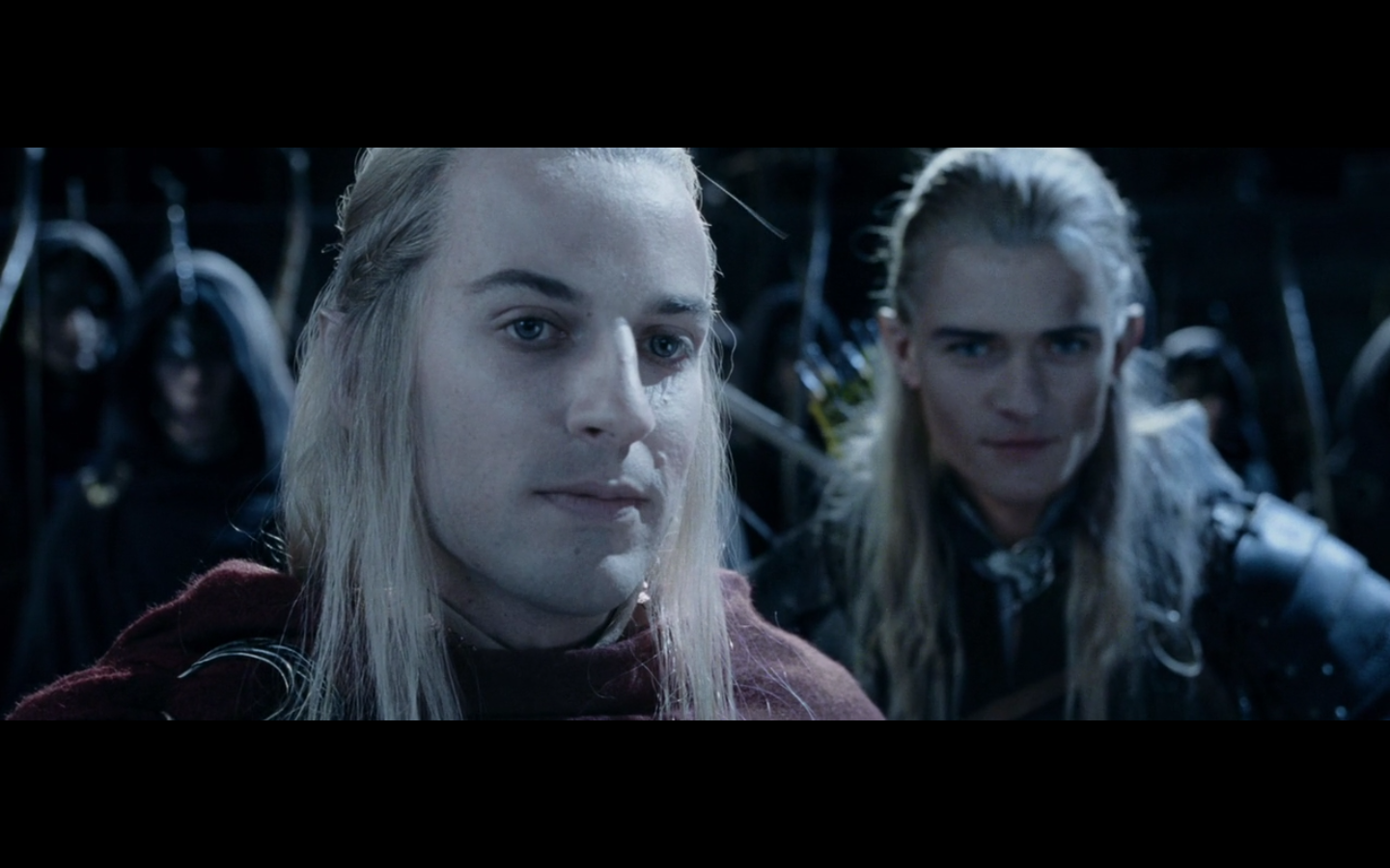 We met Haldir in Lorien in Fellowship of the Ring. He’s the one who called Gimli out for breathing heavily. Since he works for Galadriel, it’s confusing why he says Elrond sent them; what’s more, none of this happened in the book. No elves came to Helm’s Deep. It was Peter Jackson’s choice, and I’m cool with it.