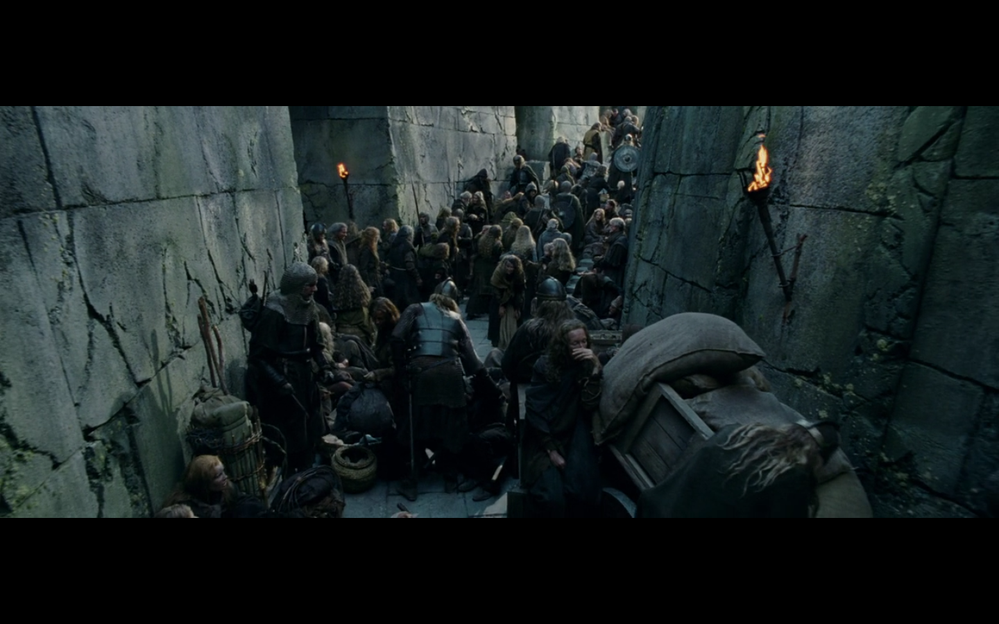 The cut back to Wormtongue shedding a tear is well-placed. He’s clearly a bad guy, but this is one of those where – he didn’t quite know the scale on which they were dealing until now. There’s no turning back, but he’s clearly overwhelmed by what he sees. He’s like Lucious Malfoy in that respect; he starts out as a loyal servant, but when shit starts really ramping up, he gets squeamish.