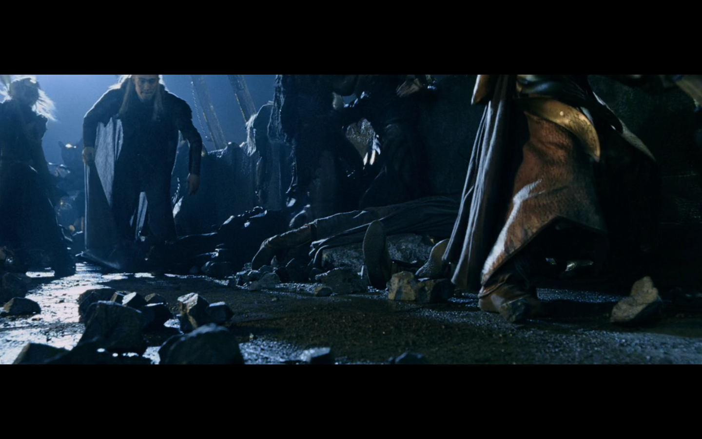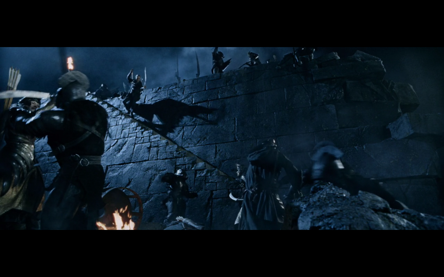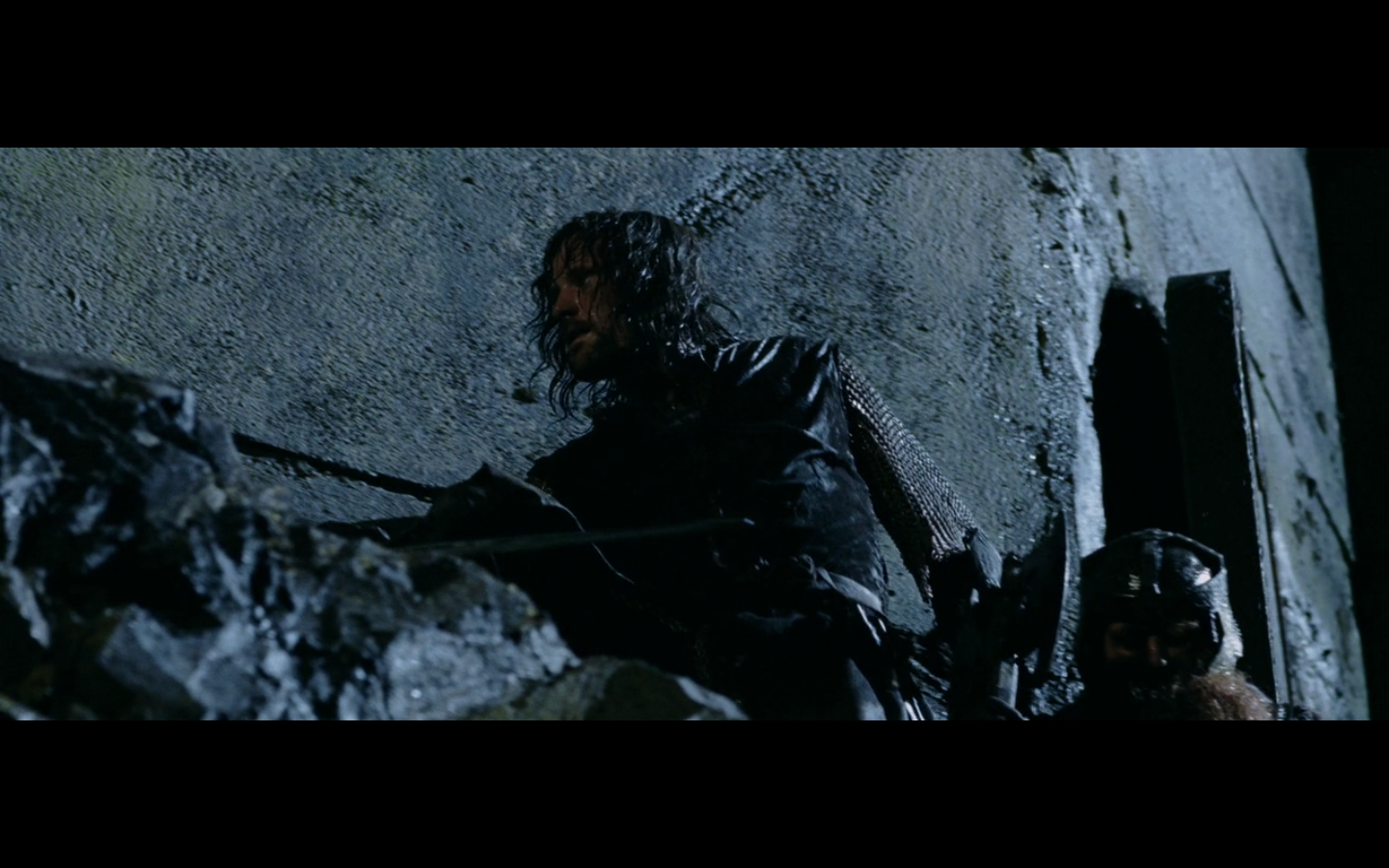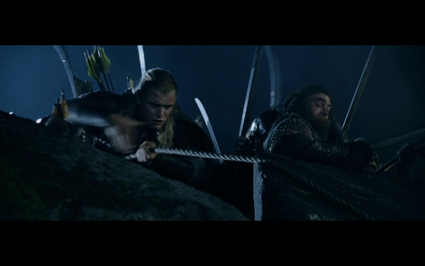 I like this shot. We just cut back as Gimli counts from 17-21 in kills. That’s great. That instantly makes a scene better, when a dude is just counting his kills as he goes along.