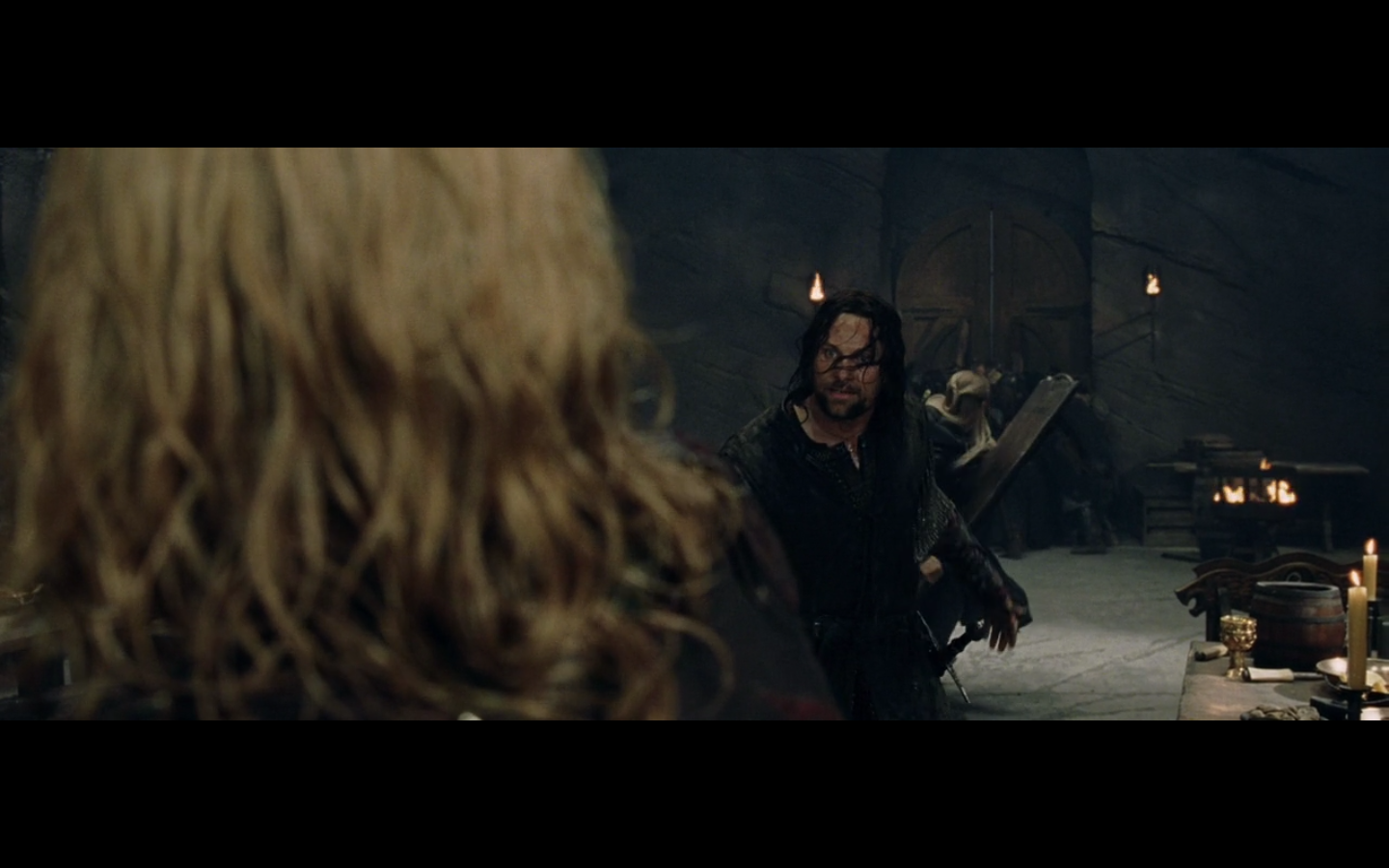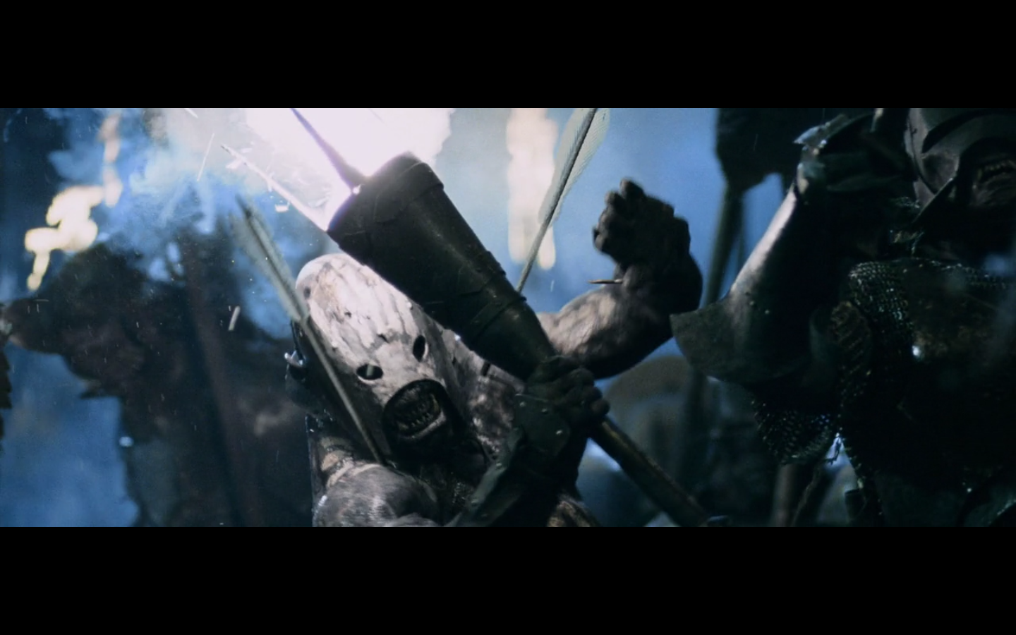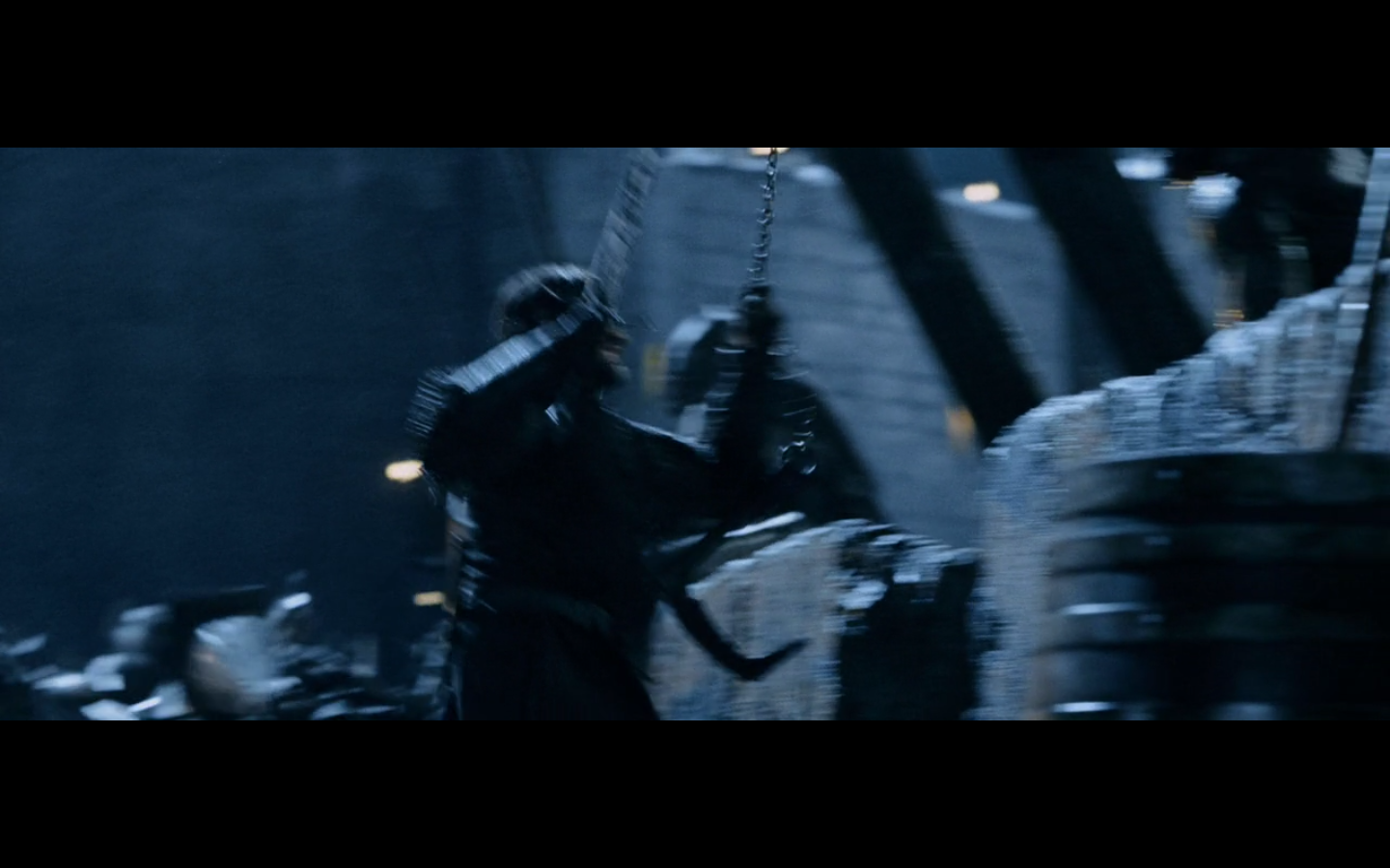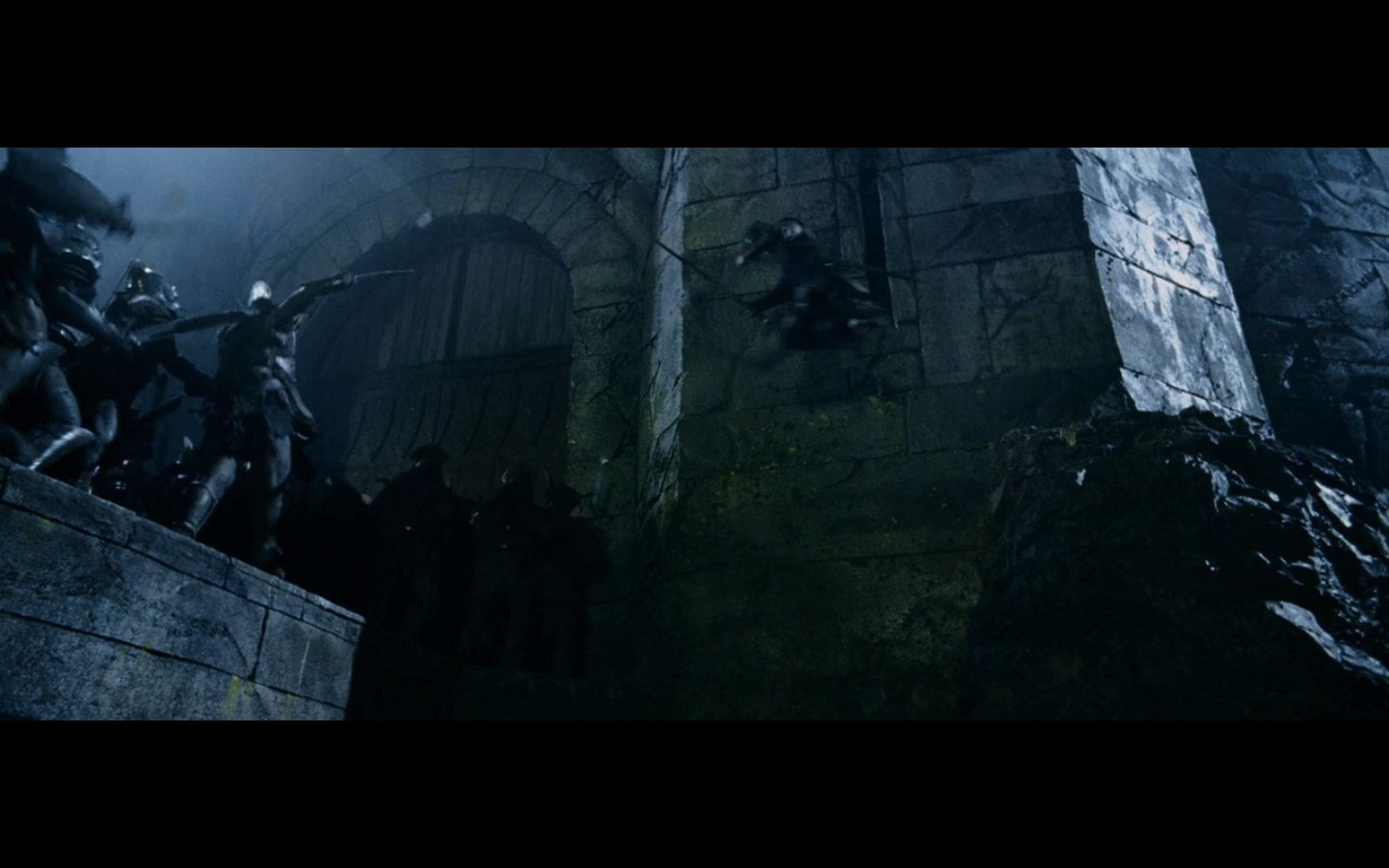 I like this shot. We just cut back as Gimli counts from 17-21 in kills. That’s great. That instantly makes a scene better, when a dude is just counting his kills as he goes along.
