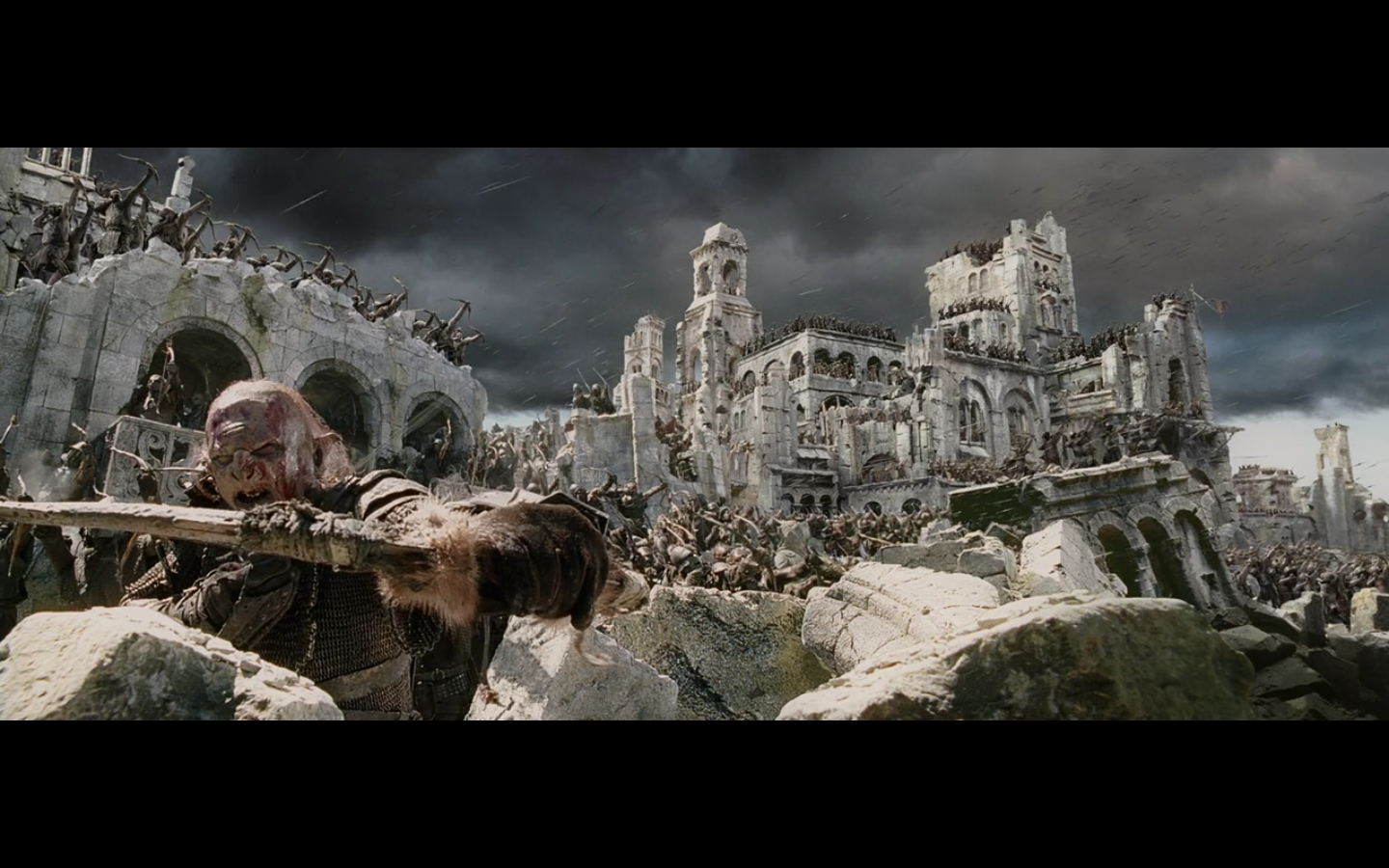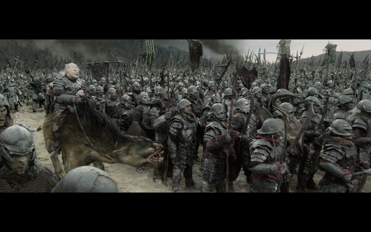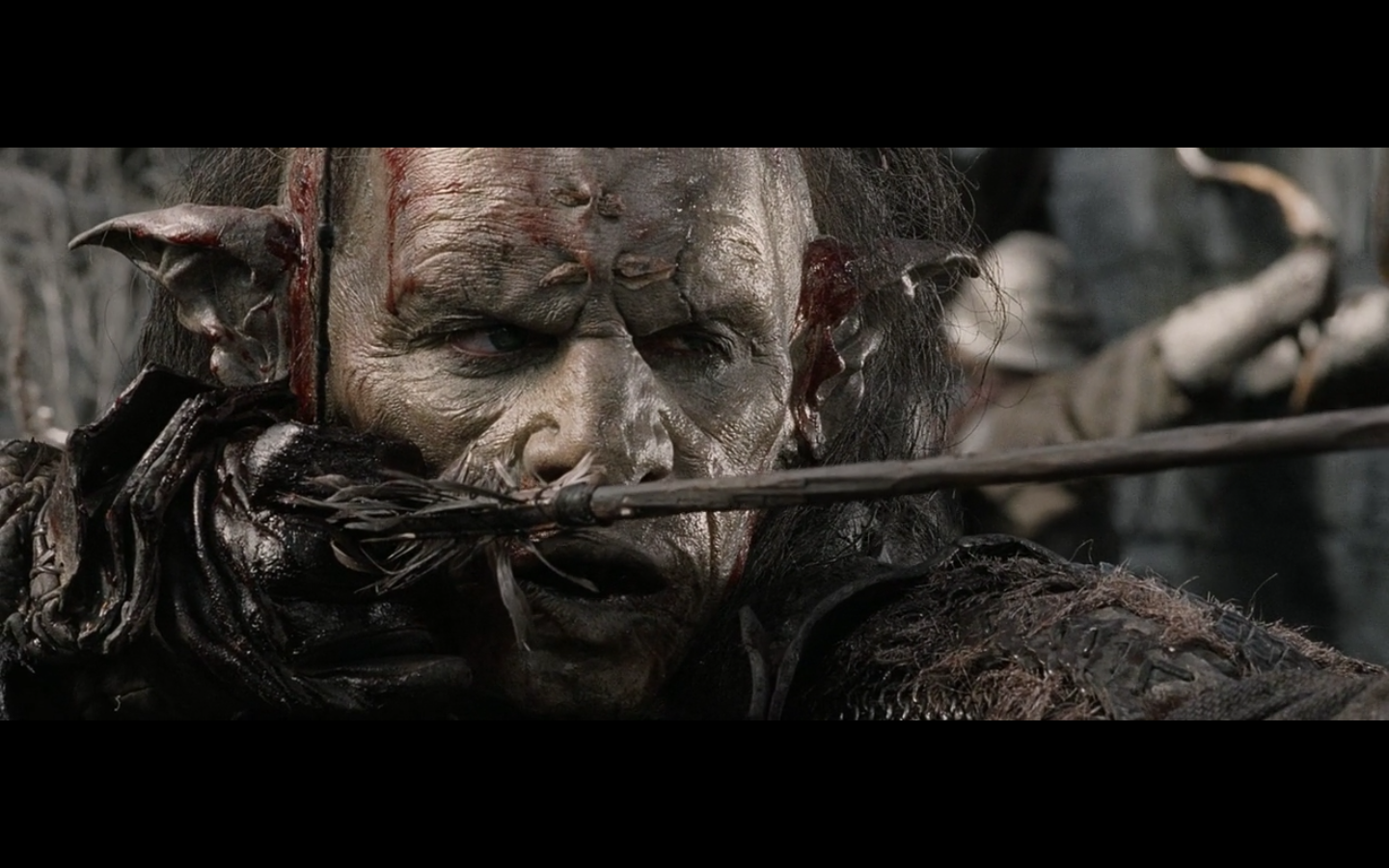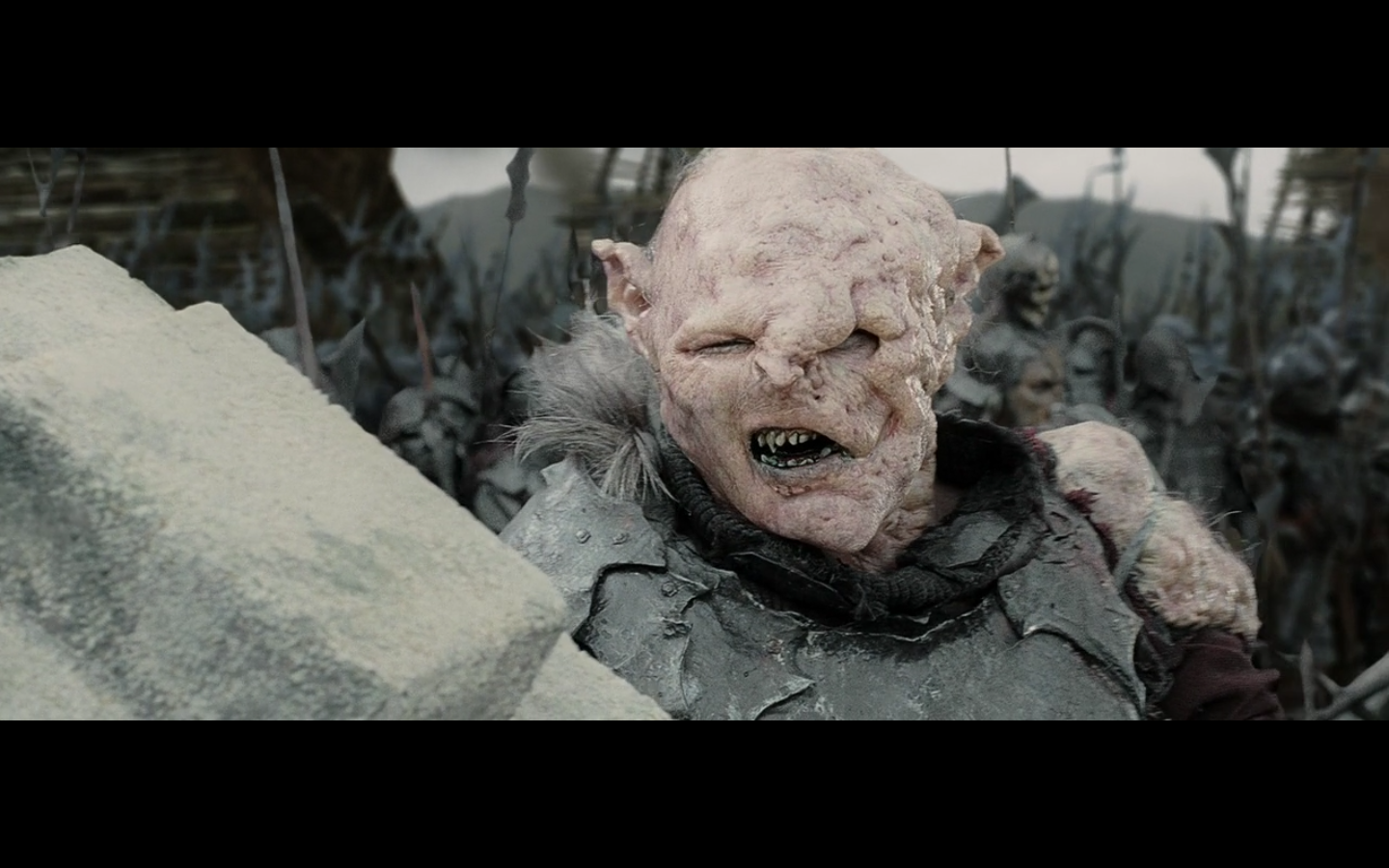 How was this particular orc chosen to lead the whole army? I know the Witch King of Angmar is telling him what to do, but he’s kind of the field marshall here. What makes this orc so special? Apparently his name is Gothmag, and he only gets one line in the book. Jackson decided to make something out of his character and draw it out. So we have no idea what he’s all about.