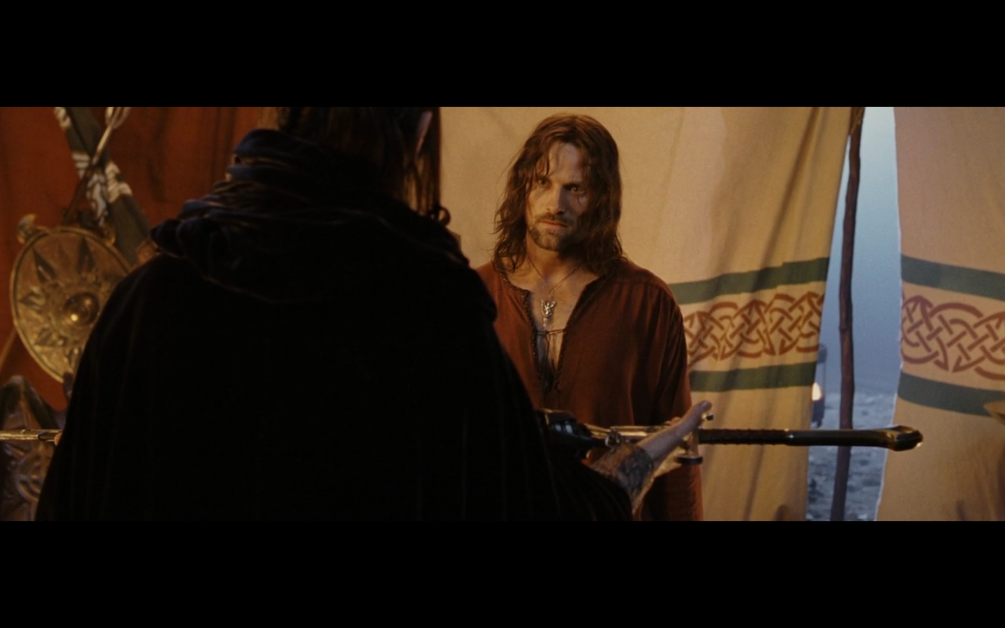 I also like this part. He lets the dude go and does a little shoulder shrug, like, “Yeah, that’s right. I’m the king of Gondor, motherfucker!”