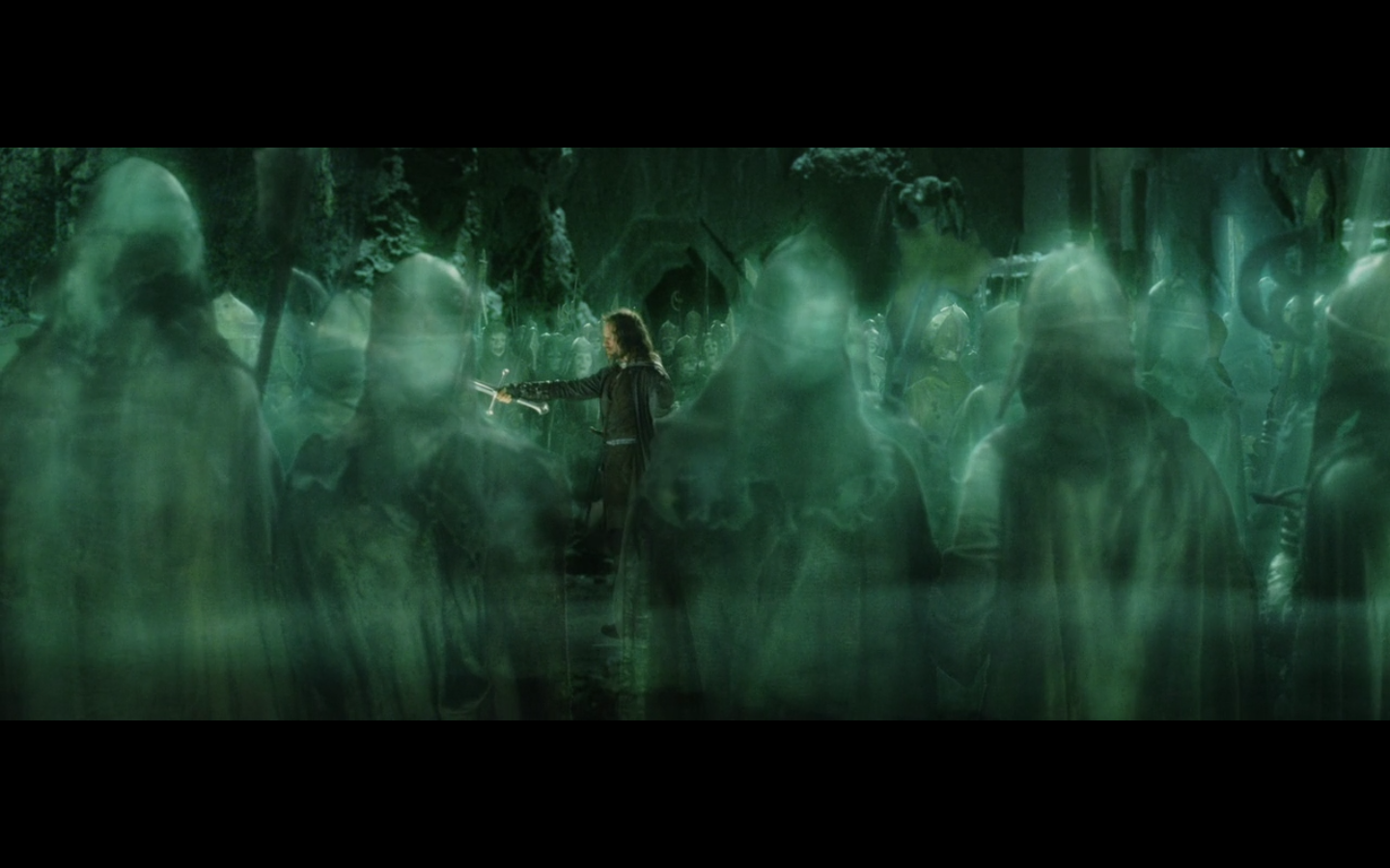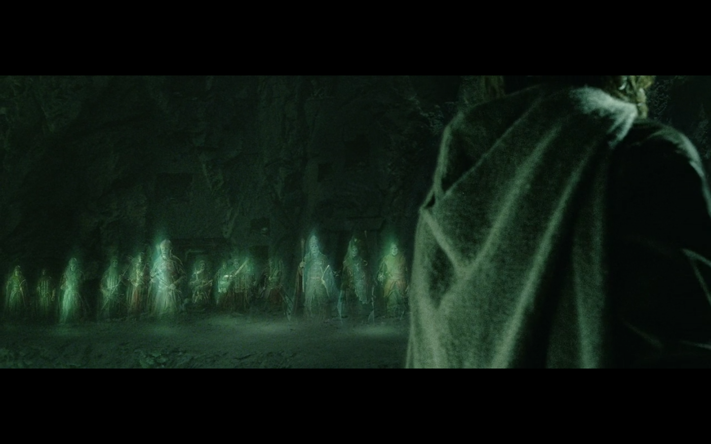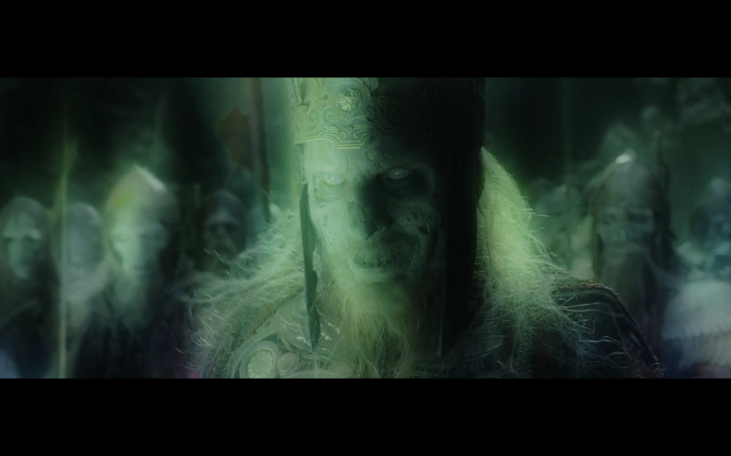 Seriously, these guys are the fucking nuclear weaponry of Middle Earth. You’d think kings would purposely have vassals swear an oath, then bitch out on purpose so they could be cursed and then used in death. On a contractual basis, or whatever. Like selling your soul to the devil so you could chill while you were alive and then be an invincible ghost warrior for the kingdom for a few wars before being released from your oath.
