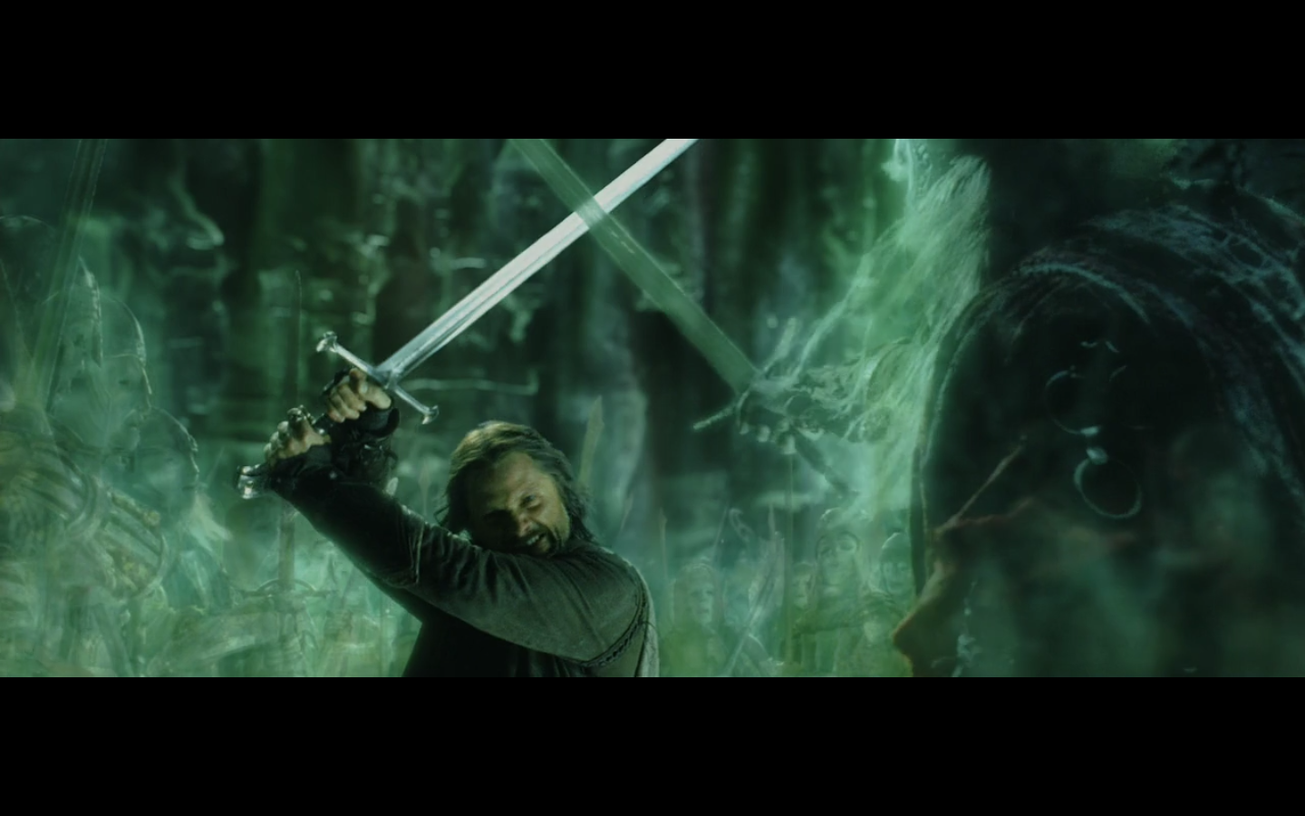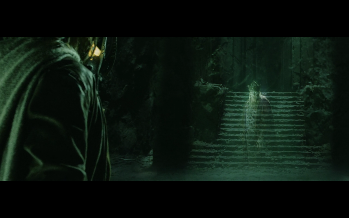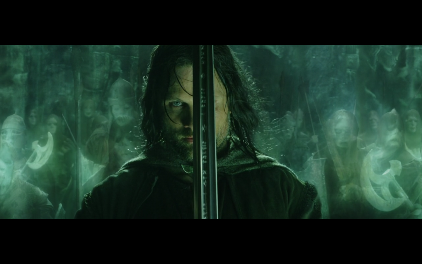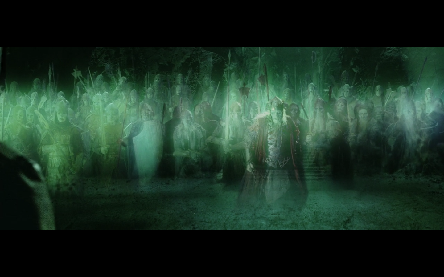 Seriously, these guys are the fucking nuclear weaponry of Middle Earth. You’d think kings would purposely have vassals swear an oath, then bitch out on purpose so they could be cursed and then used in death. On a contractual basis, or whatever. Like selling your soul to the devil so you could chill while you were alive and then be an invincible ghost warrior for the kingdom for a few wars before being released from your oath.