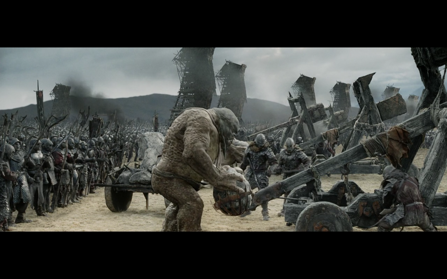 Here come the trebuchets! But why did you have to wait until Gandalf told you to fire? Wouldn’t you just be…firing? There are so many bad guys, you can’t miss. Don’t wait for an order. Just launch.