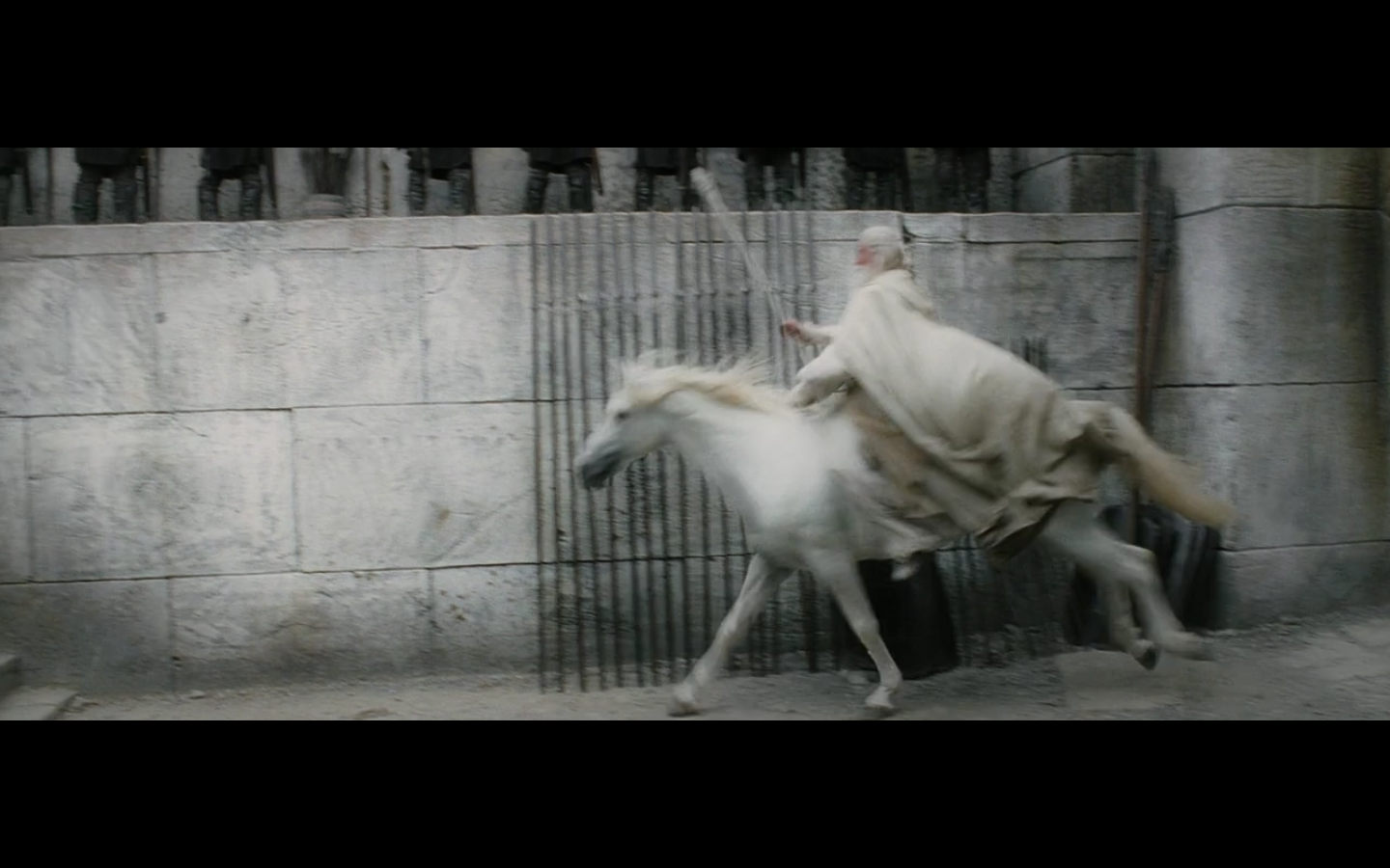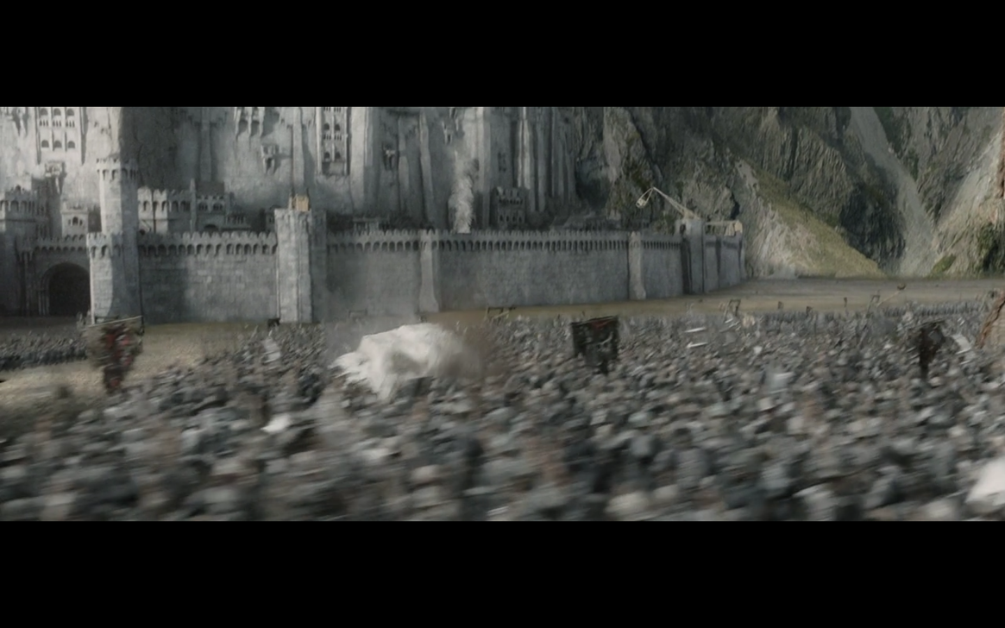 All the same, it’s pretty pathetic how these guys are all fleeing cause it’s just something to do and when Gandalf tells them to return to their posts, they all turn around and go, “Oh yeah, we could just do that. Okay.”