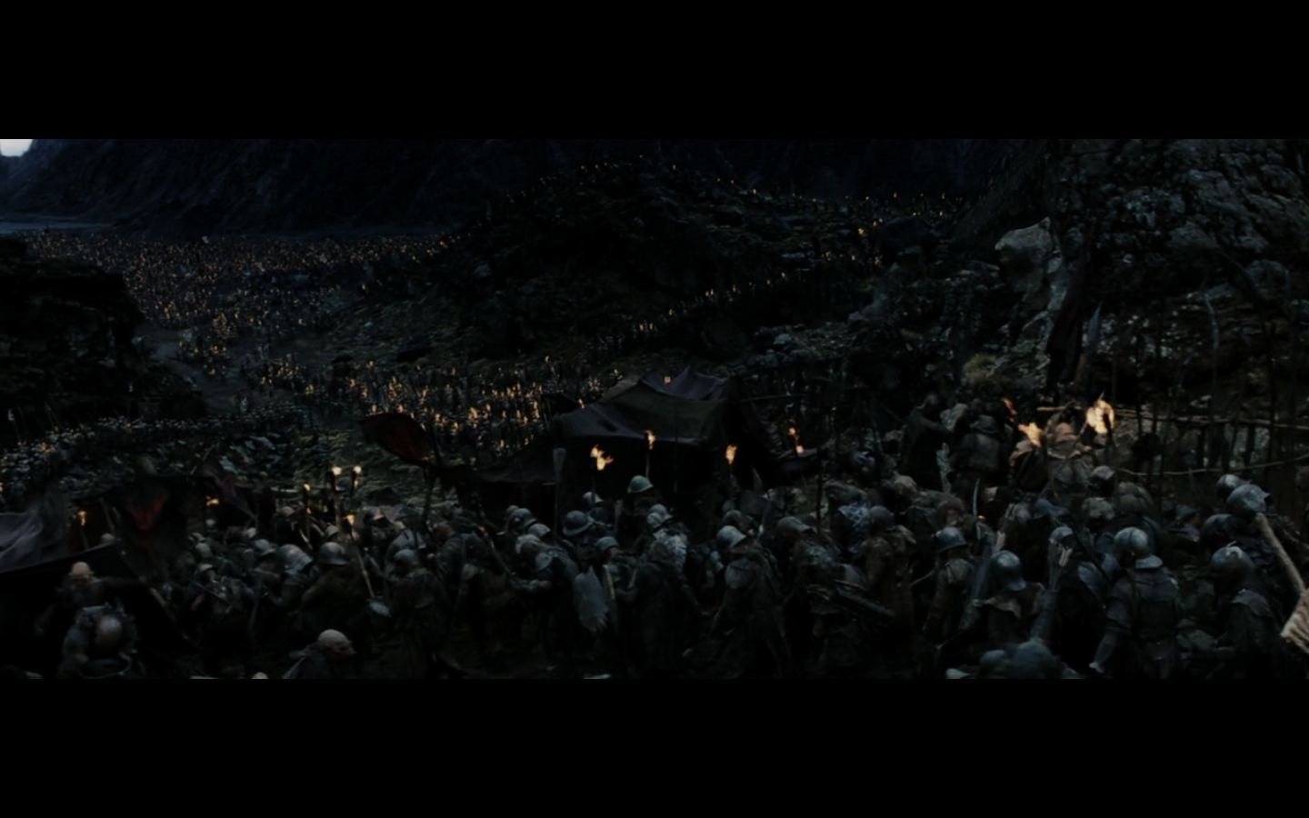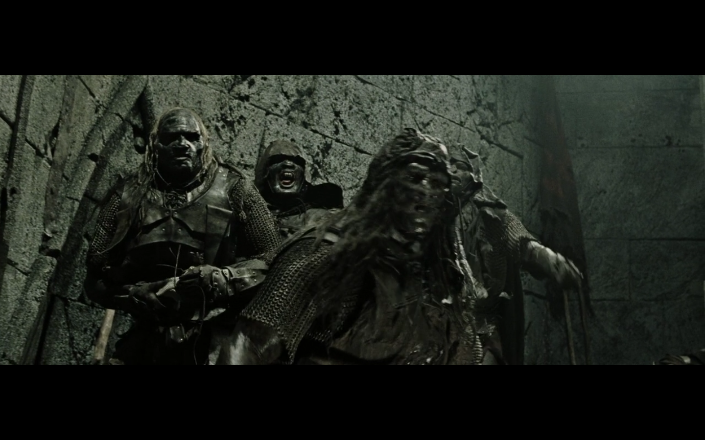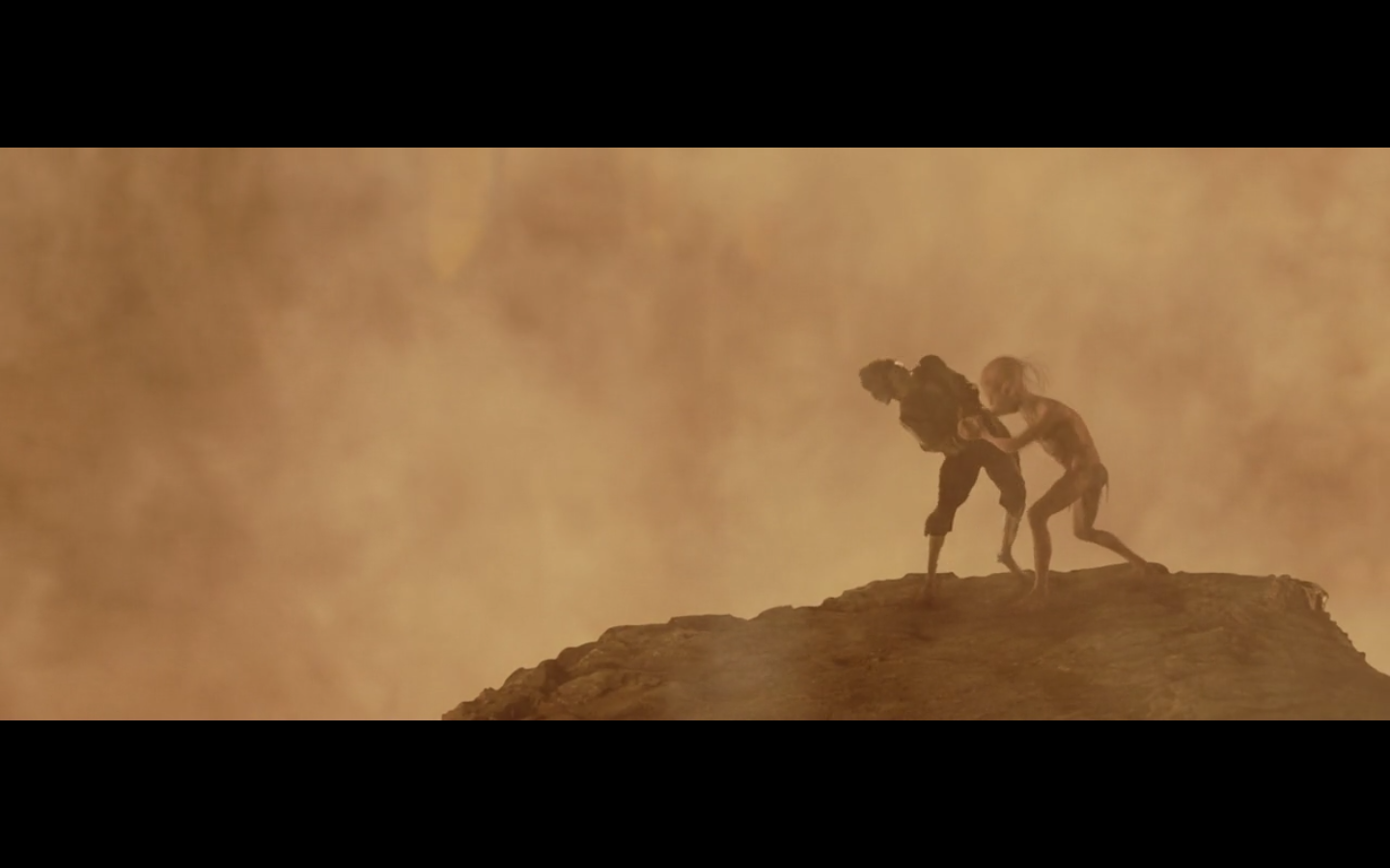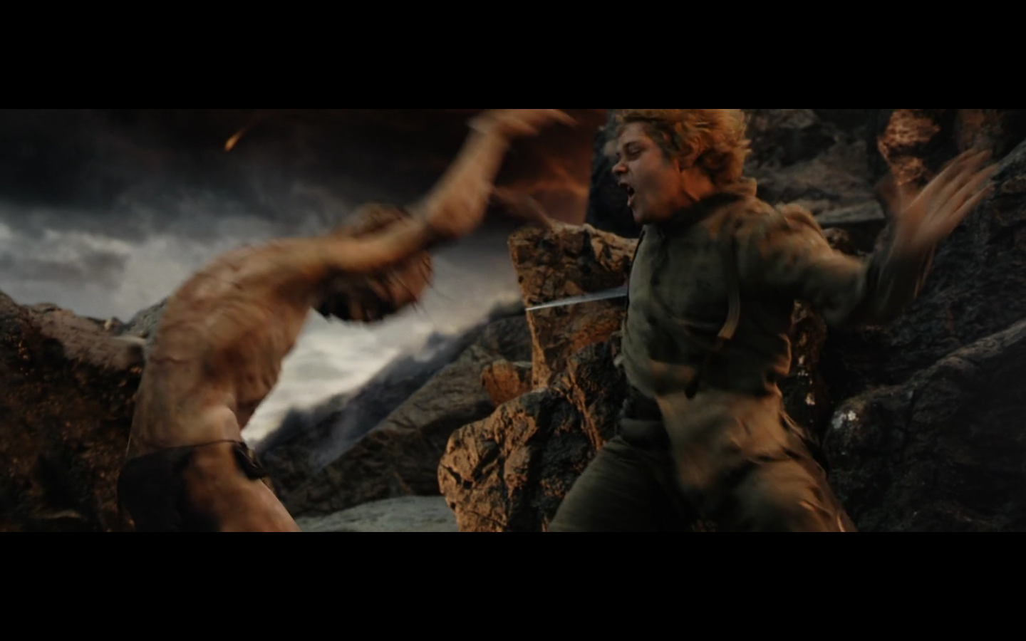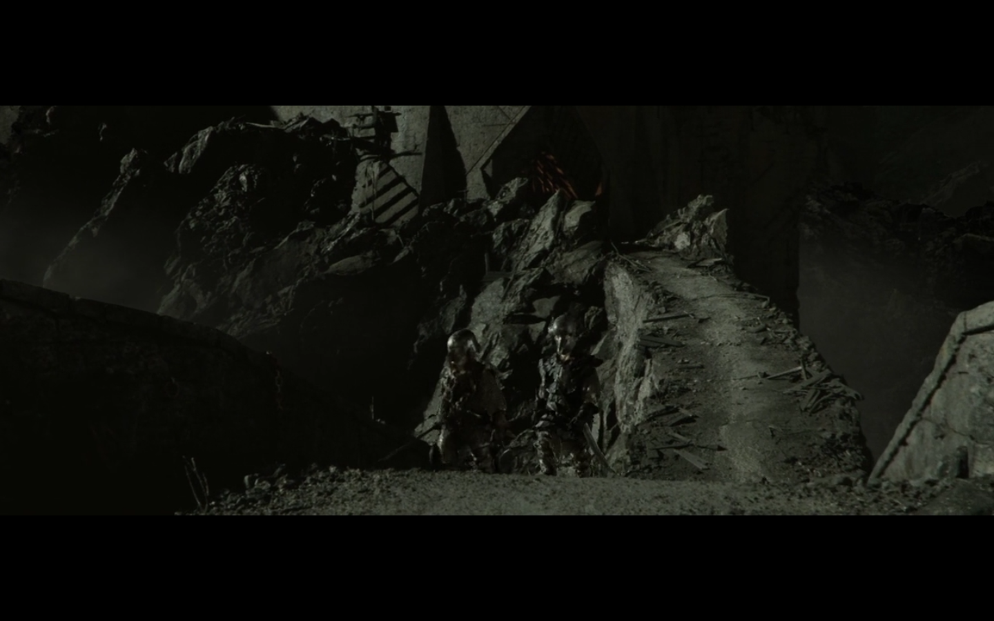 That’s the problem with orcs, though, isn’t it? They have no discipline and fight amongst themselves too much. And this little squabble is actually sort of a racial thing — the little one is a Morgul orc, coming from the Morgul Vale where the Witch King lives. The bigger one is an uruk-hai and doesn’t report to the same people. He’s a stronger sort of orc and seems to resent the Morgul orcs. The good guys don’t even really have this problem, but the orcs are prone to infighting, as we’re about to see.