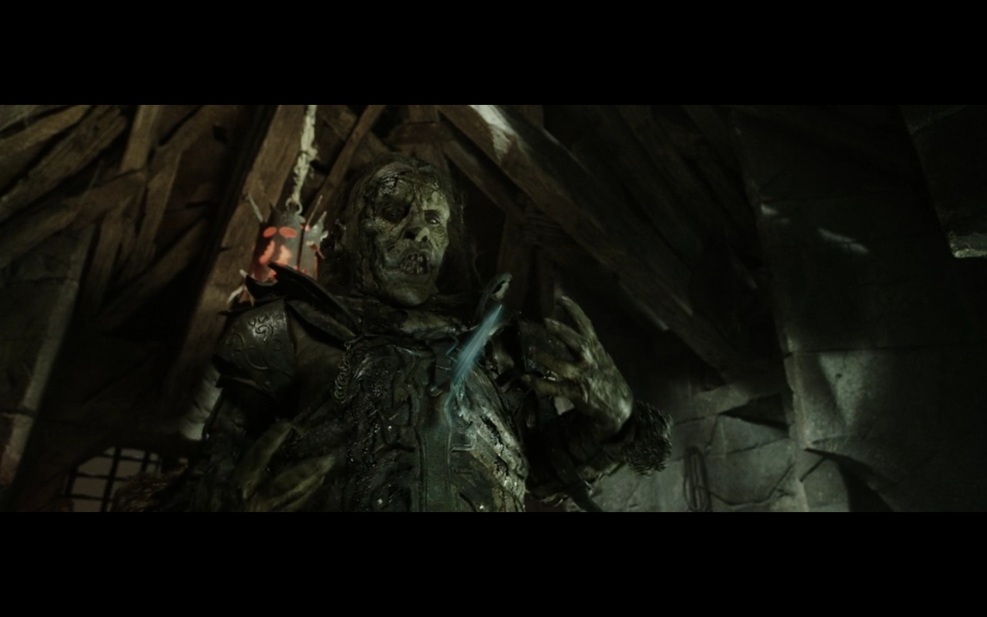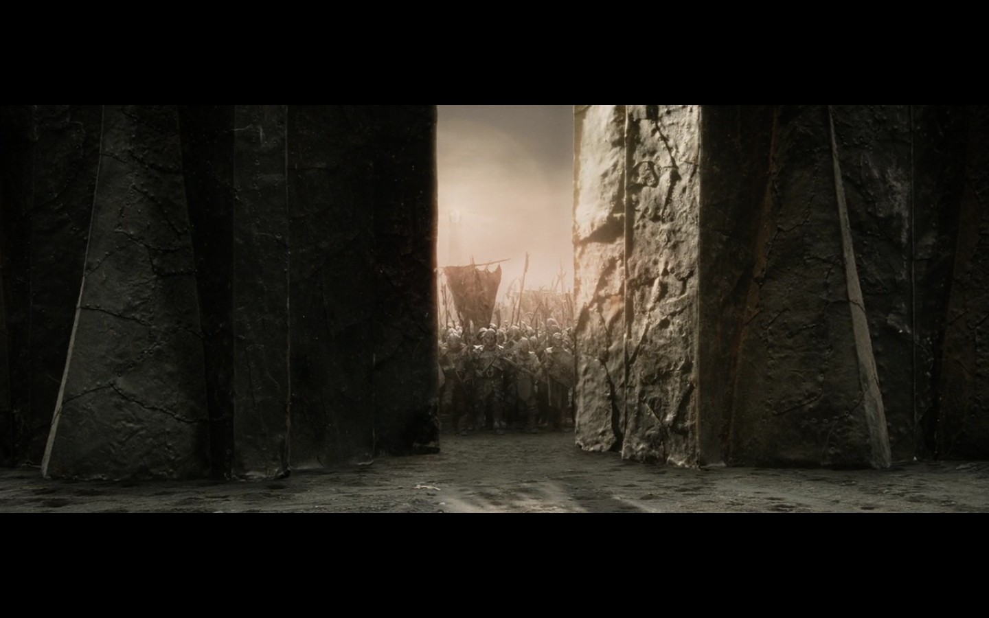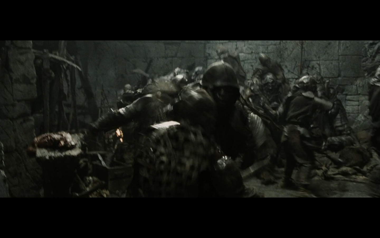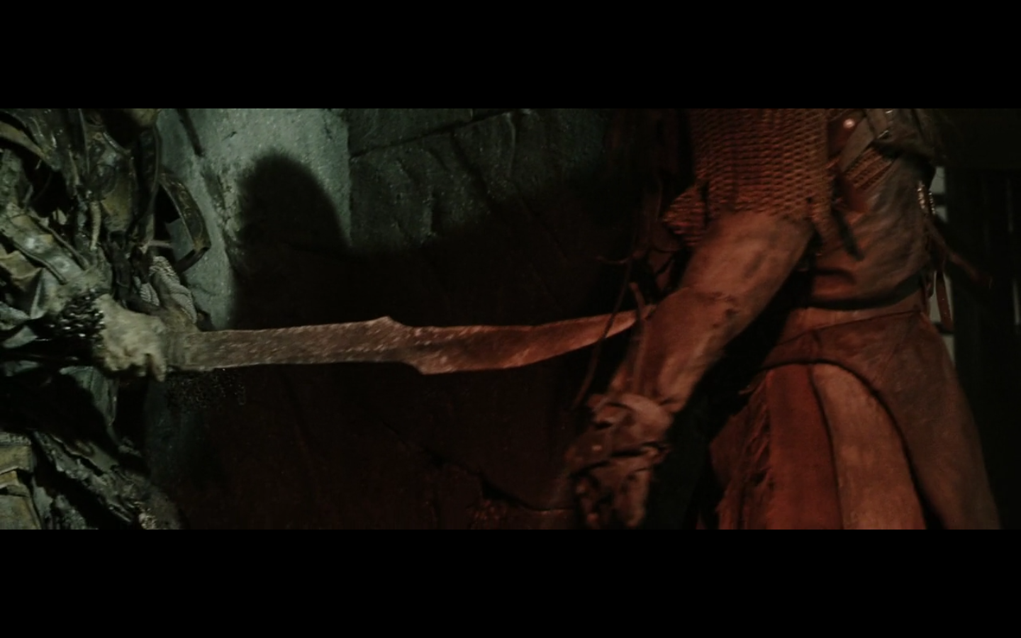 That’s the problem with orcs, though, isn’t it? They have no discipline and fight amongst themselves too much. And this little squabble is actually sort of a racial thing — the little one is a Morgul orc, coming from the Morgul Vale where the Witch King lives. The bigger one is an uruk-hai and doesn’t report to the same people. He’s a stronger sort of orc and seems to resent the Morgul orcs. The good guys don’t even really have this problem, but the orcs are prone to infighting, as we’re about to see.