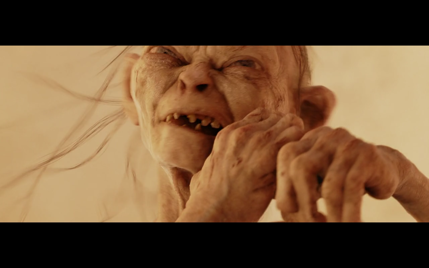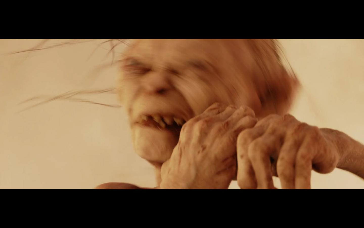 Gollum sure found that hand and bit through it. I’m guessing he could feel the ring on his lips or whatever, so he knew which finger to bite. But is it that easy to bite through a finger? I’ve bitten my own fingers, but I’ve obviously never applied anywhere NEAR the amount of pressure you’d need to bite it off. How hard would it be? Dude’s only got like three teeth, too. So it’s questionable how he doesn’t just drive one tooth deep into the finger and have to bite a lot more times to get the whole thing off. But I’m talking about a weird little monster biting off a midget’s finger in a volcano. We can just move on.