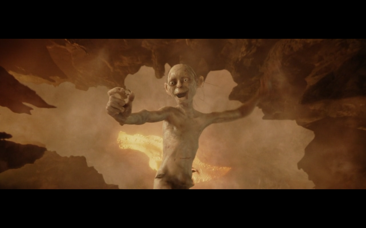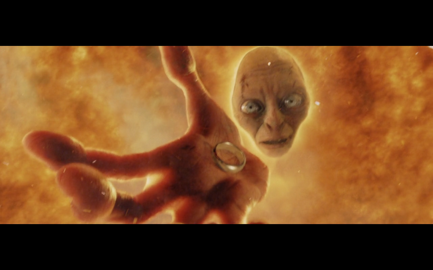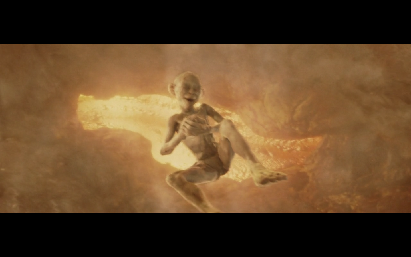 This is a nice moment. He’s just happy he has the Precious, even though he’s about to die a fiery death.