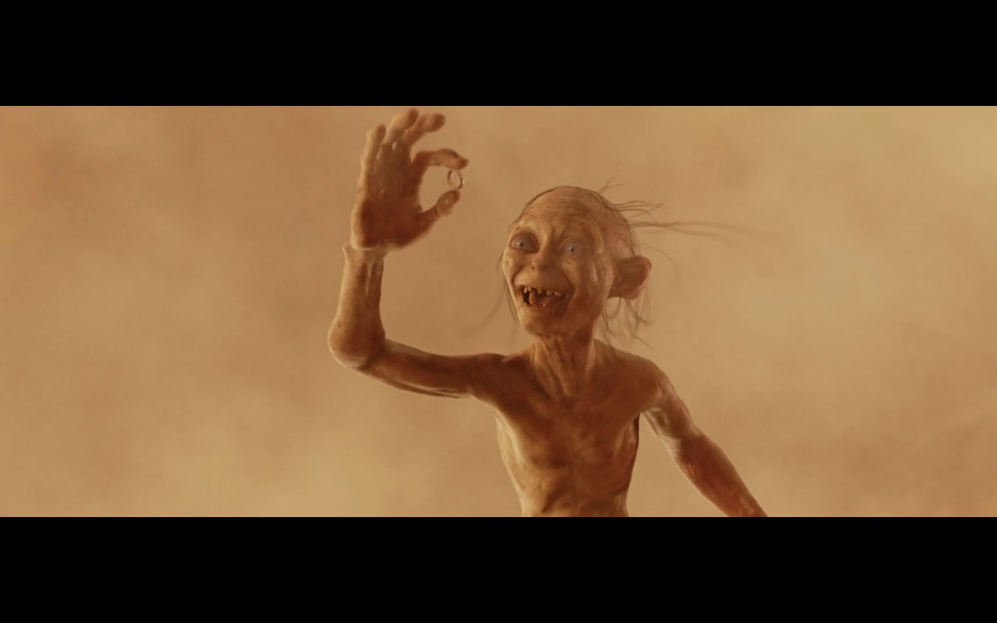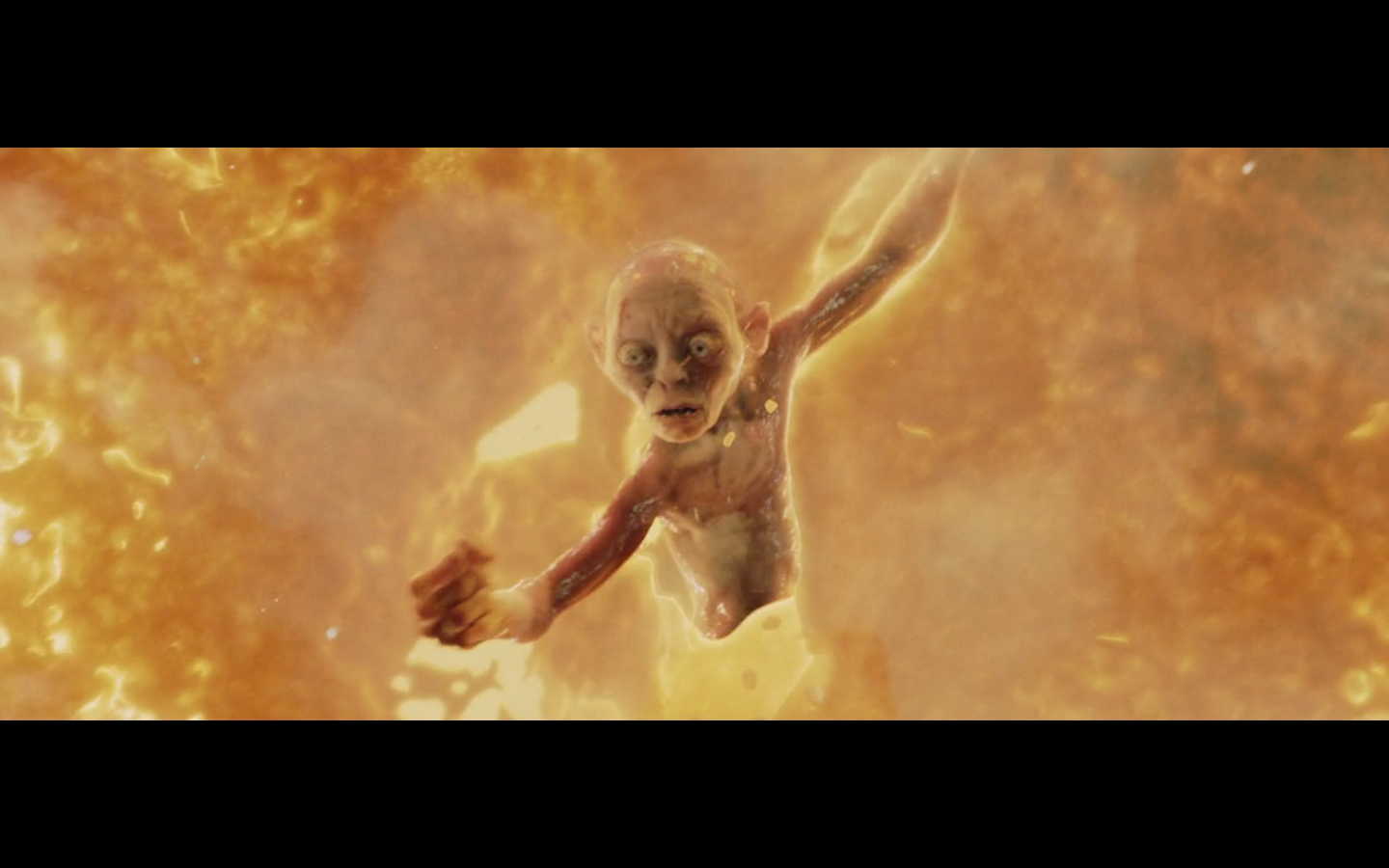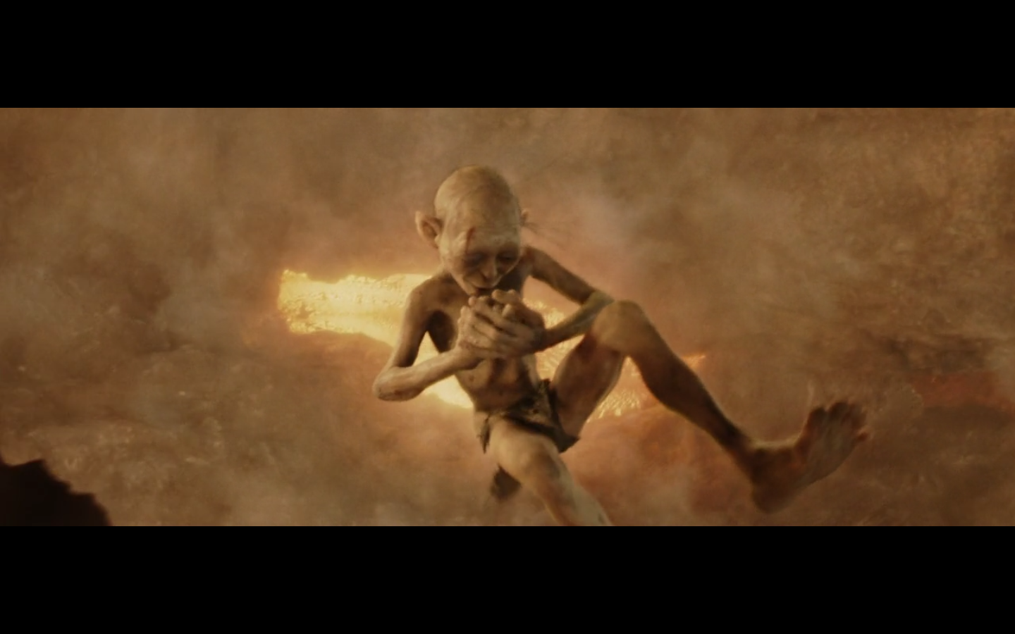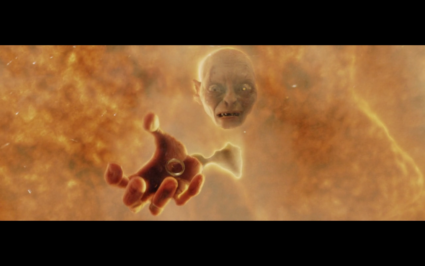 This is a nice moment. He’s just happy he has the Precious, even though he’s about to die a fiery death.