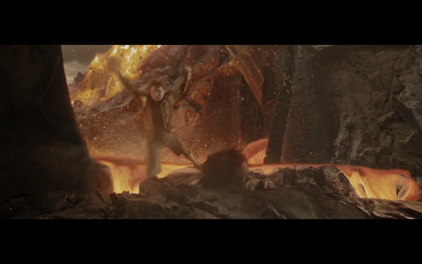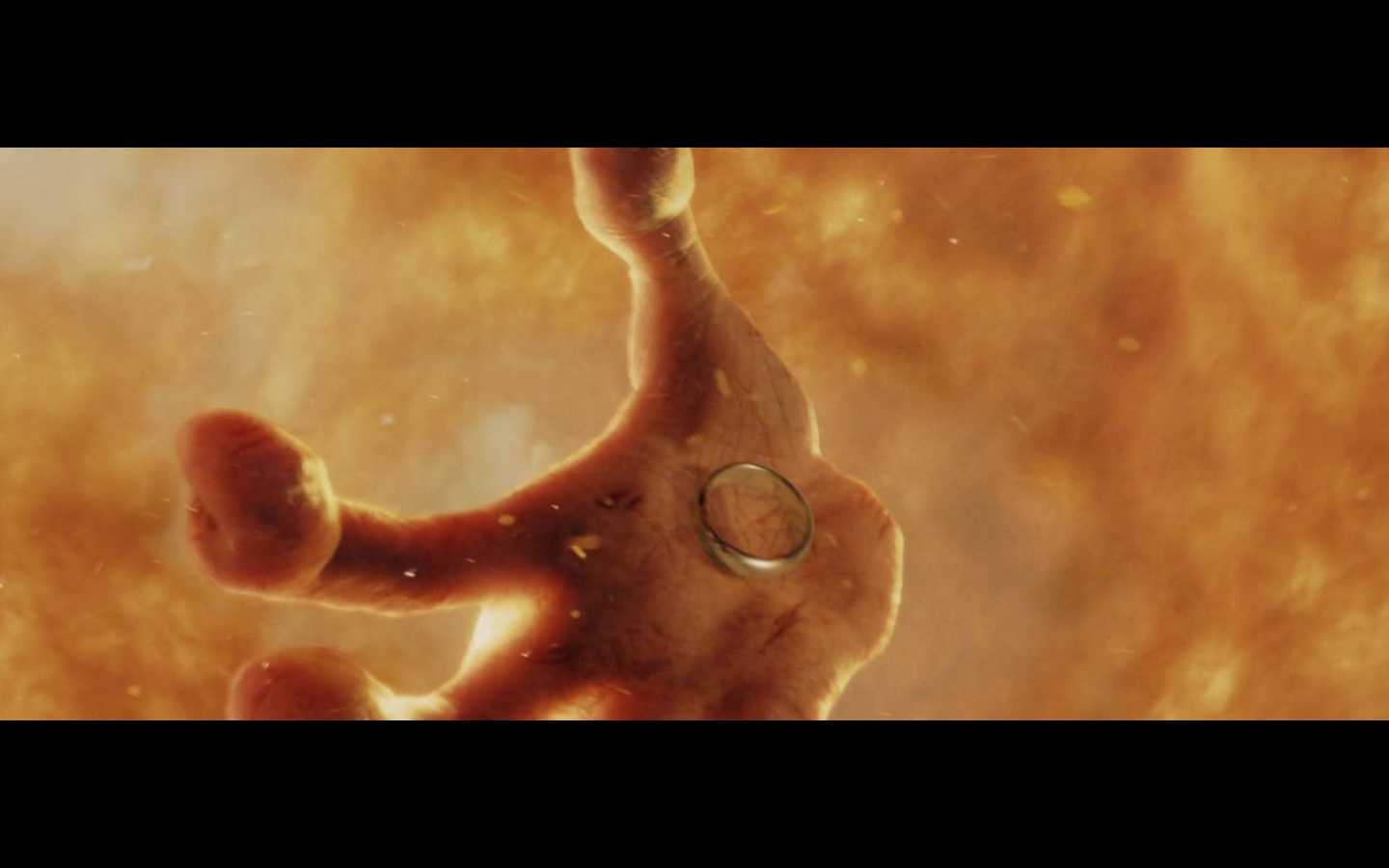Yeah, it looks like as he’s falling, he’s just so smitten with the ring that he doesn’t notice what’s going on. And then when he hits the lava, it’s like, “Wait, WHAT?”