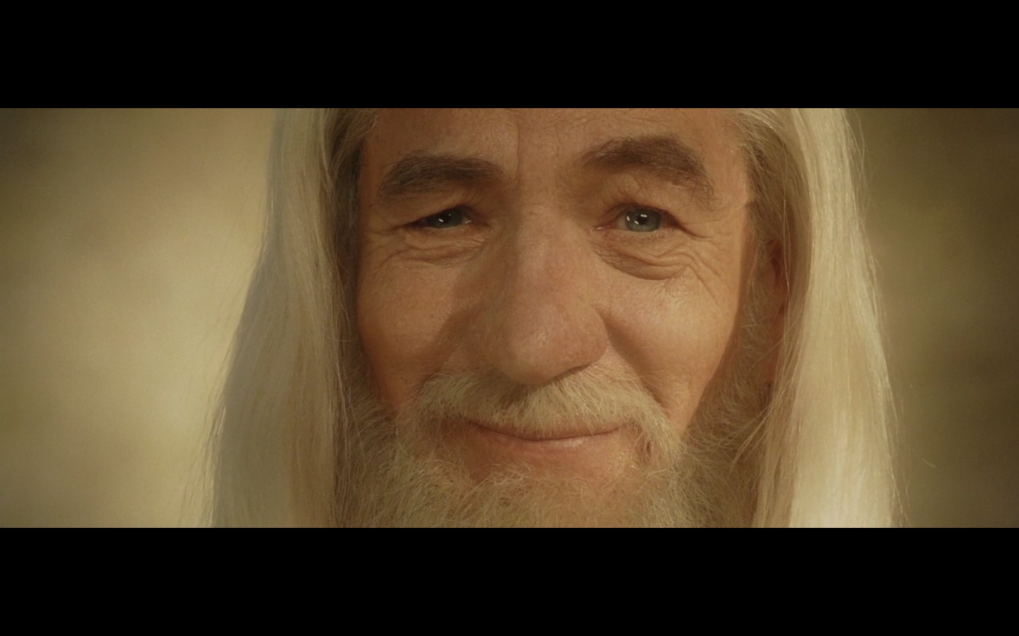 Has anyone ever taken this scene and dubbed evil music over it? Cause the cuts back to McKellen laughing could just as easily be evil, with the right music. In fact, he even looks a little evil with the happy music.
