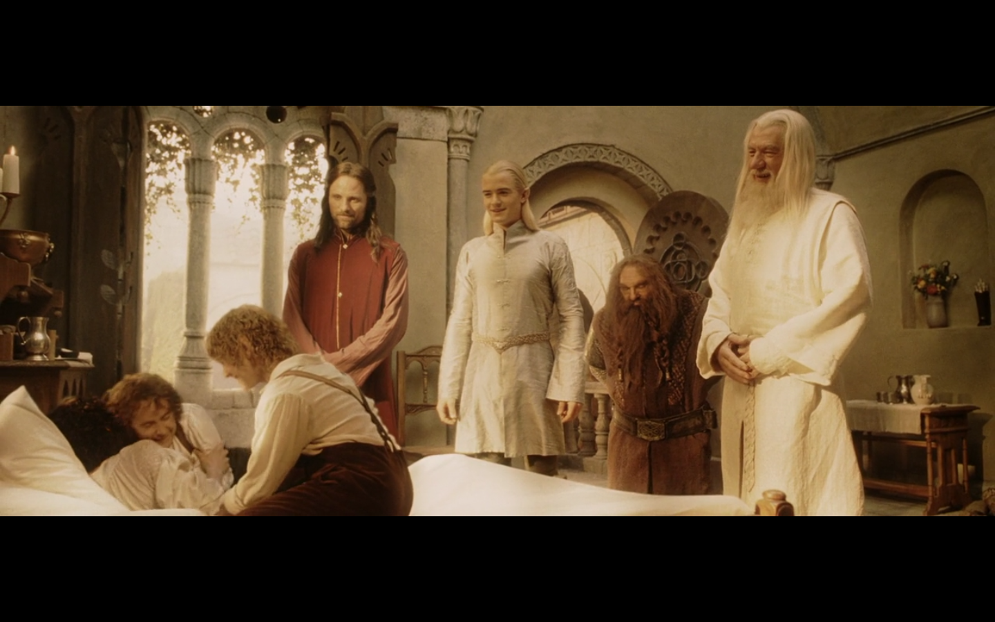 Oh, right. Frodo still didn’t know Gandalf was alive this whole time. If you’re barely alive one minute, and then when you wake up the first person you see is supposed to have been killed a long time ago, you think, Well, that’s that. I’m dead.”