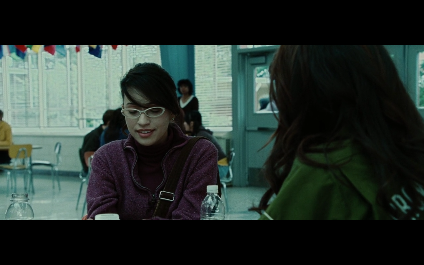 By the way, here’s how you can tell that this high school has a wardrobe person — look at how these kids are layering. Each one has three layers on. NOBODY layers like that in real life. And if they do, they’re trying too hard. This is some catalog shit.
