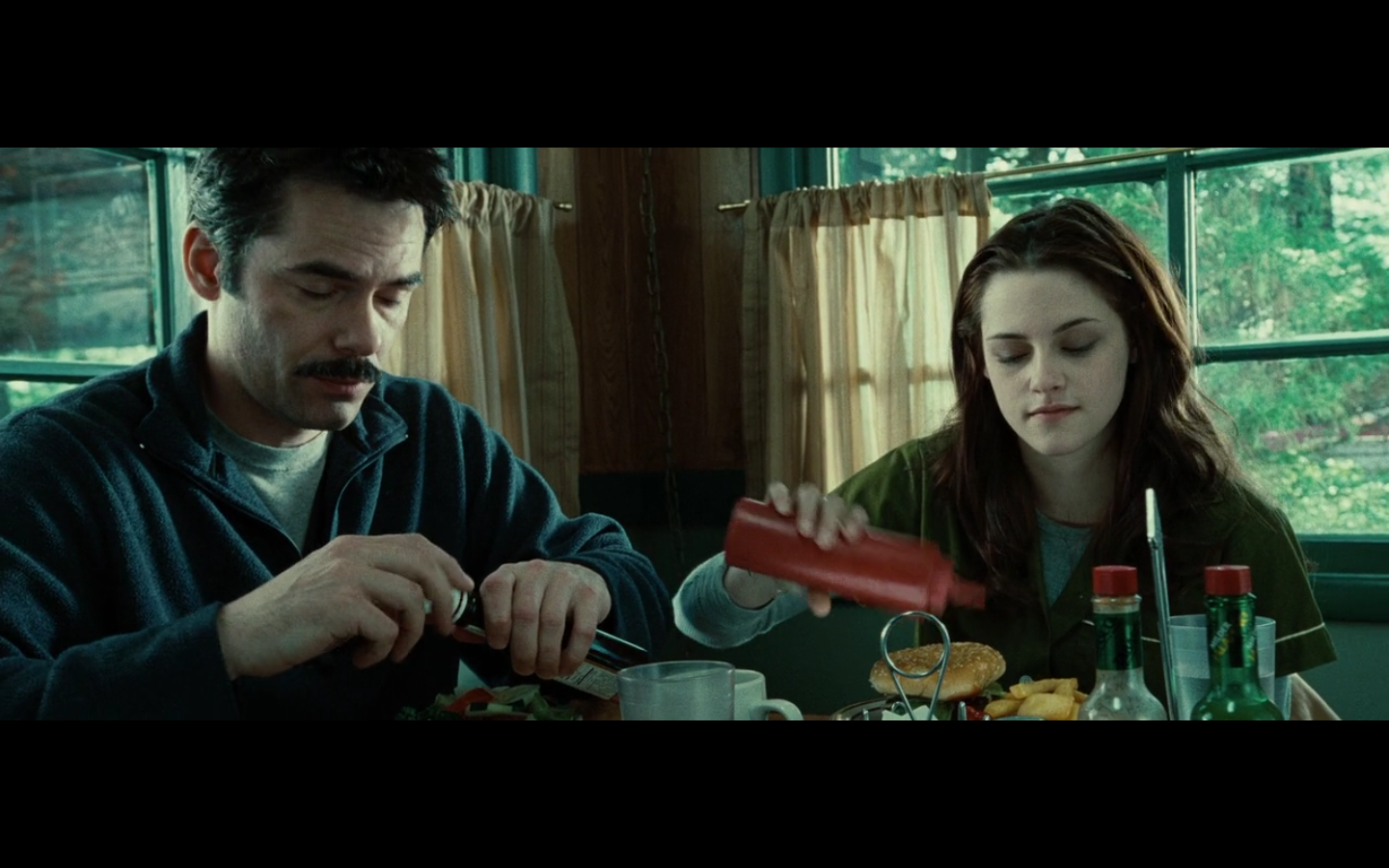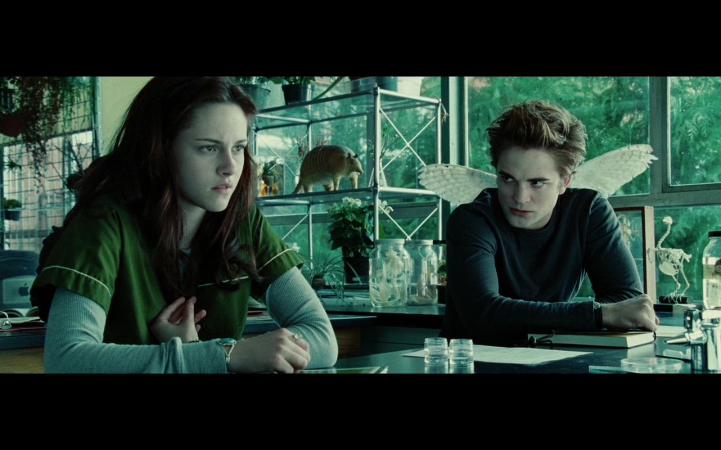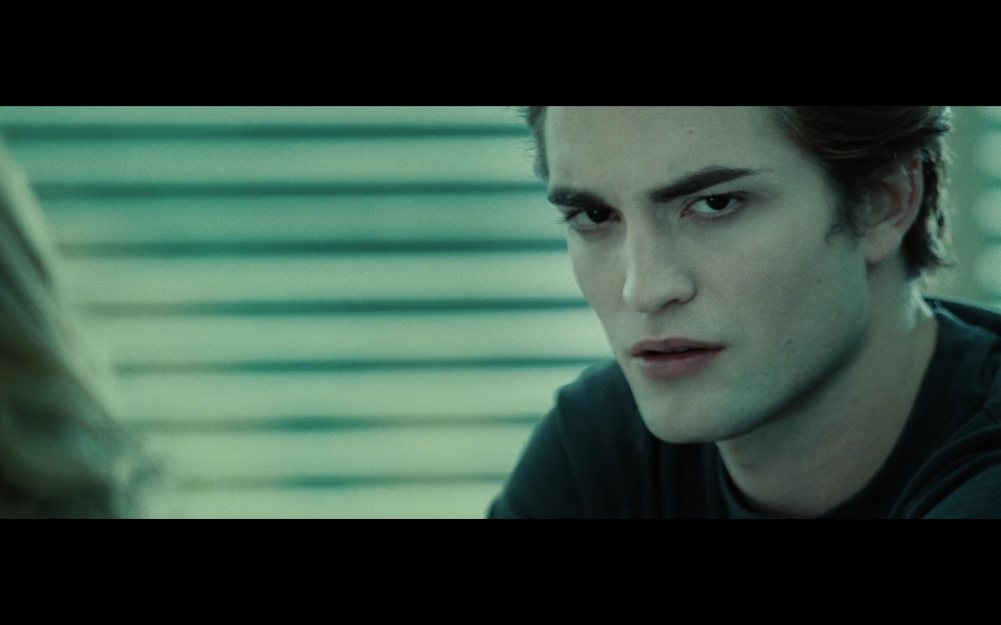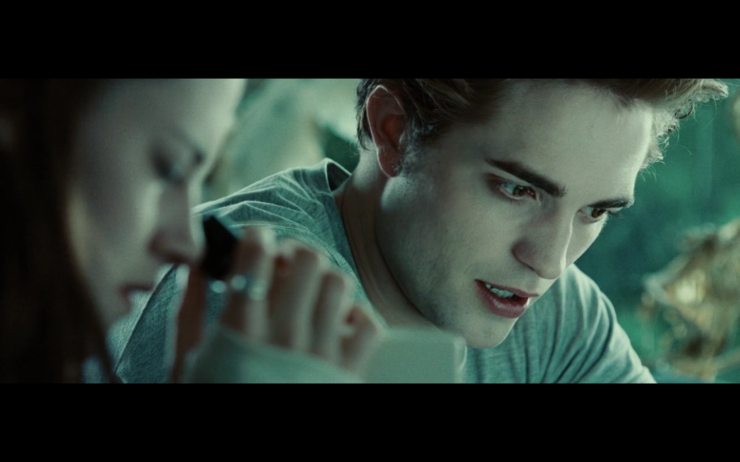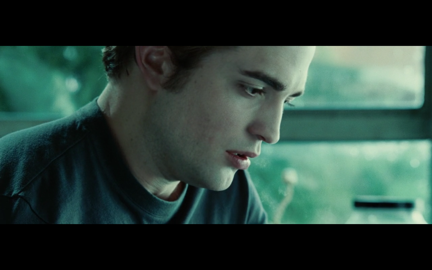 Twilight drinking game – take a drink whenever someone doesn’t finish a sentence. Also take one when the sentence they do finish is monosyllabic.