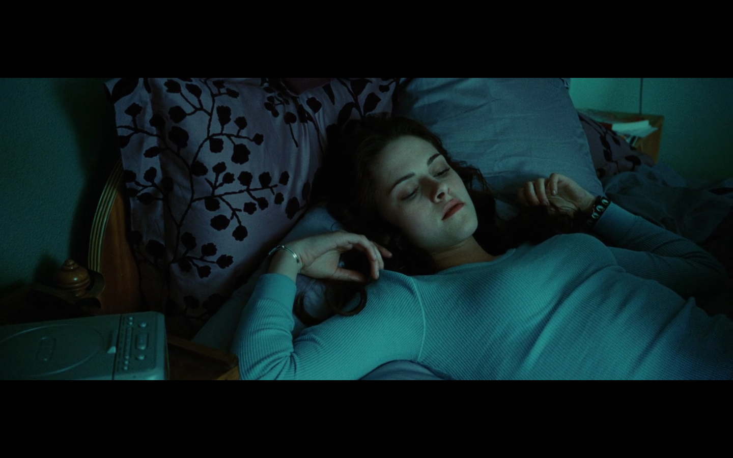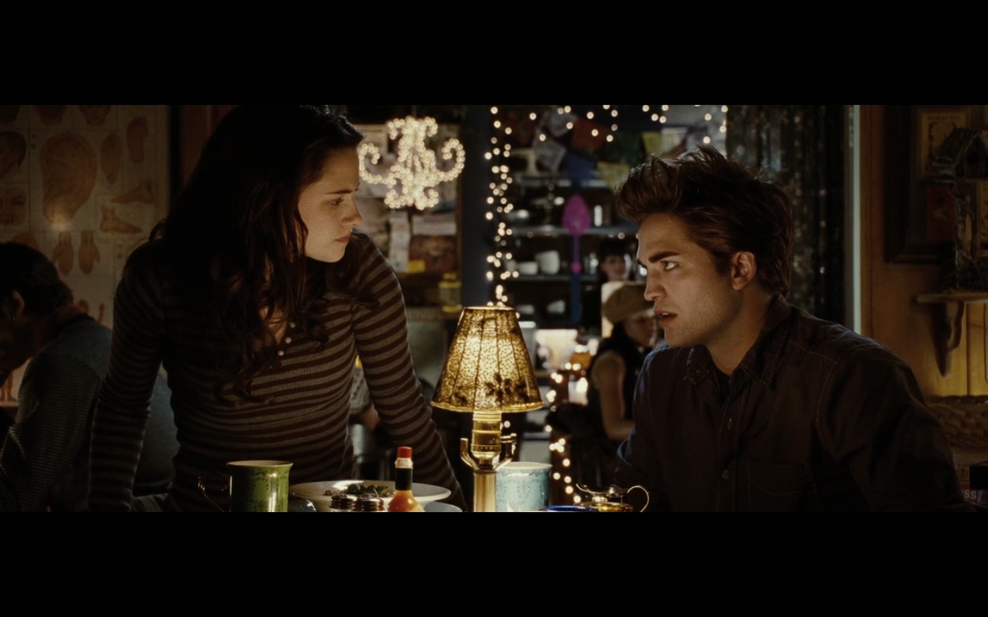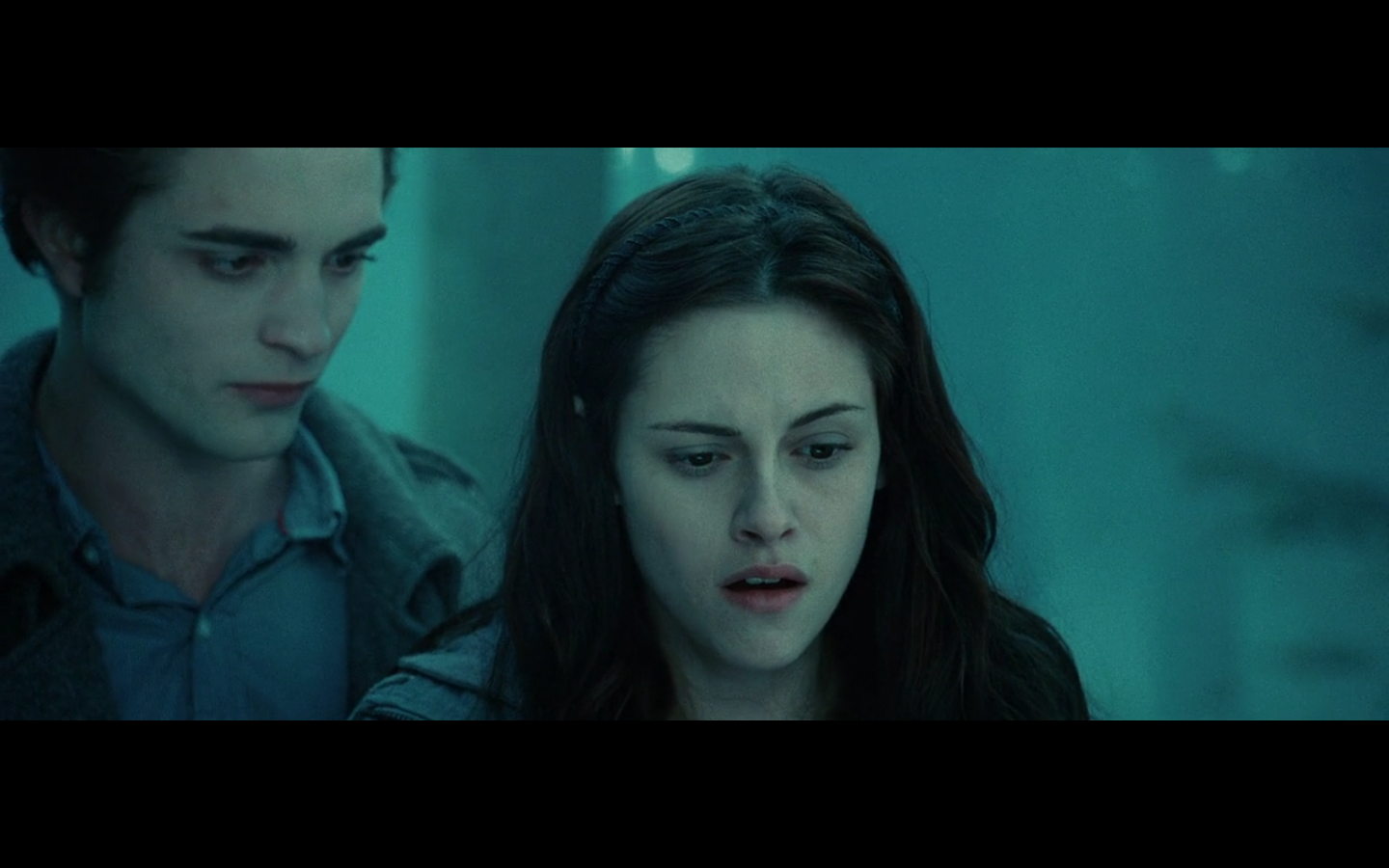 We begin Part III during the most unrealistic part of this movie — Kristen Stewart eating food.