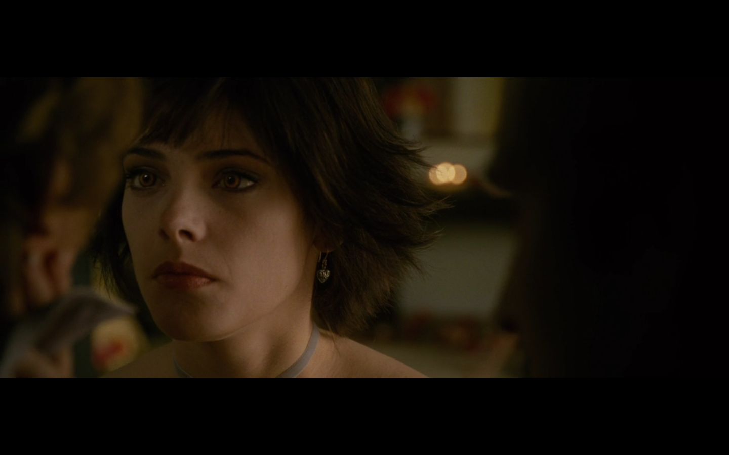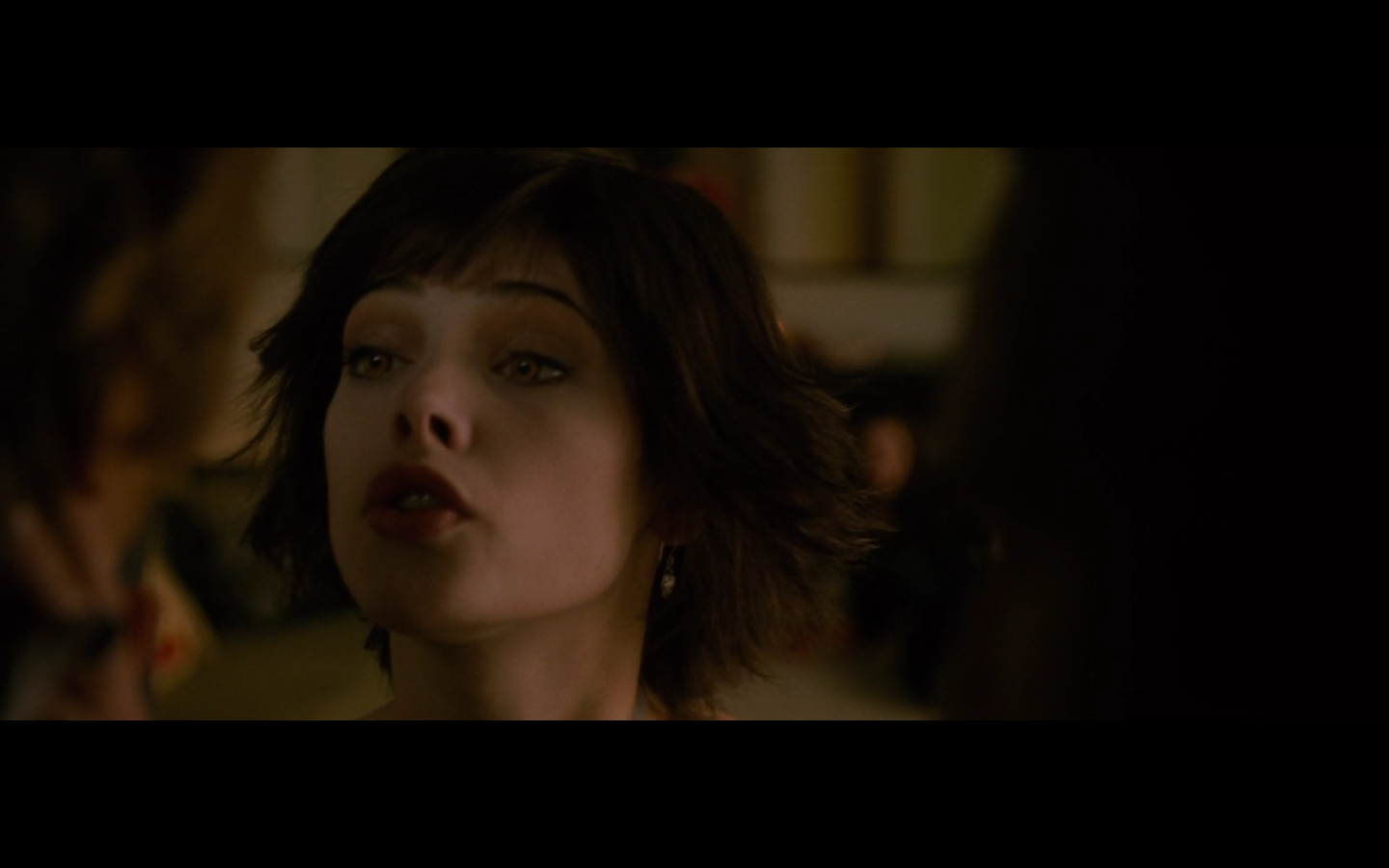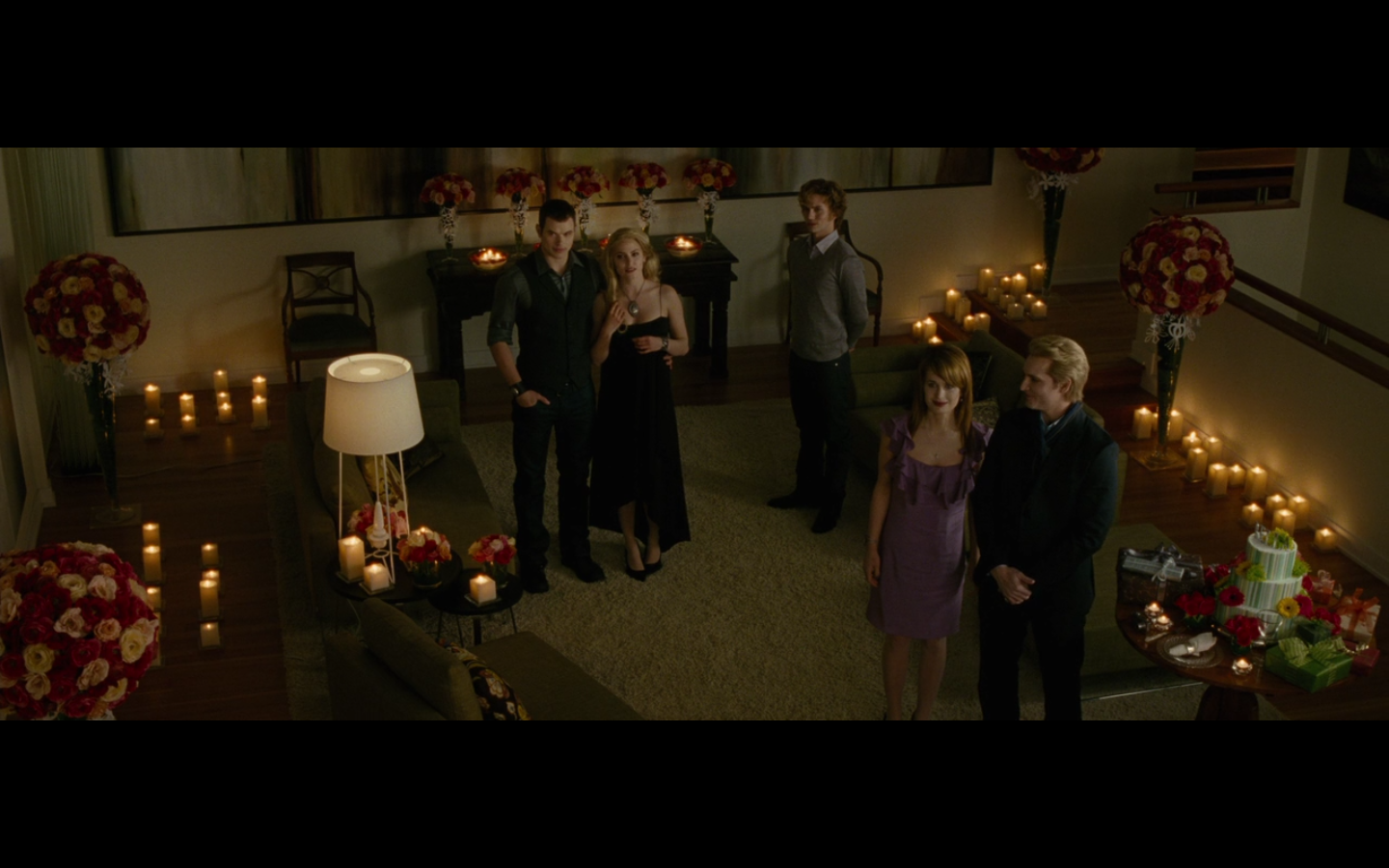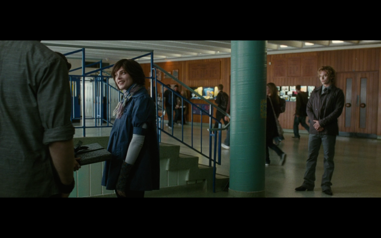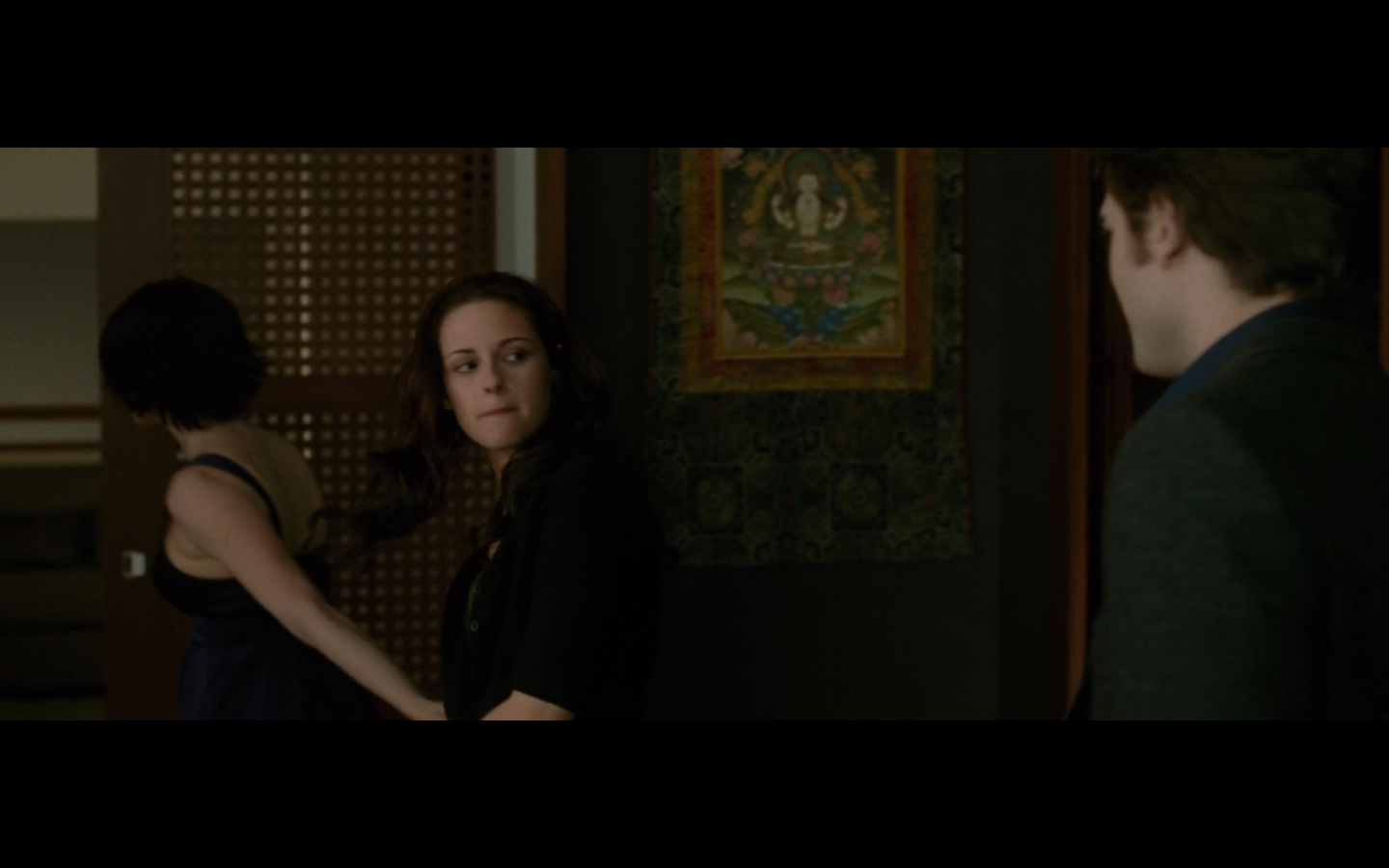 There’s a nice moment here where she gets a present from Carlisle and Esme and Esme says it’s “to brighten her day,” because she’s “been looking kind of pale lately.” And she reacts like this.