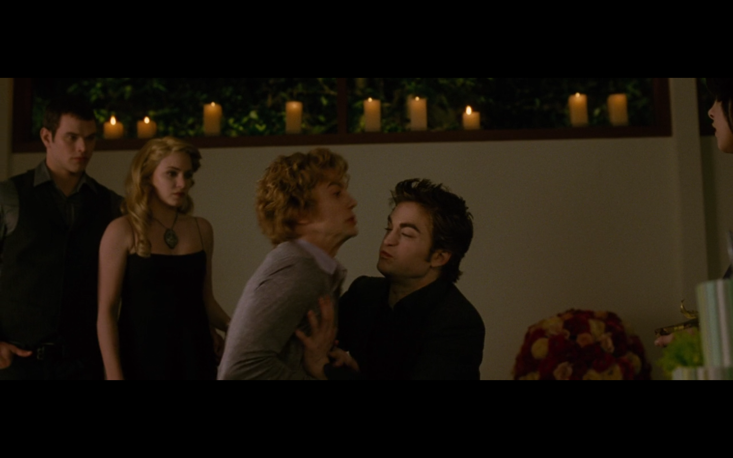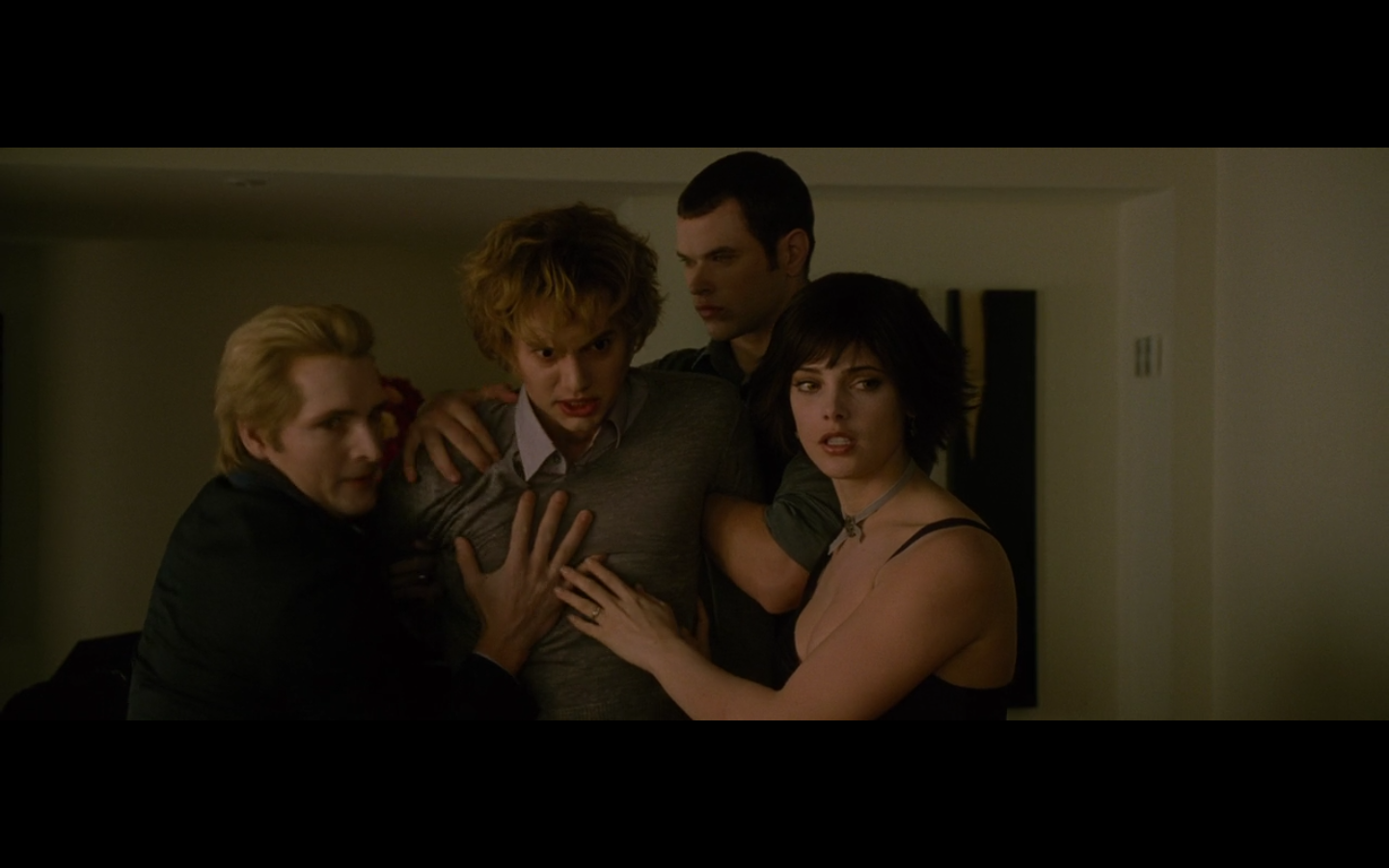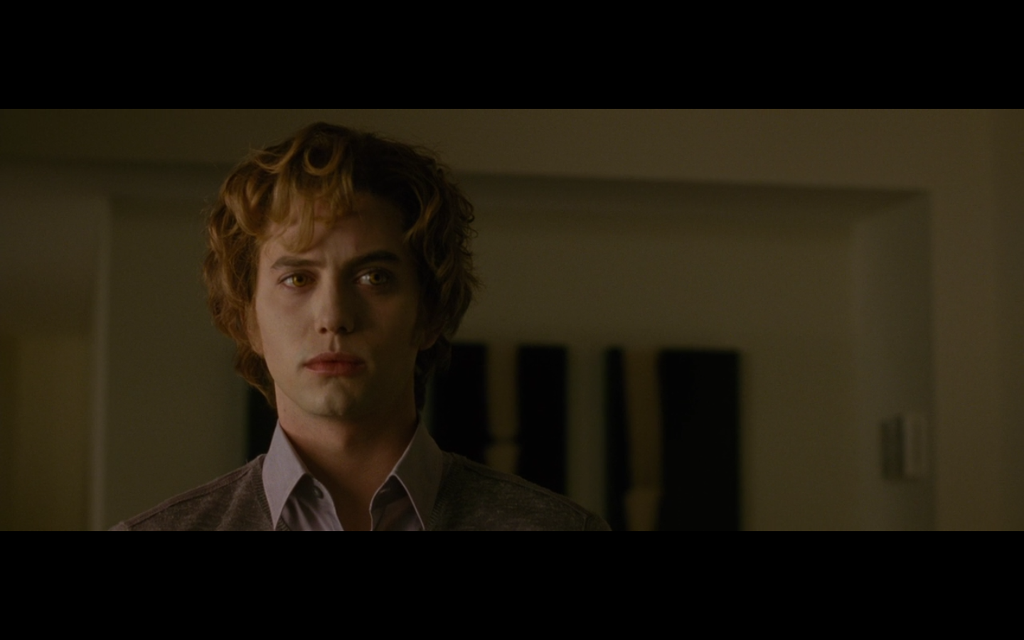 What I don’t get is — we find out later that this dude has been alive longer than Esme and has been with Alice (and part of the Cullens) for a long ass time. So I still don’t get why he’s like this around Bella when the rest of them (who are all younger than he is) aren’t.