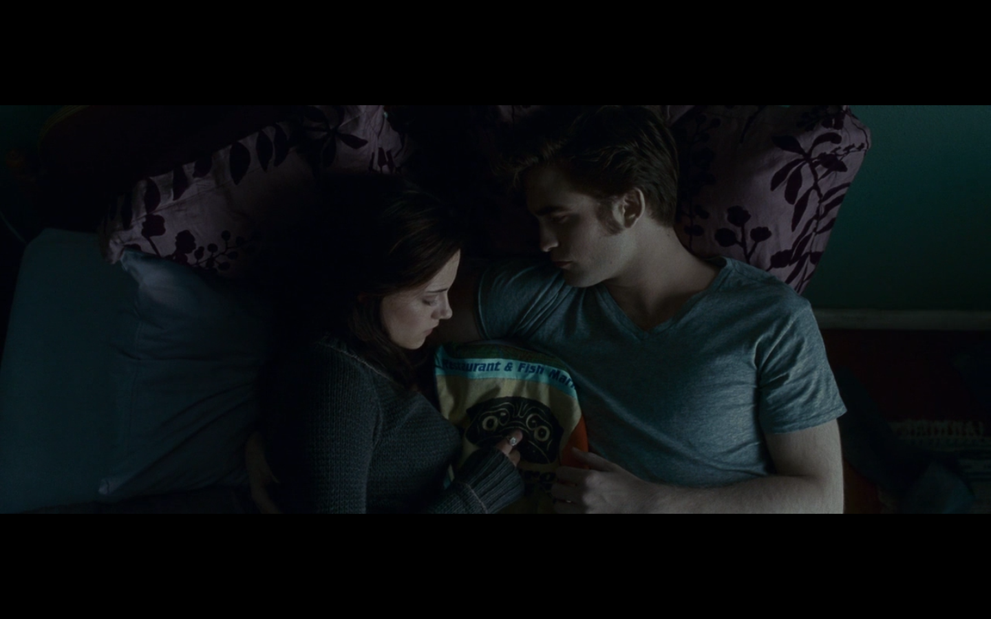 My FAVORITE LINE IN THE FRANCHISE! I just applauded. And Robert Pattinson’s making a real people face! This is my favorite moment in the franchise right now. “Doesn’t he own a shirt?”