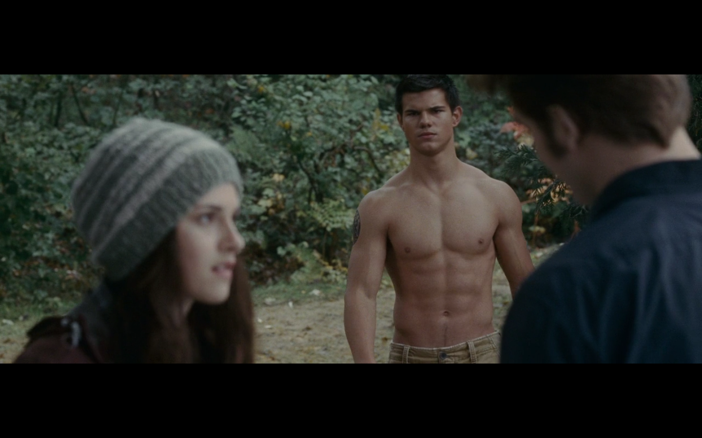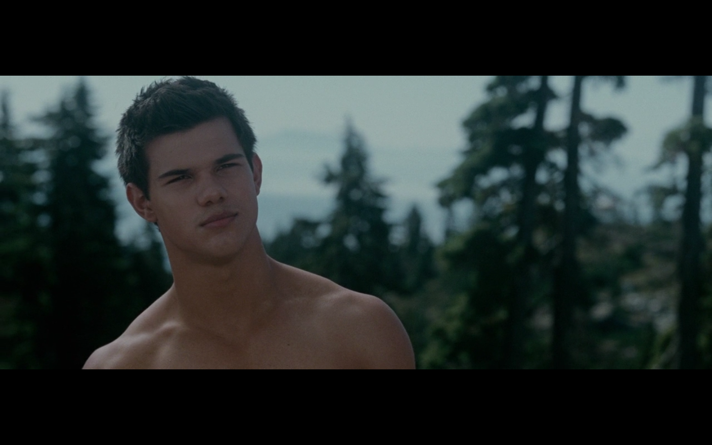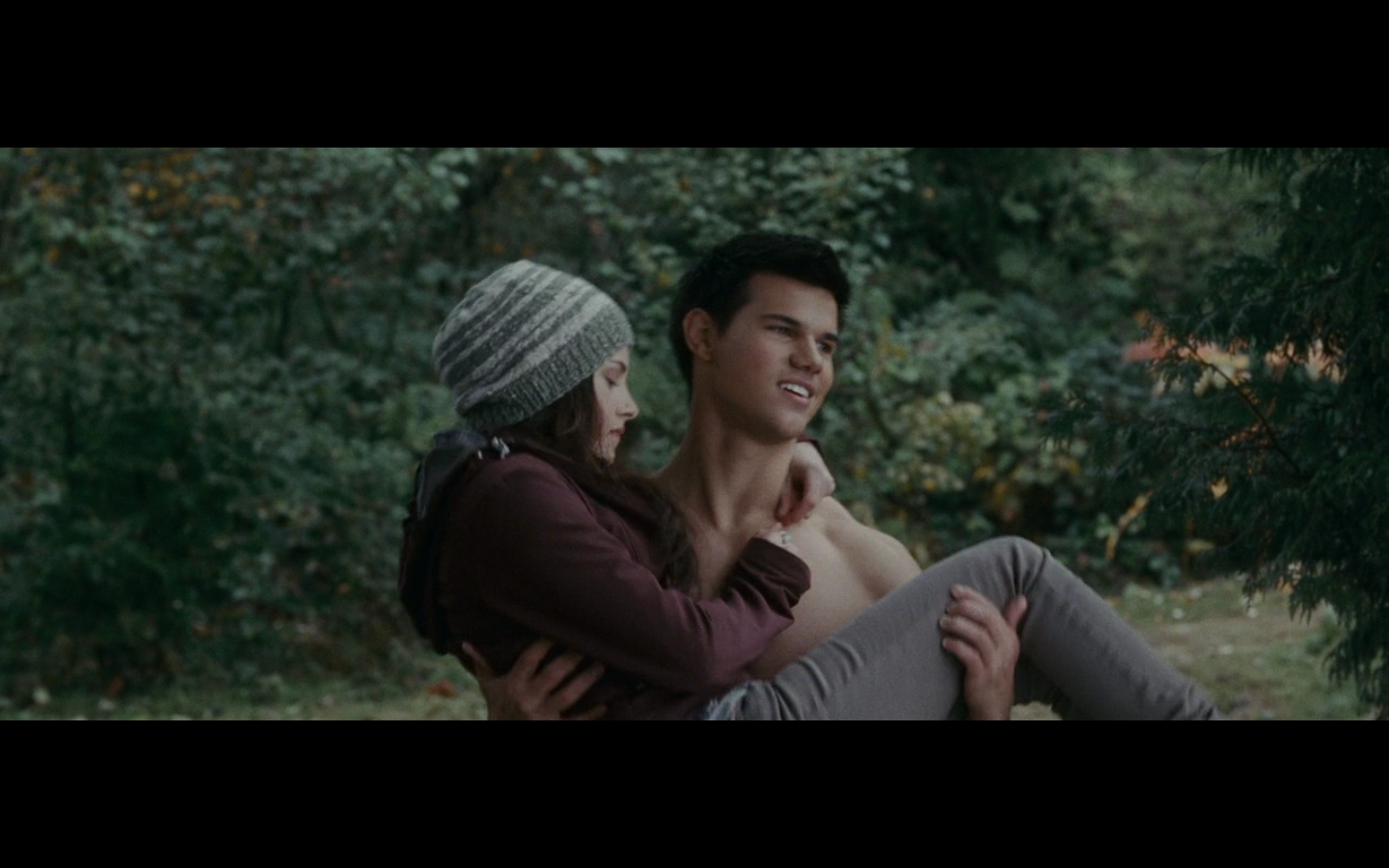 I wonder if they had Lautner really run through the woods carrying her. I would believe it.