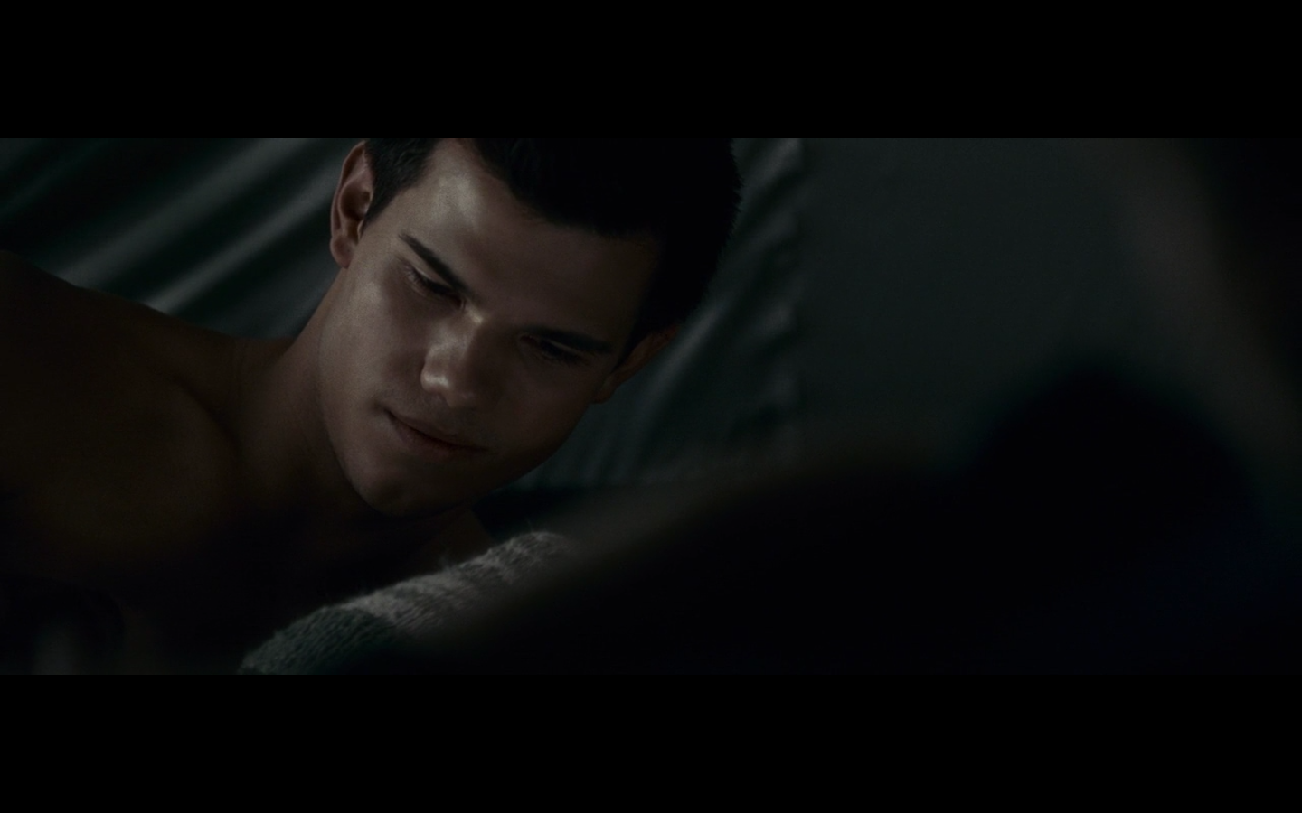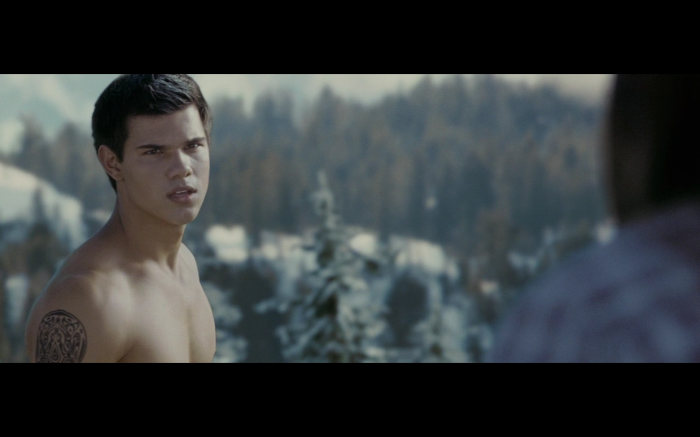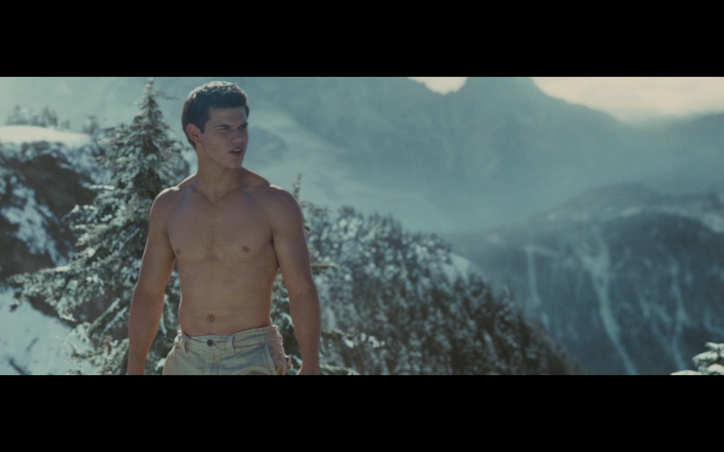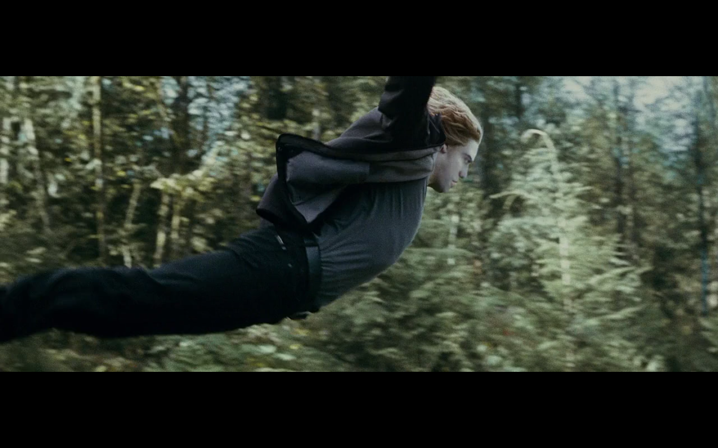 I wonder if they had Lautner really run through the woods carrying her. I would believe it.