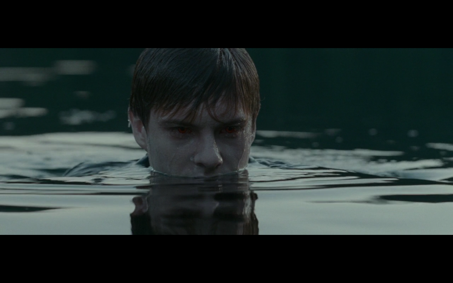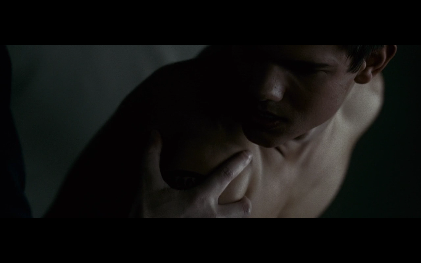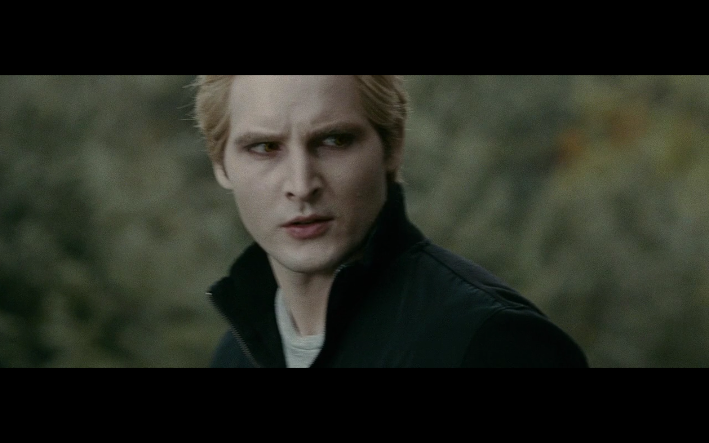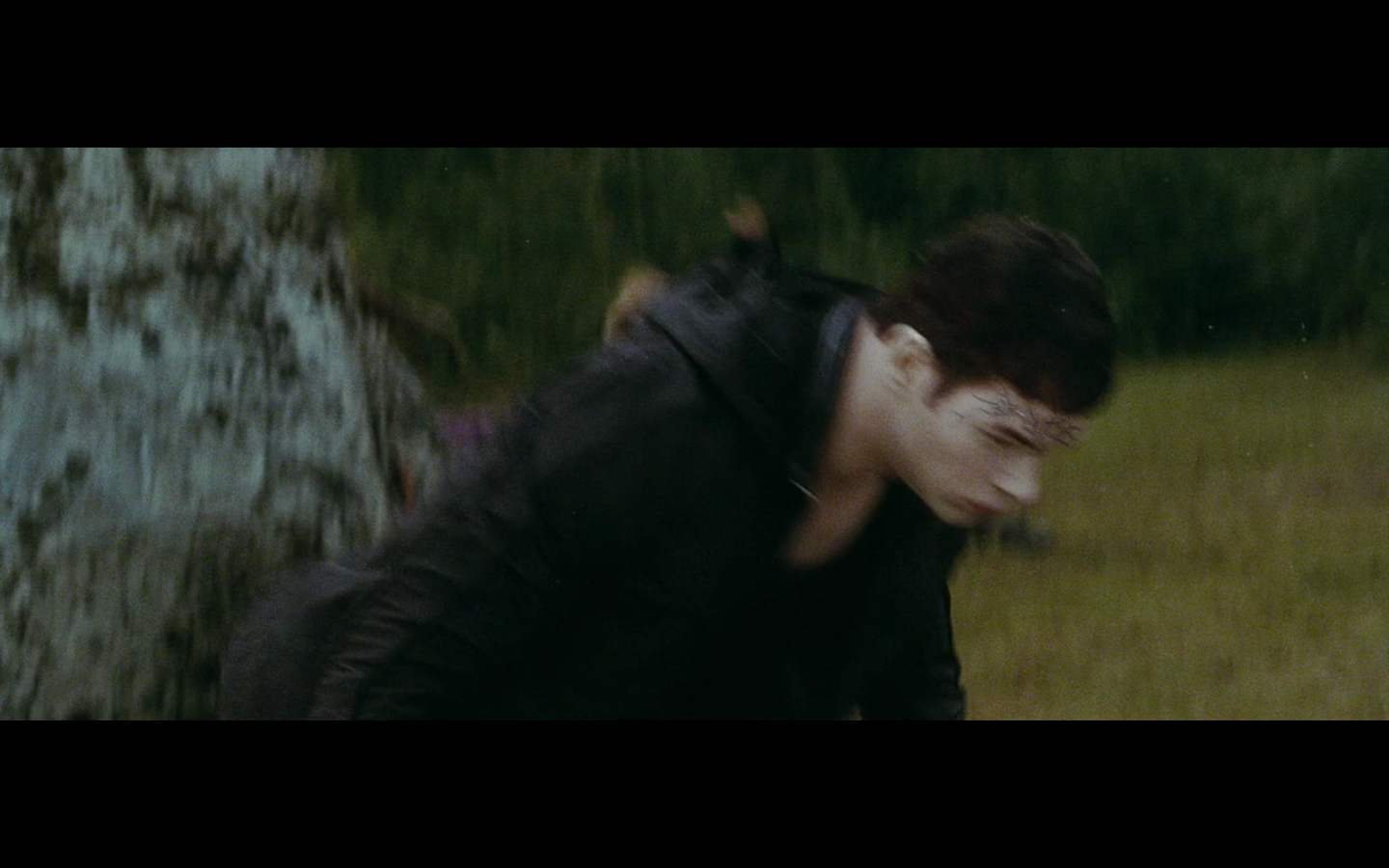 Yeah, I had that question too. It’s either residue from the previous vampire or, more likely, he fucked up part of his head temporarily when he headbutted that one. Because in the last film, Edward’s forehead and face got like that in that Volturi fight, and it just went back to normal. They just don’t ever define what the fuck that is and why or how it’s reversible. Makes no sense at all.