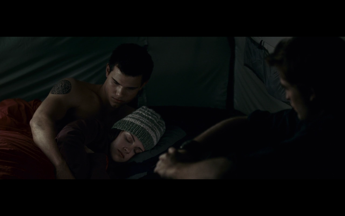 Oh, she’s cold. Is Jacob here to warm her up? No? Just cold-ass Edward?