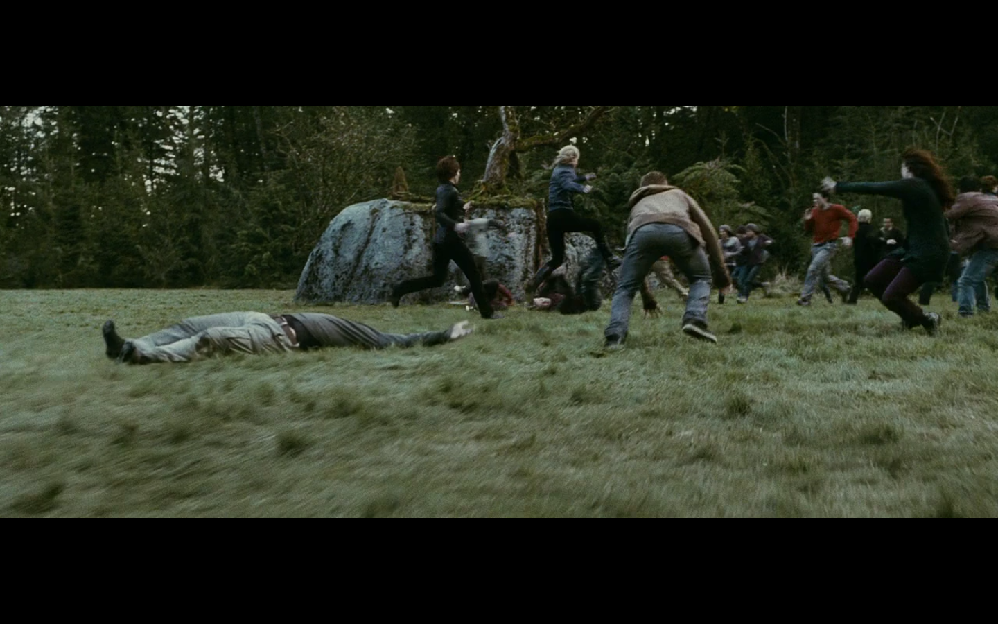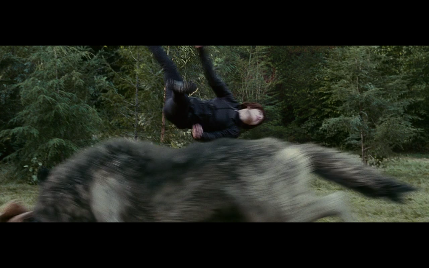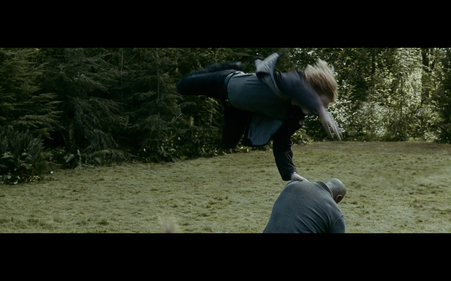 My favorite is that during all this, they cut back to Jacob and Bella, and Jacob is doing color commentary like — “Jacob just got there. He fights pretty well.”