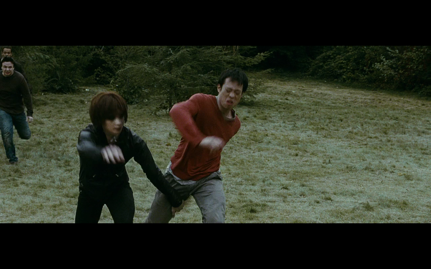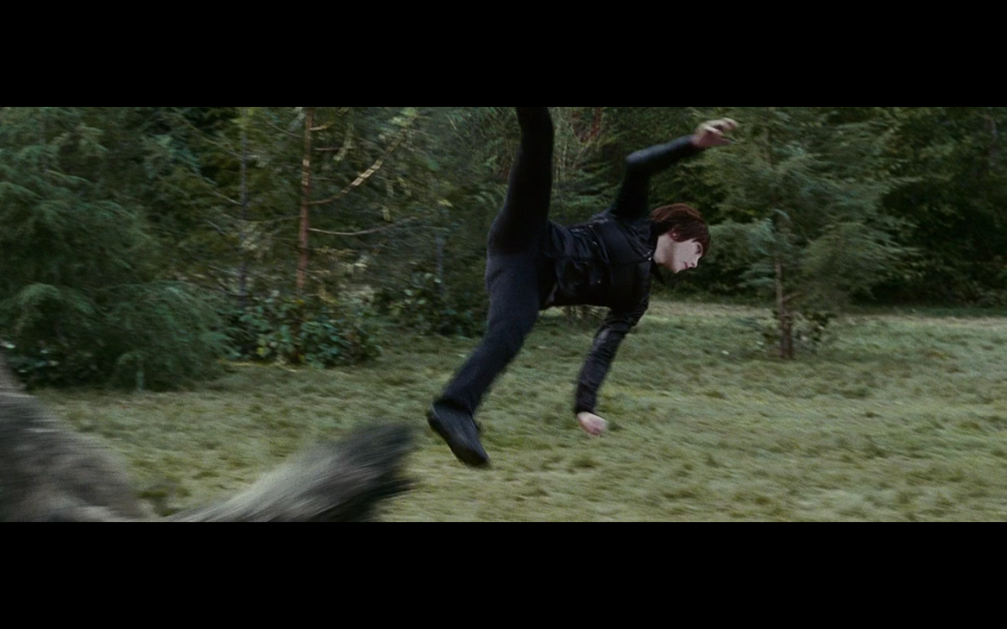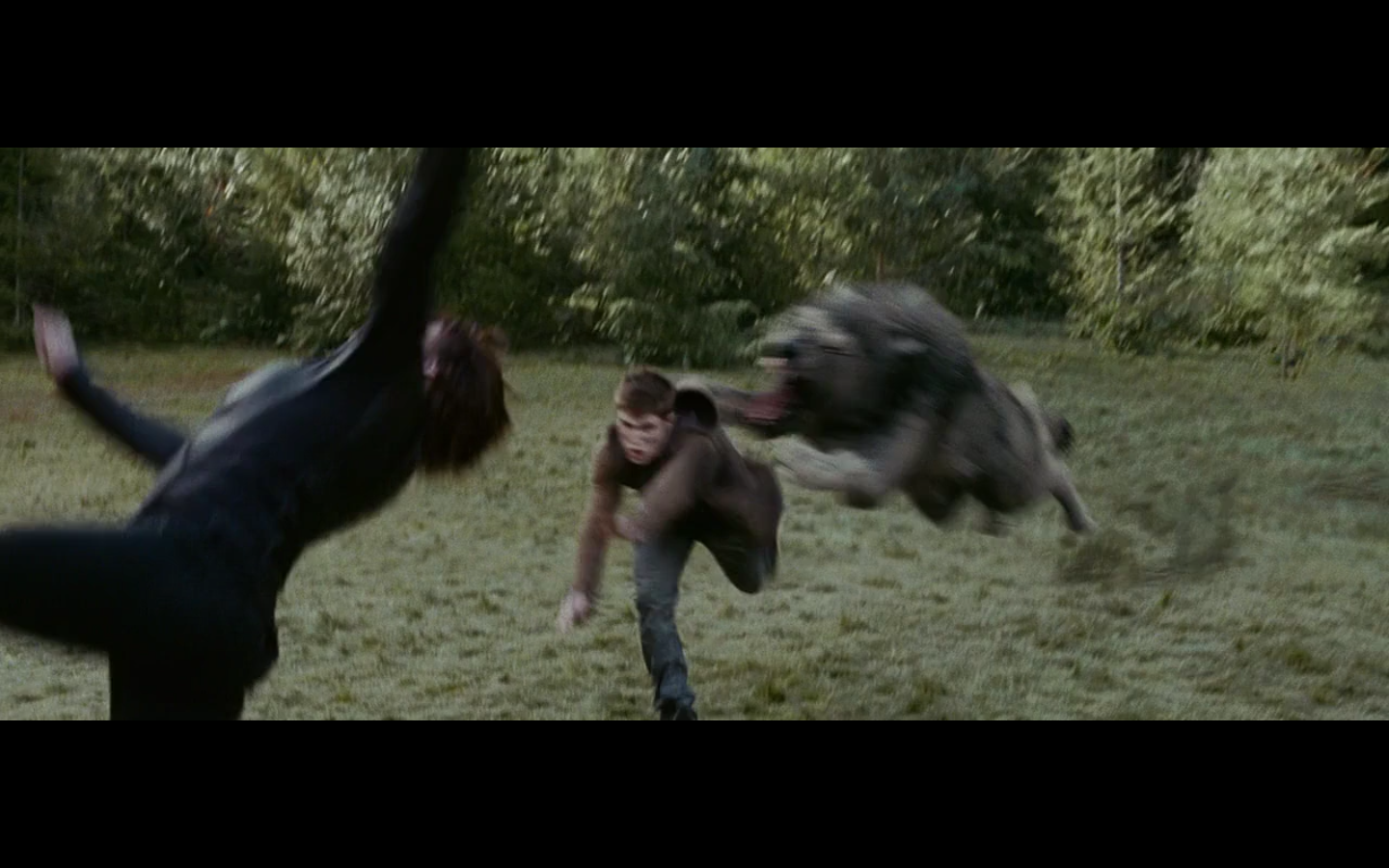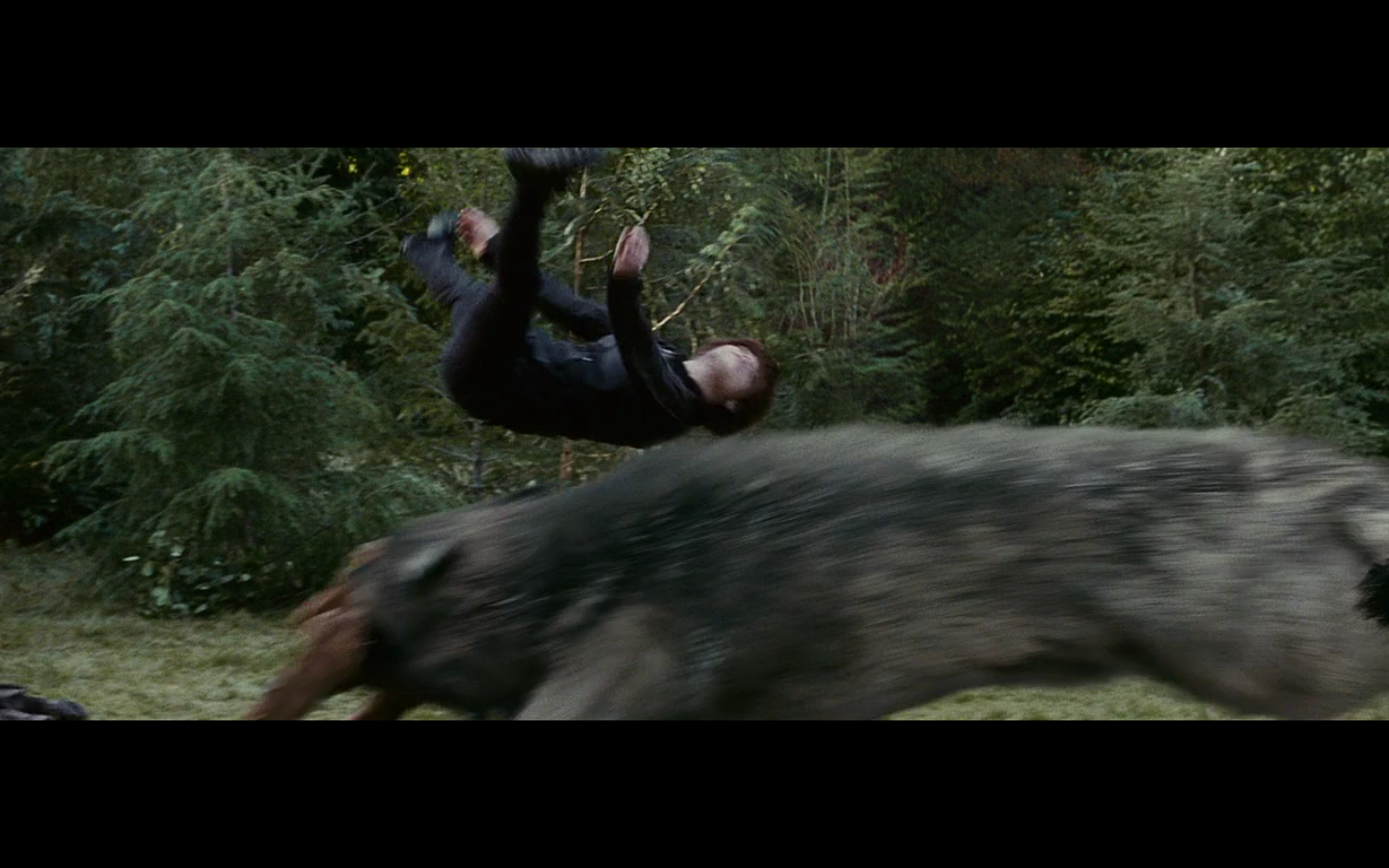 My favorite is that during all this, they cut back to Jacob and Bella, and Jacob is doing color commentary like — “Jacob just got there. He fights pretty well.”