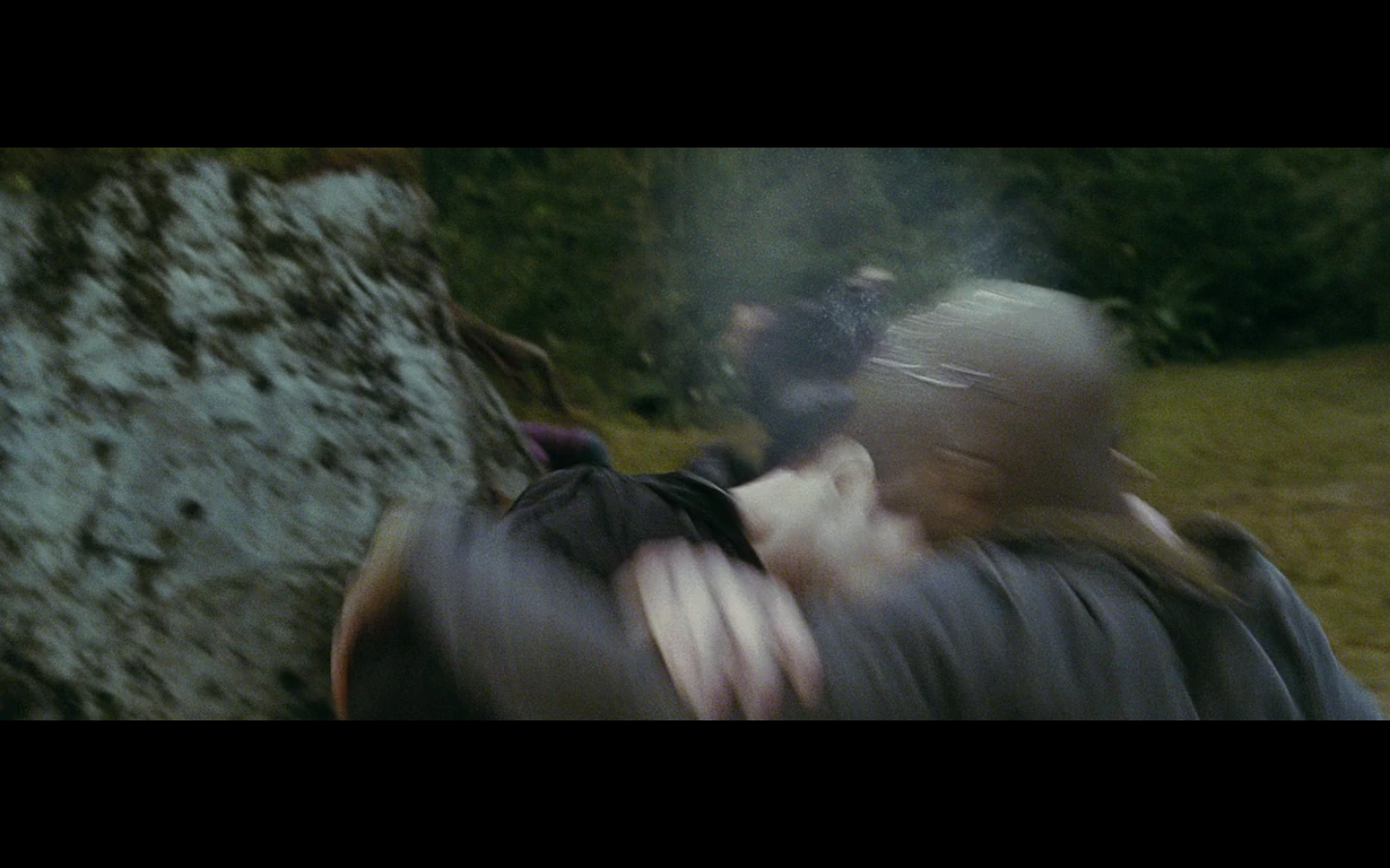 This is actually a nice cut. Two completely different locations, but the cut makes it as if he’s right there, watching the whole thing. Which is what this moment needs.