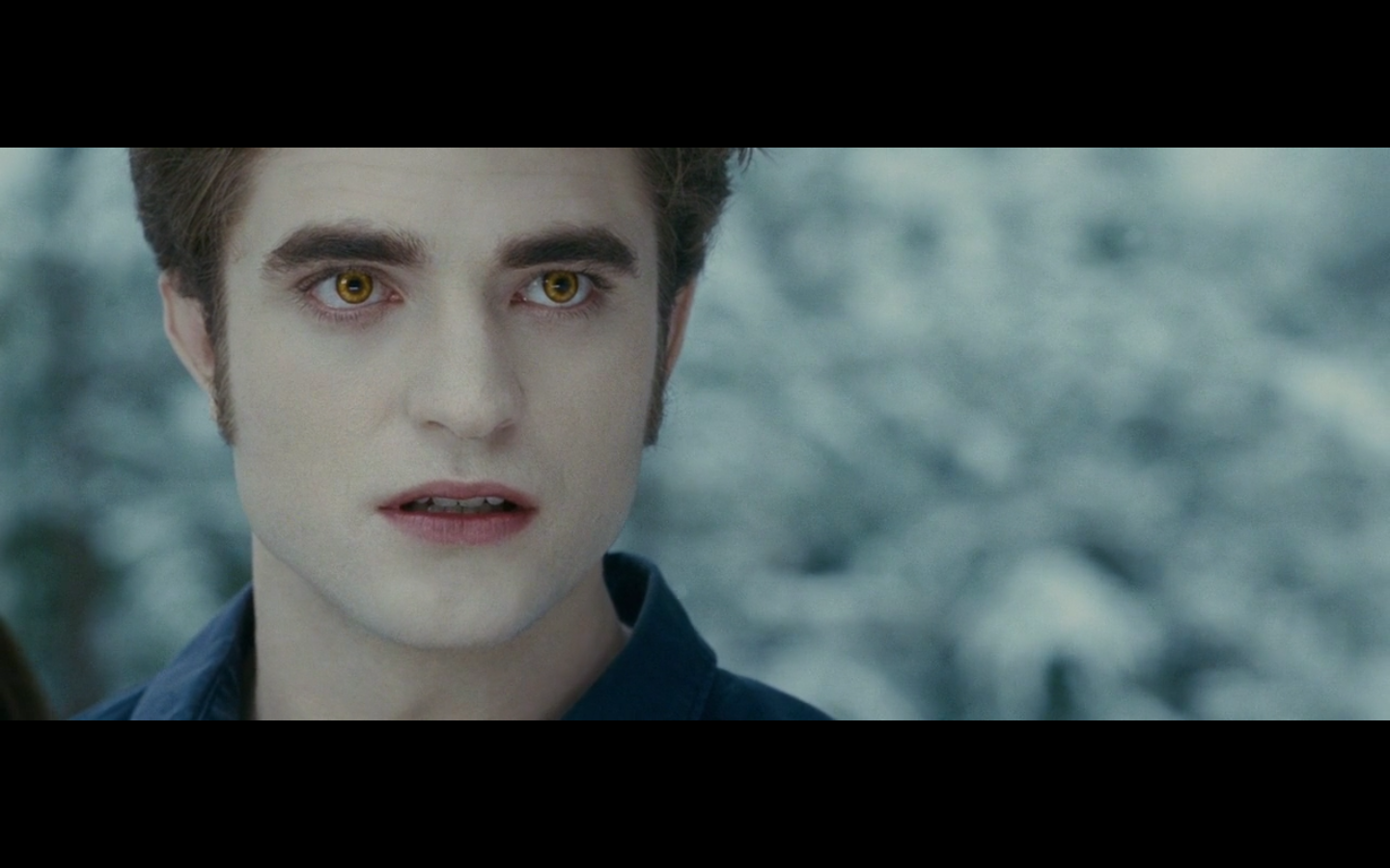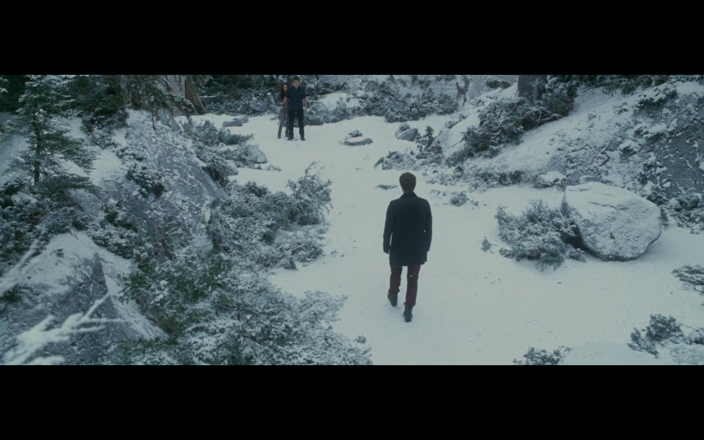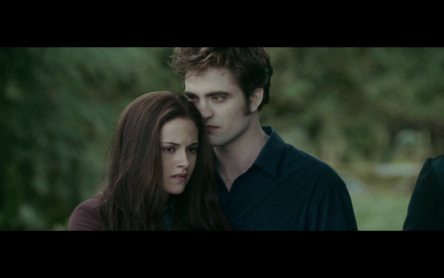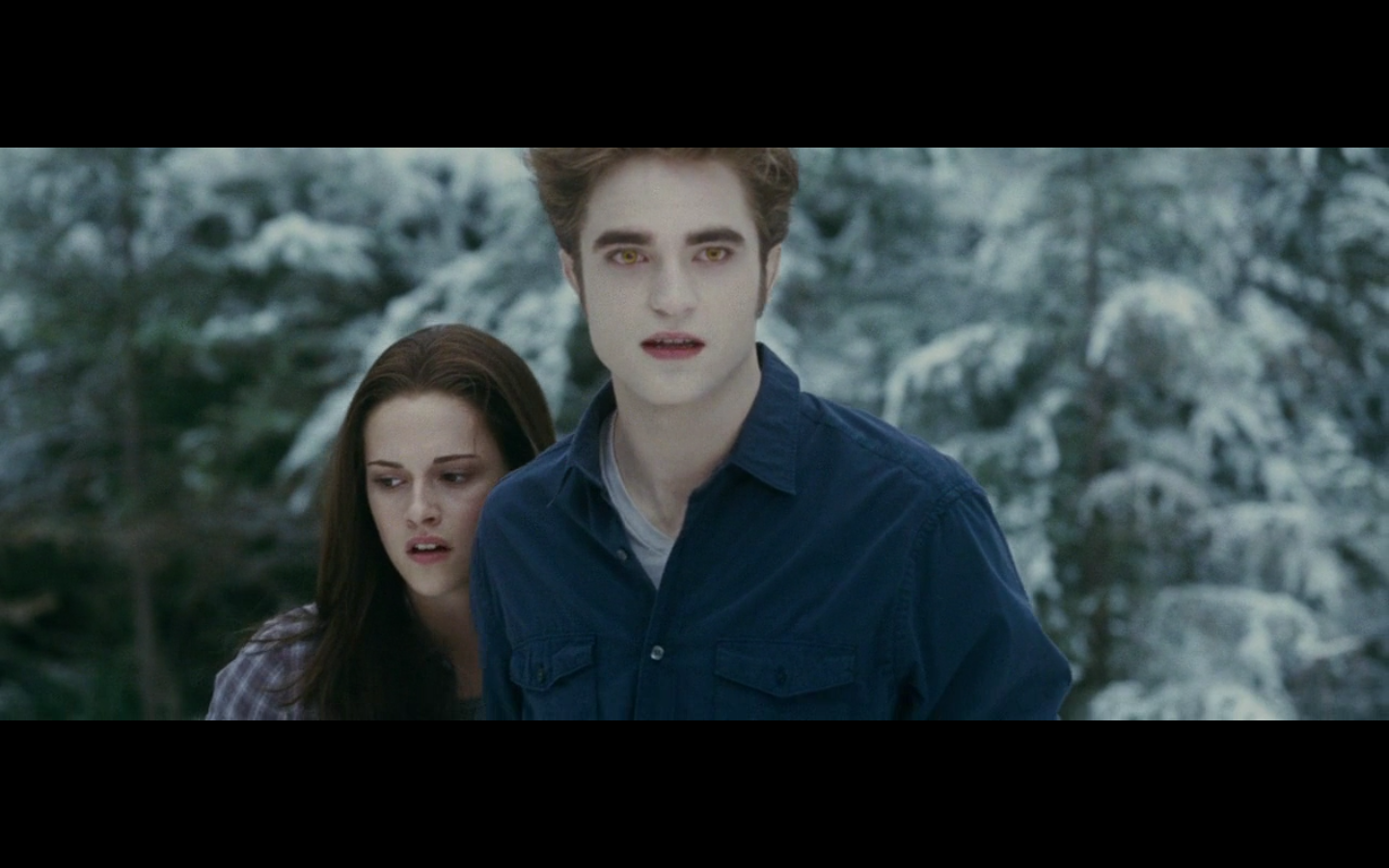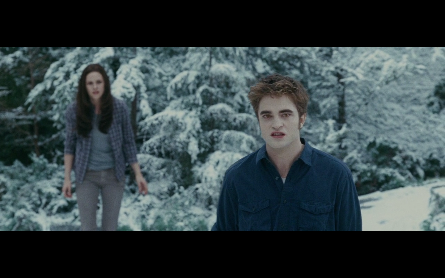 I like how he’s walking forward, away from Bella. How funny would it be if she just got hit by a bus all of a sudden?