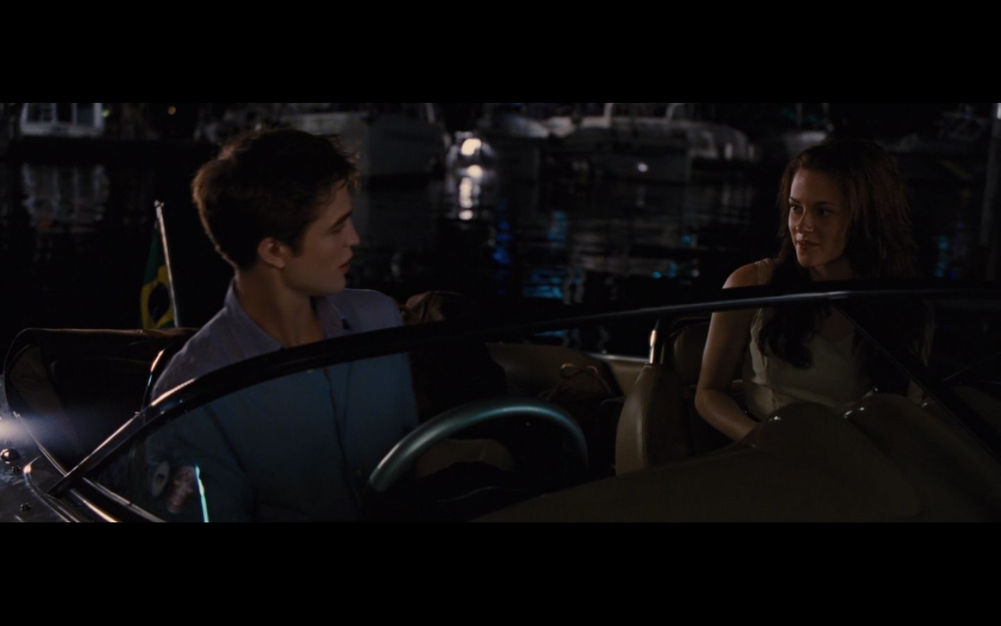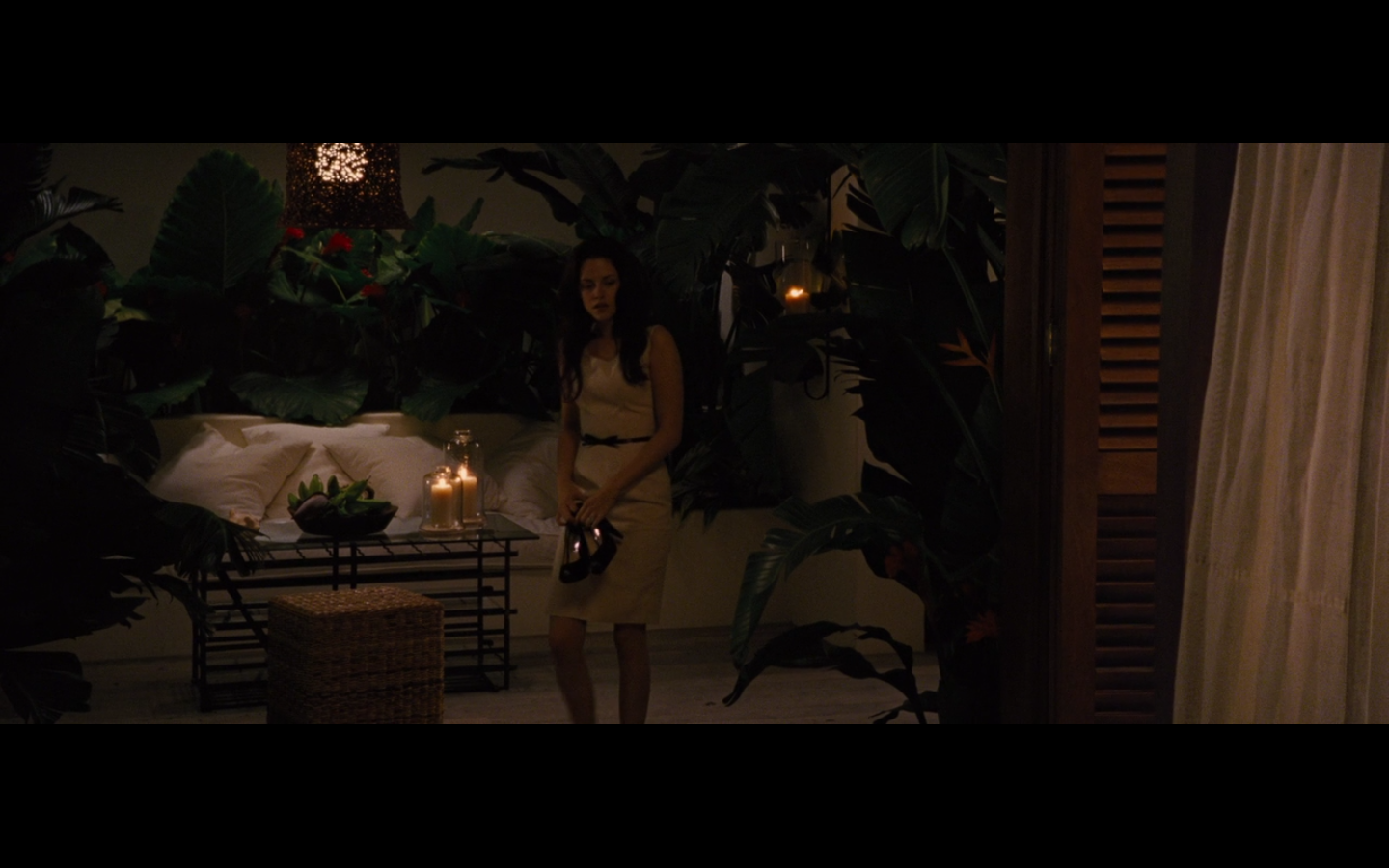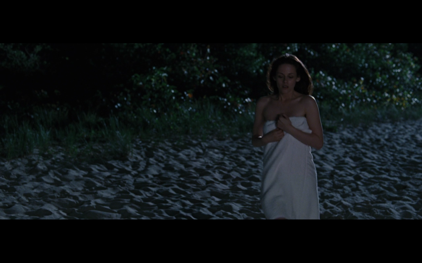 This shot is all wrong. Here’s how you do this series of shots. First of all, it needs to be a go-fast boat. Second, you get rid of Kristen Stewart and throw in a hot Asian actress. Doesn’t have to be Gong Li. I’m thinking Meisa Kuroki. And shoot it like this with the go-fast boat bouncing. These are the sorts of lessons Miami Vice can offer. Not legitimate film advice; just sheer coolness advice.