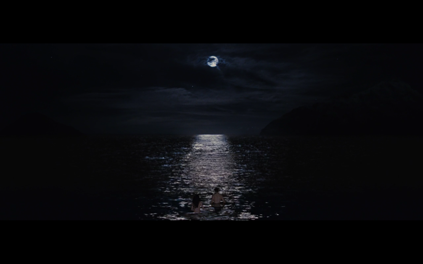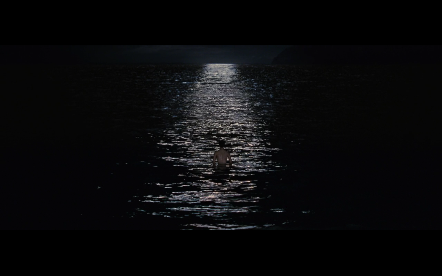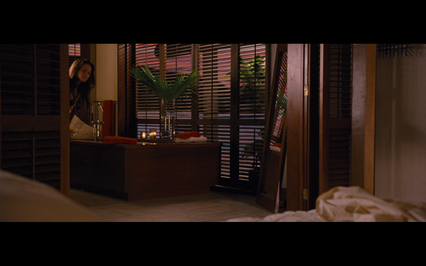 This shot is all wrong. Here’s how you do this series of shots. First of all, it needs to be a go-fast boat. Second, you get rid of Kristen Stewart and throw in a hot Asian actress. Doesn’t have to be Gong Li. I’m thinking Meisa Kuroki. And shoot it like this with the go-fast boat bouncing. These are the sorts of lessons Miami Vice can offer. Not legitimate film advice; just sheer coolness advice.