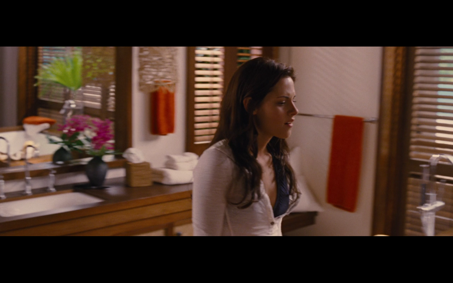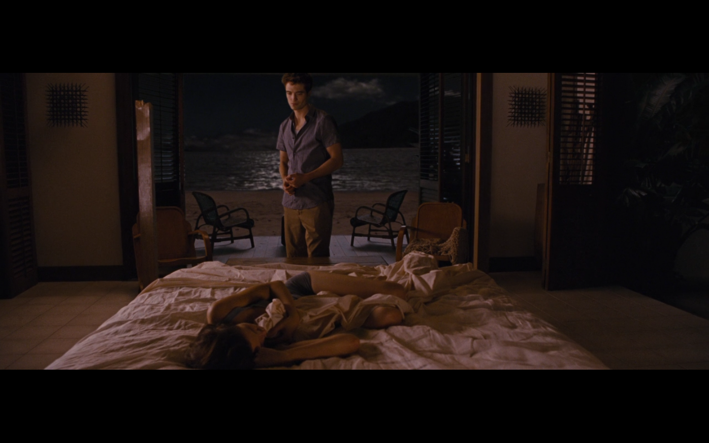 Where does this island’s electricity come from? Do they have solar panels? Wouldn’t this be a thousand times better if they were on Scaramanga’s island from Man with the Golden Gun? Complete with the vats of liquid nitrogen and everything. And they’d show up and Bella would be like, “What’s with all the liquid nitrogen?” and Edward would go, “I honestly don’t know. The rental guy told me to ignore it.” I wish they did shit like that in movies, randomly. Maybe not in this movie. But in a better franchise.