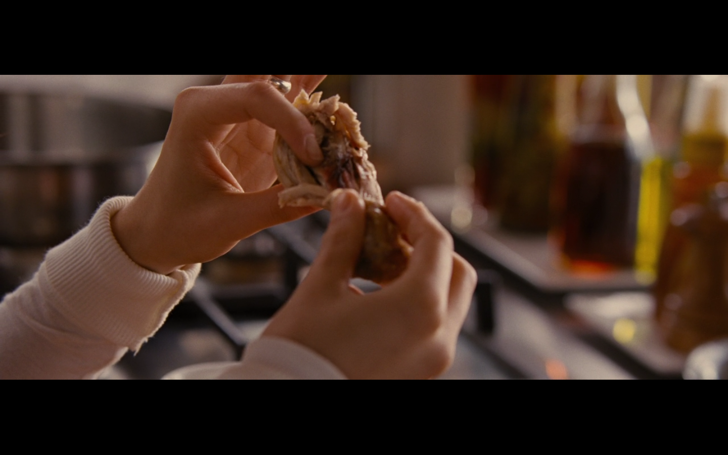What’s she cooking up? I wonder if this is gonna be that, “Hey, I’ll probably never eat this again” part. That’s what I’d be thinking. It’s like how once Ebert couldn’t eat anymore, he said he didn’t miss food as much as he missed the companionship of mealtime. Which is bullshit, cause food’s awesome and you can always sit there while someone else eats.