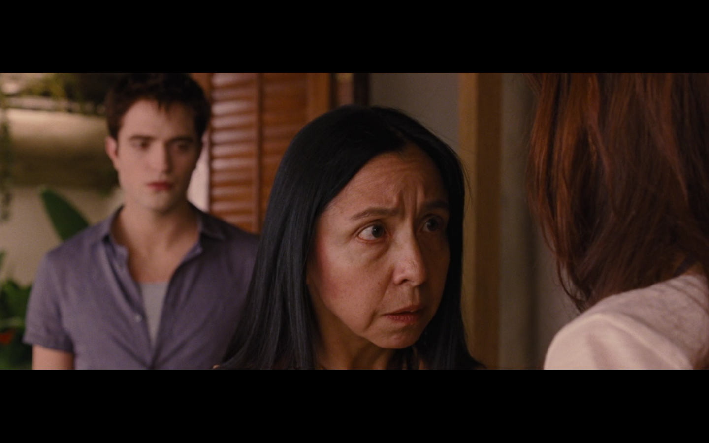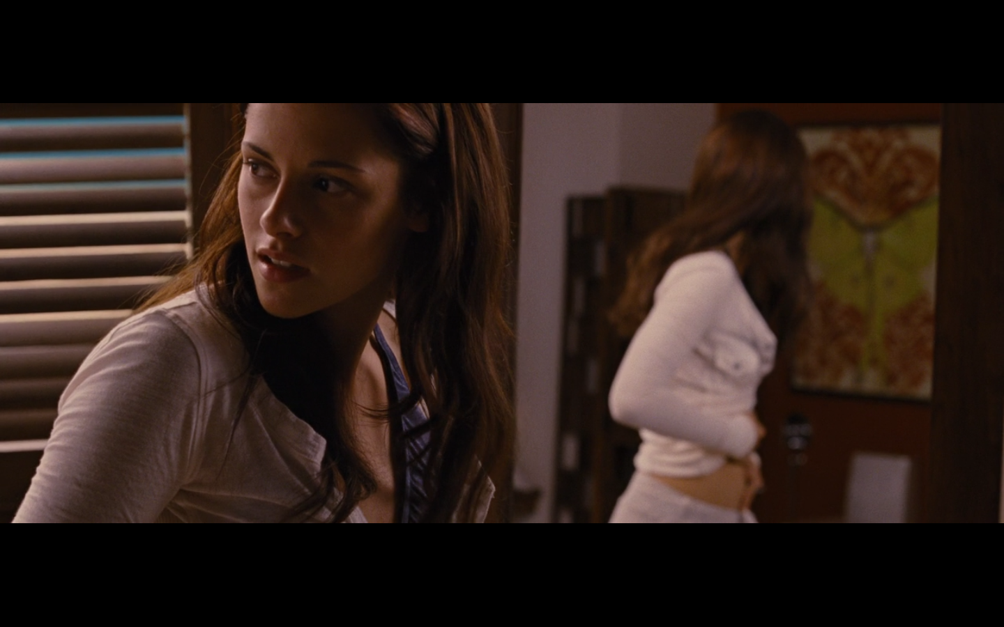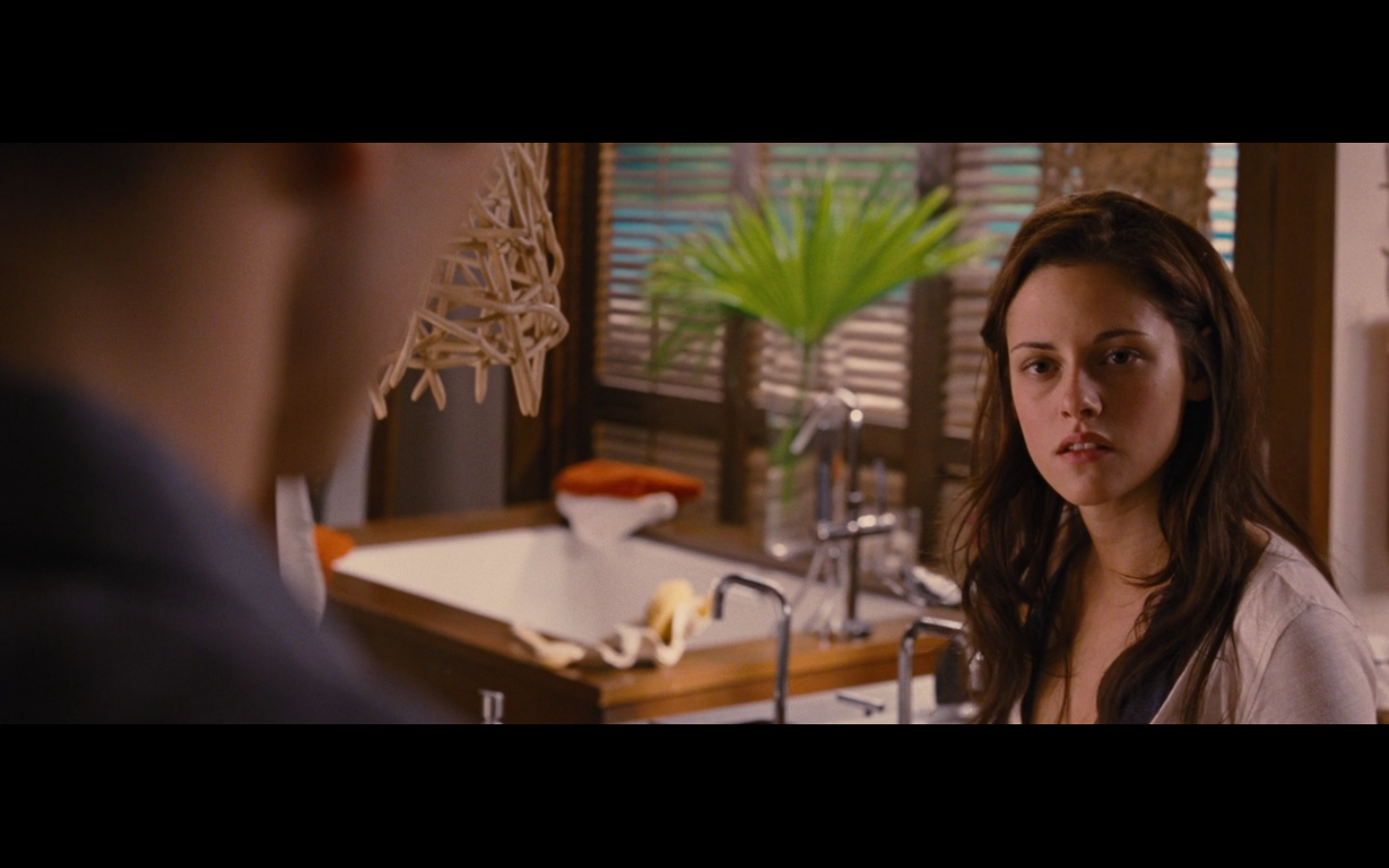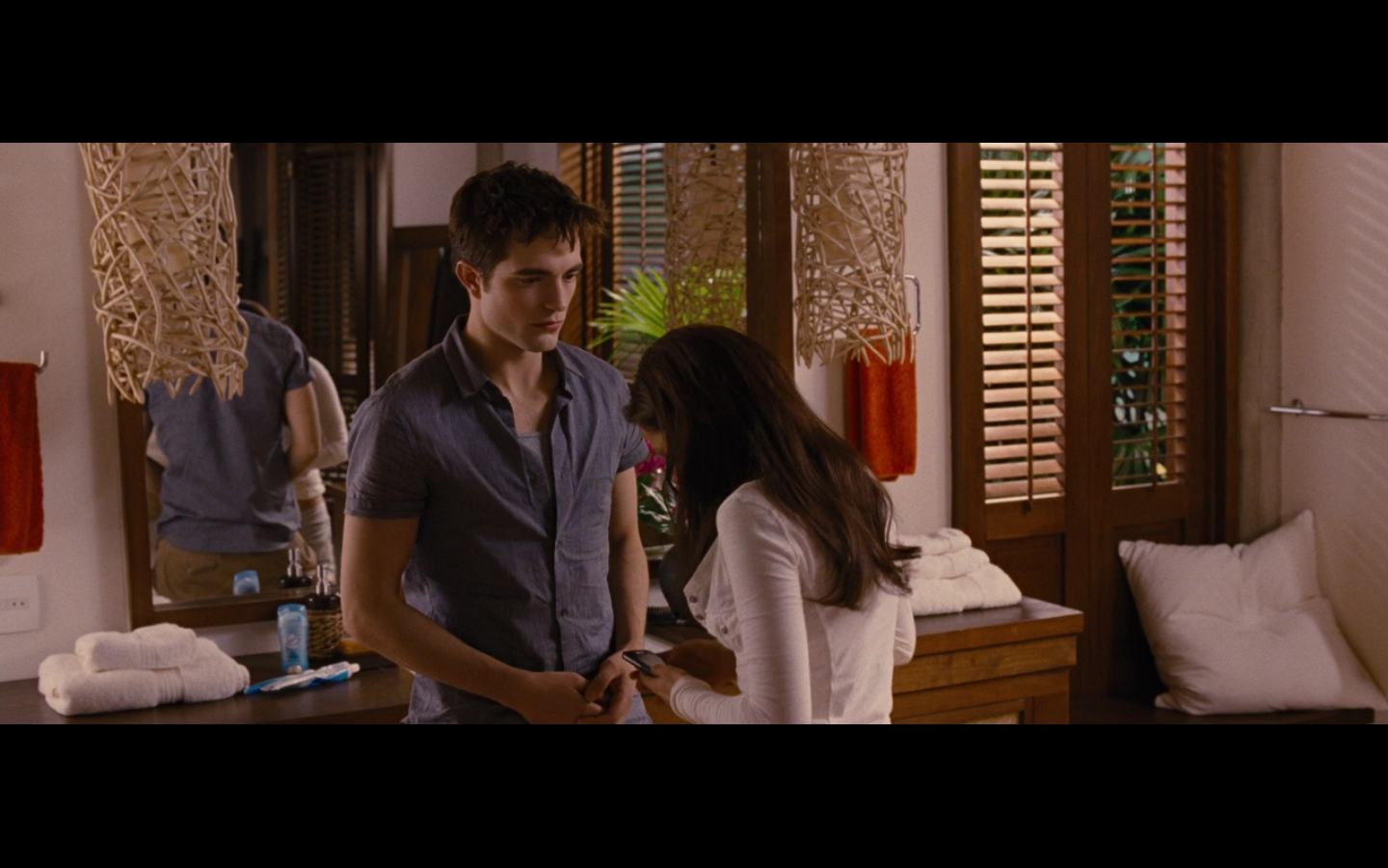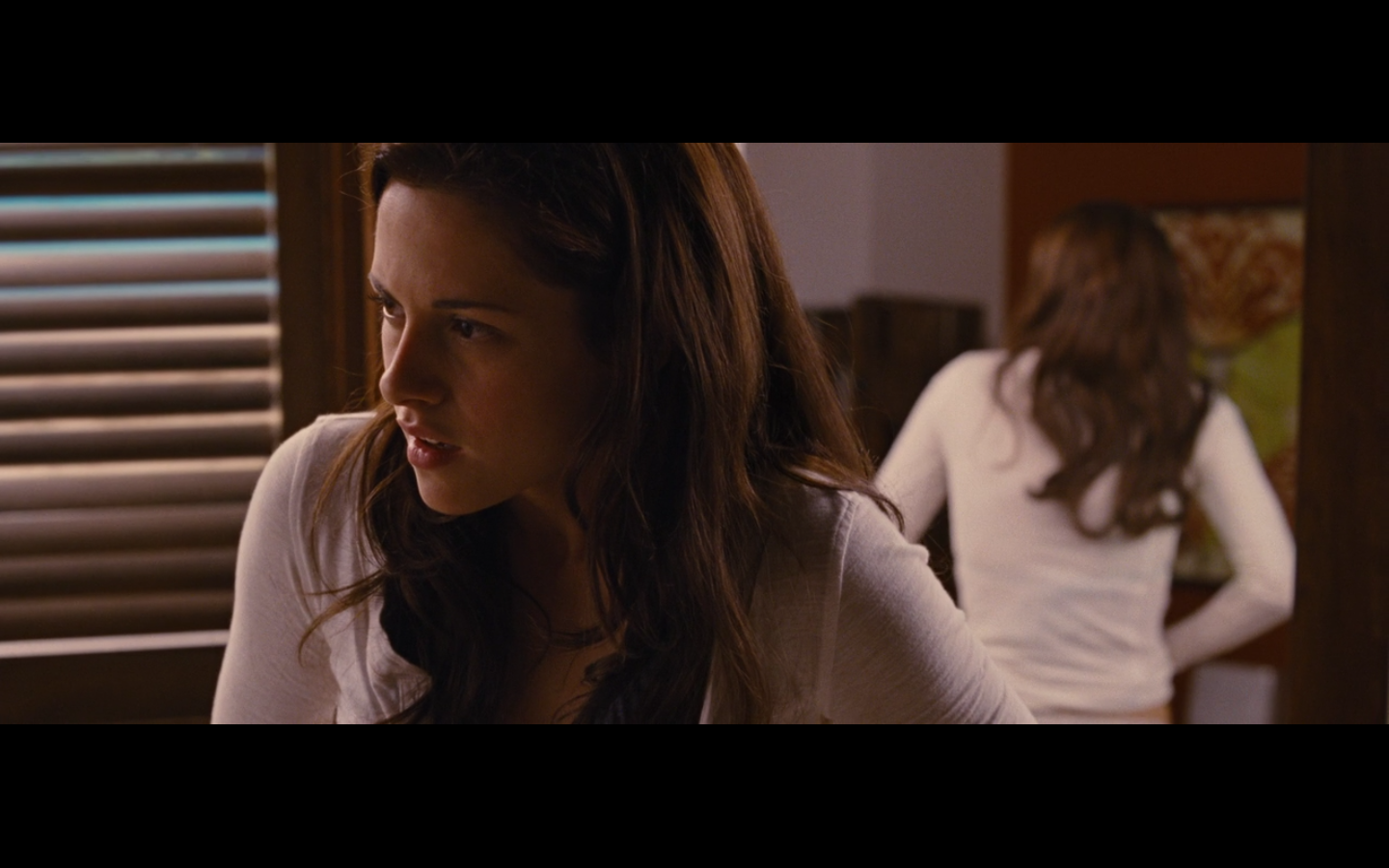 I think Catherine Hardwicke made it a point to call it out in the first movie, and no one else gave a shit afterward because it’s a trivial fucking detail. (Though I guess technically it would help her in the transition, but still — it’s stupid.)