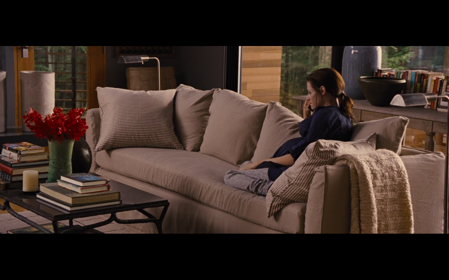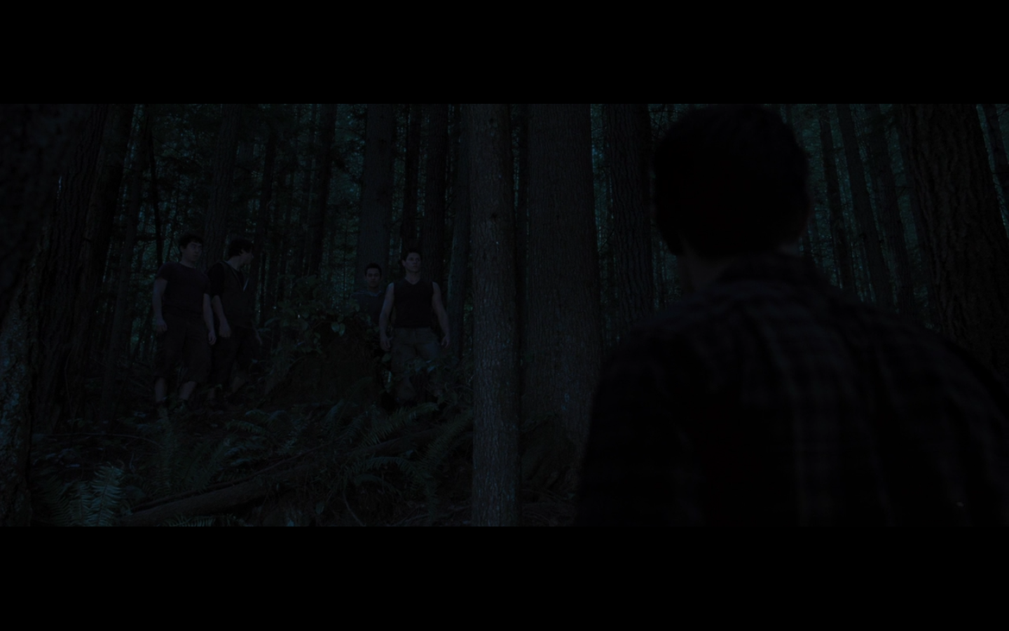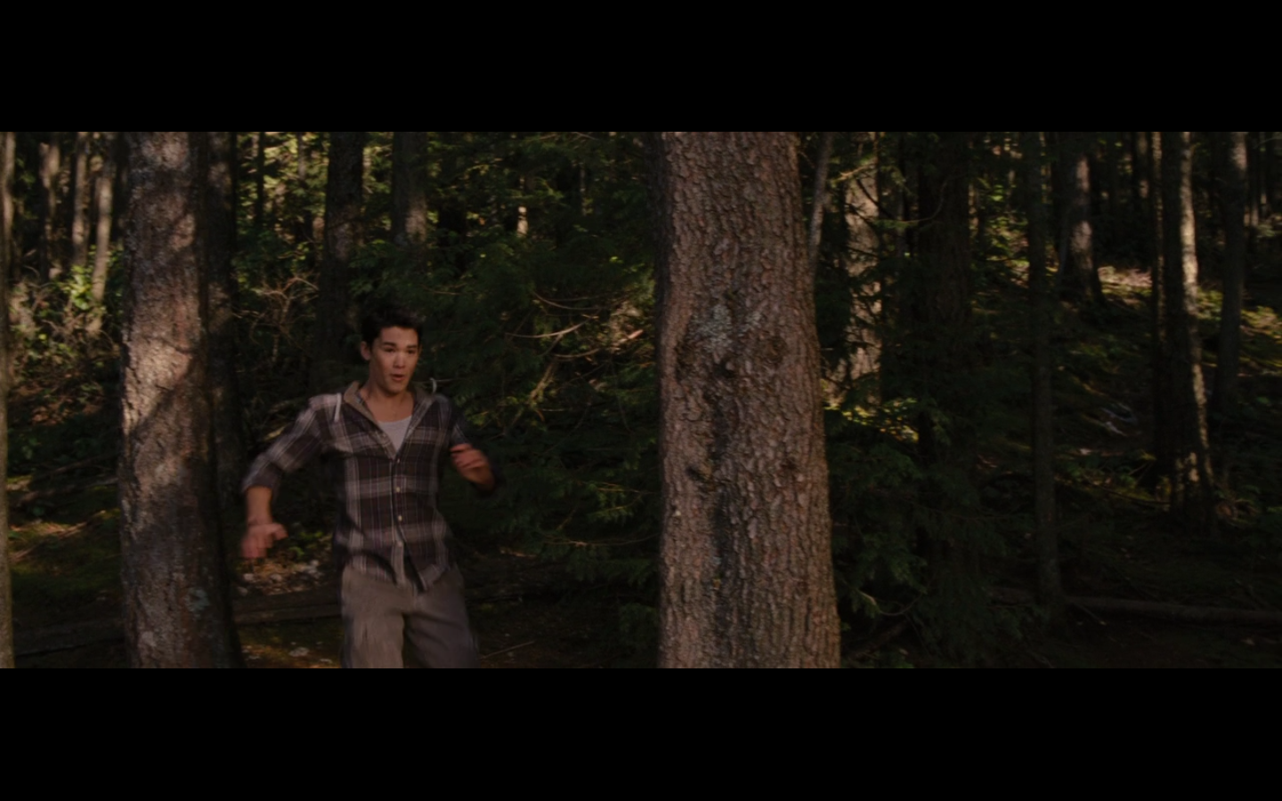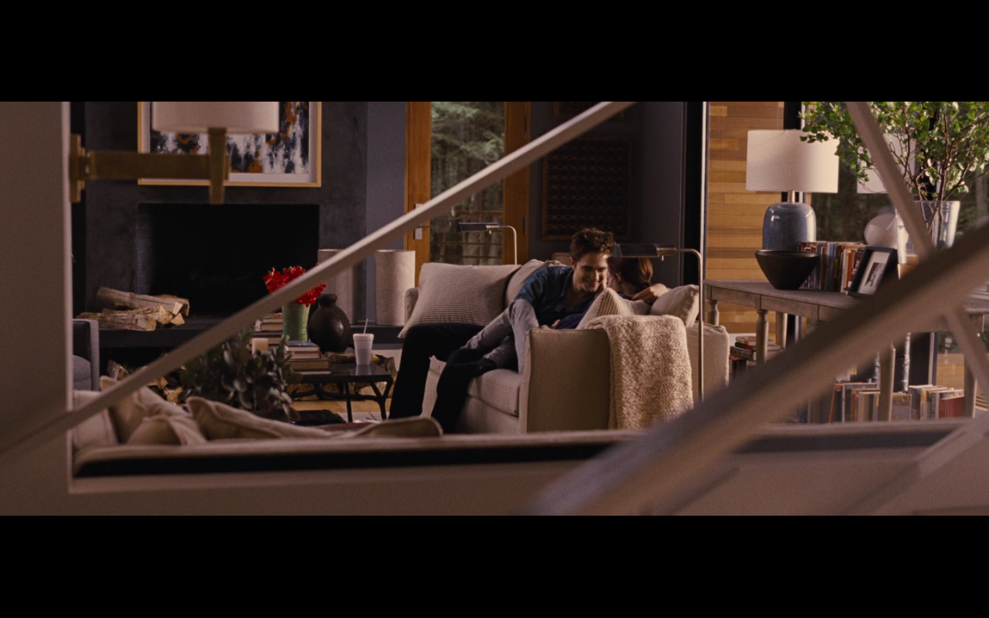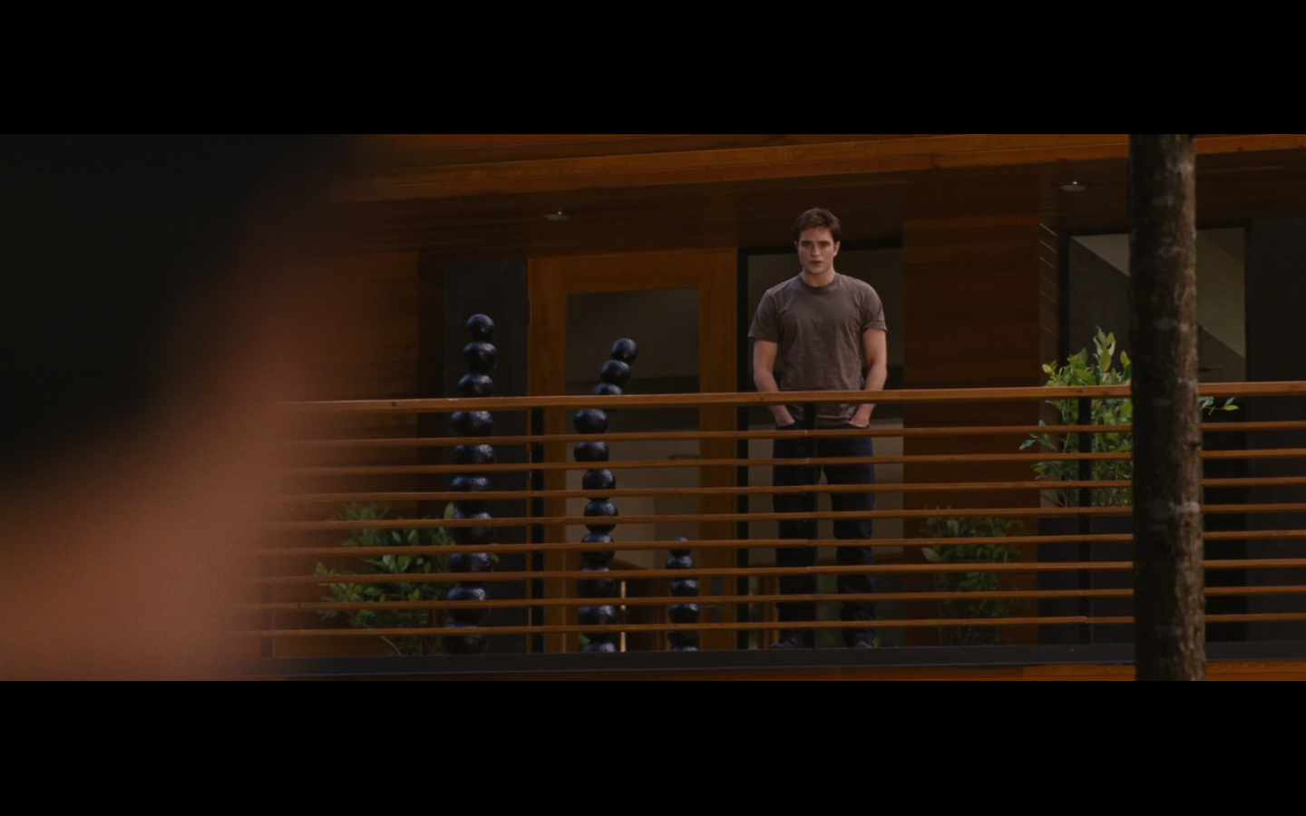 I should still say…I want this place as my summer house. This place is dope. I mean, I want to live in the city usually, but for a getaway? Goddamn. Like pretty much anyone who makes any sense at all, Fallingwater is my go-to, but that seems out of reach. Actually, I’m good with a lot of different places. Those of you who have read our James Bond articles know how much of a boner I have for architecture. The ideal for the B+ Movie Blog would be to strike it rich and movie into the Stahl House (Case Study House #22) to write the blog and watch movies — and some of you may recognize this as the house featured in the first Columbo episode/film, Prescription: Murder. Although, if I was moving back to the States, I’d want something sort of secluded and Japanese, as well. My personal favorite at the moment is Sebastian Mariscal’s Wabi House. I’d live in this place like whoa. Just in case you were interested in architecture and don’t give a shit about Twilight. But I like the Cullens’ place, and particularly the exterior. The second floor section is all done in exposed timber to tie it into the landscape, but the first and third floors’ concrete construction really makes it a contemporary structure. For me, it’s the second floor overhang that does it for me; this bit is orgasmic. It reminds me of other movie buildings I’m crazy about, like the [fake] Vandamm house from North By Northwest. Anyway, if you’re interested in the Cullens’ house, it’s called the Hoke House, and I highly recommend checking it out. Back to Jacob walking up the stairs.