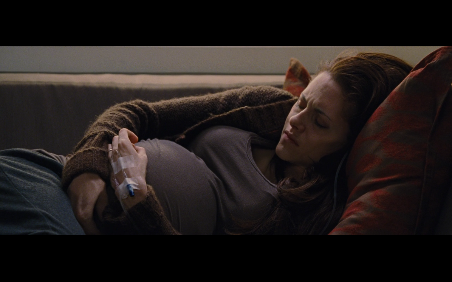 It’s just now sinking in (Mike note: Pun!) that I’m 82 minutes into this 117 minute movie, and that the whole thing is going to be their honeymoon, her pregnancy and the eventual birth. Since Sam’s pack is bad, there’ll be a fight. But other than that, there’s not gonna be anything else. And with that, I’m going to go to the bar. To you guys, I’ll be back in a jiffy — just in time for my next snide remark. But know that I’ve had plenty to drink in the interim. That’s actually my Native American name. Drinks Many Beers. So I’ll be back.
