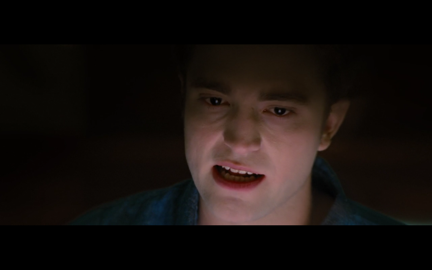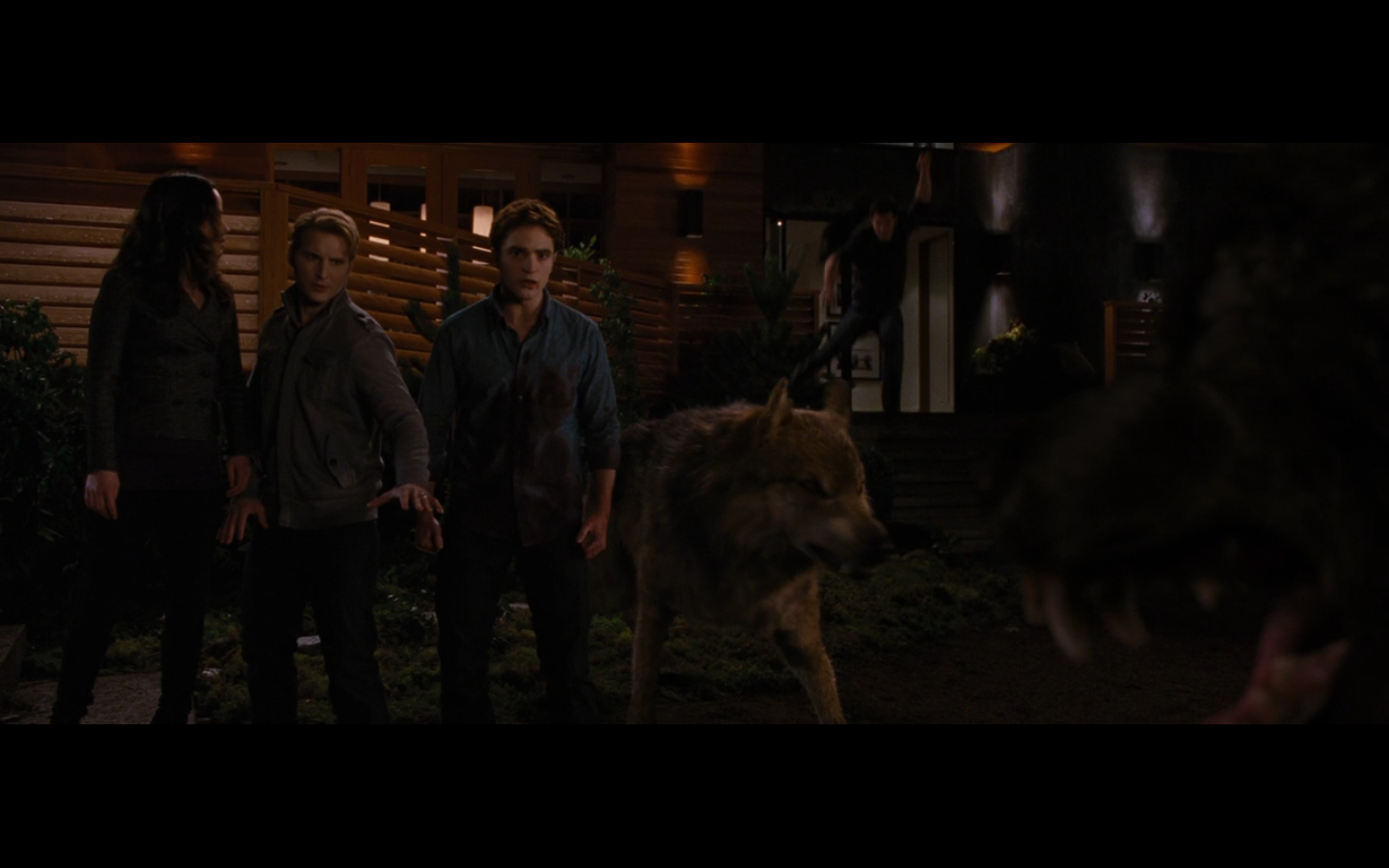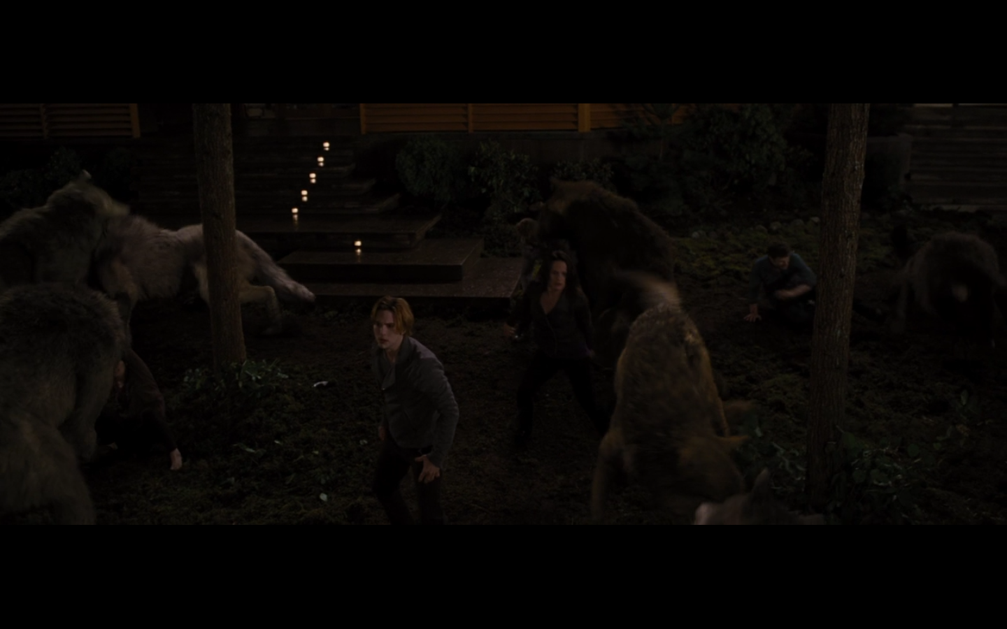 What’s that about? That’s something you say before you go Super Saiyan 2. Is he gonna go SS2 and fuck up all the wolves? But Carlisle, Esme and Emmett are still gone, which means they’re gonna have to show up in a minute when things are looking bad. And they’ve got the magic juice or whatever, so they can fuck people up. Watch. That’s how this shit’s going down.