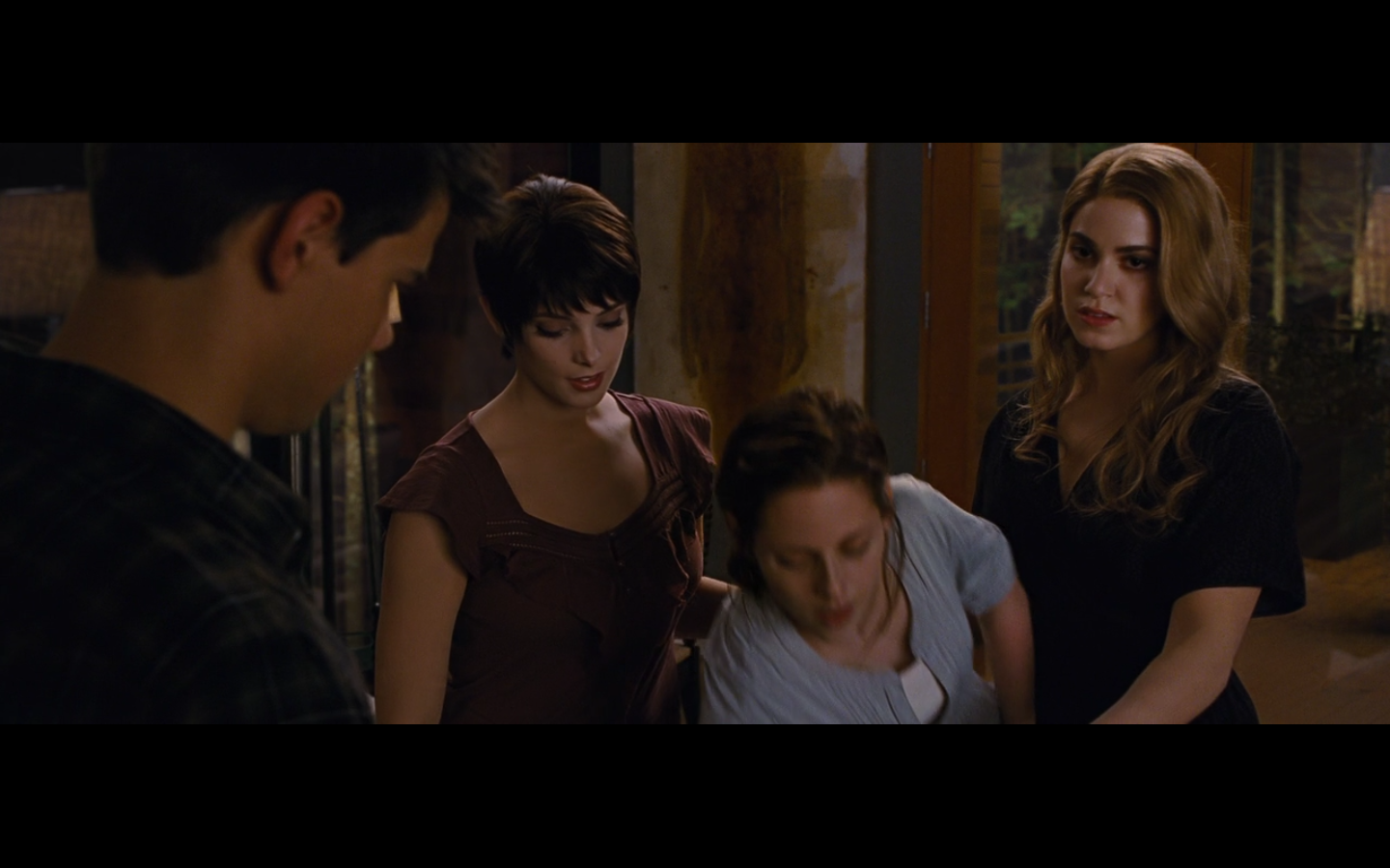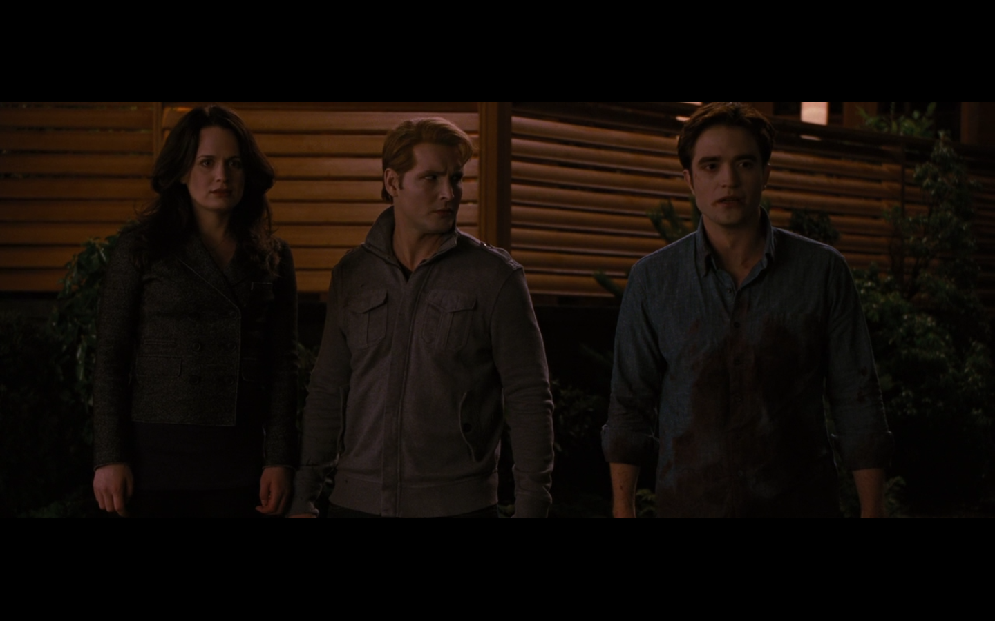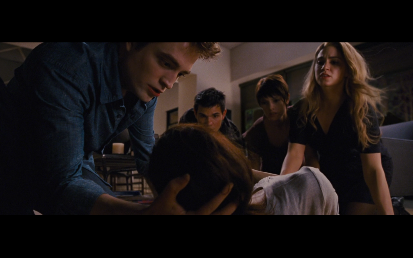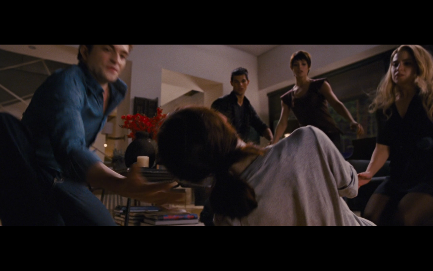 What’s that about? That’s something you say before you go Super Saiyan 2. Is he gonna go SS2 and fuck up all the wolves? But Carlisle, Esme and Emmett are still gone, which means they’re gonna have to show up in a minute when things are looking bad. And they’ve got the magic juice or whatever, so they can fuck people up. Watch. That’s how this shit’s going down.