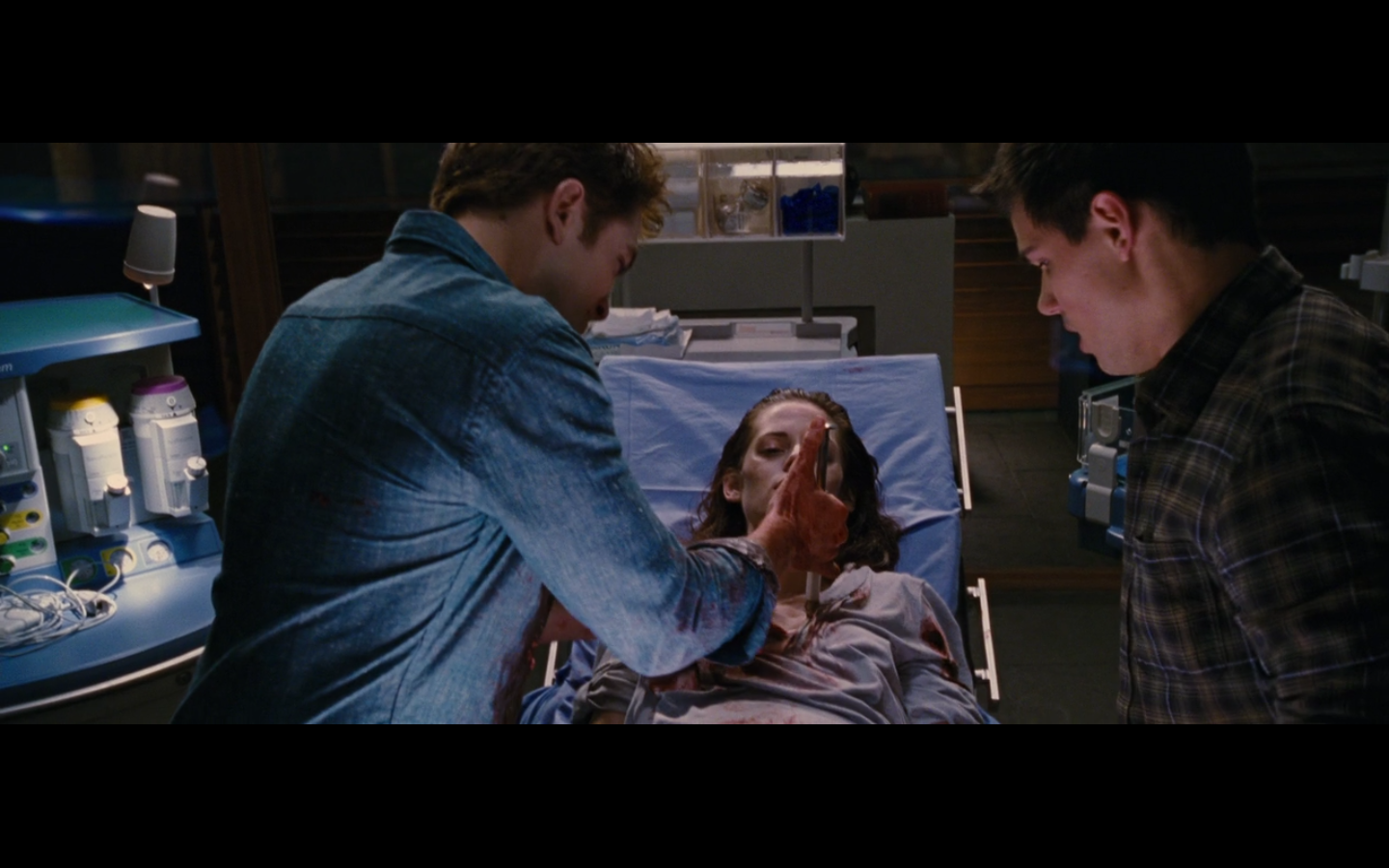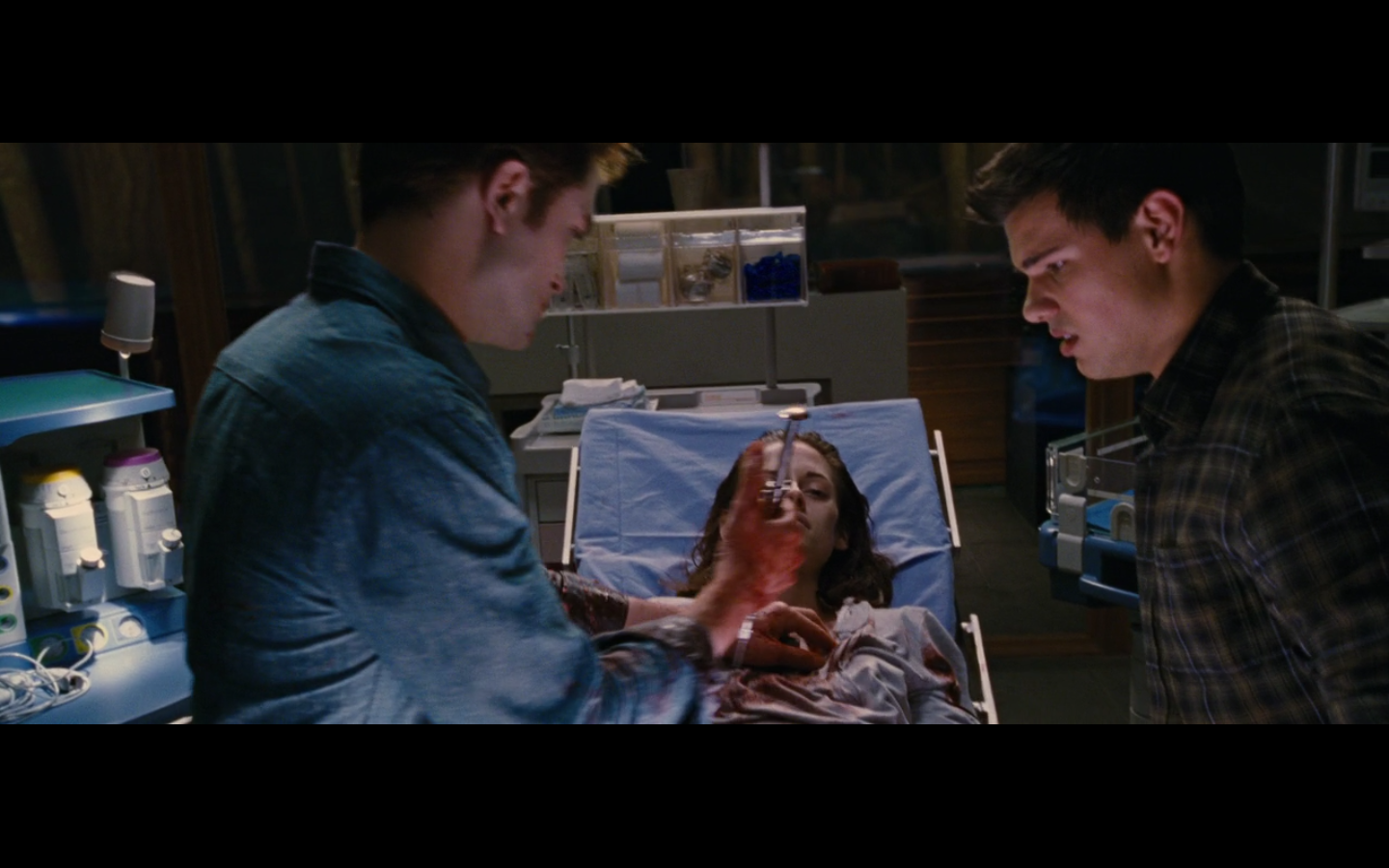Why? The baby seems like demon spawn anyway. It’s sucking the life out of her as it is — you mean to tell me it needs for her to be alive to continue feasting on her? Is this some shit like pulling the plug while you’re in the Matrix? Kristen Stewart’s womb is the Matrix. And this child needs to get free for one reason or another.