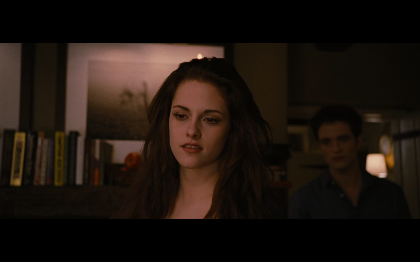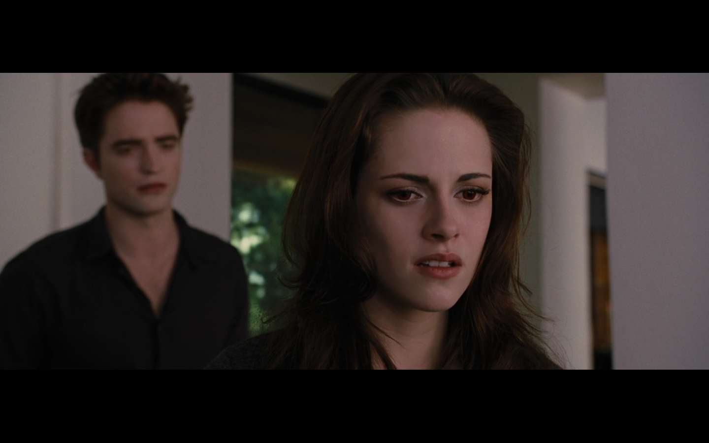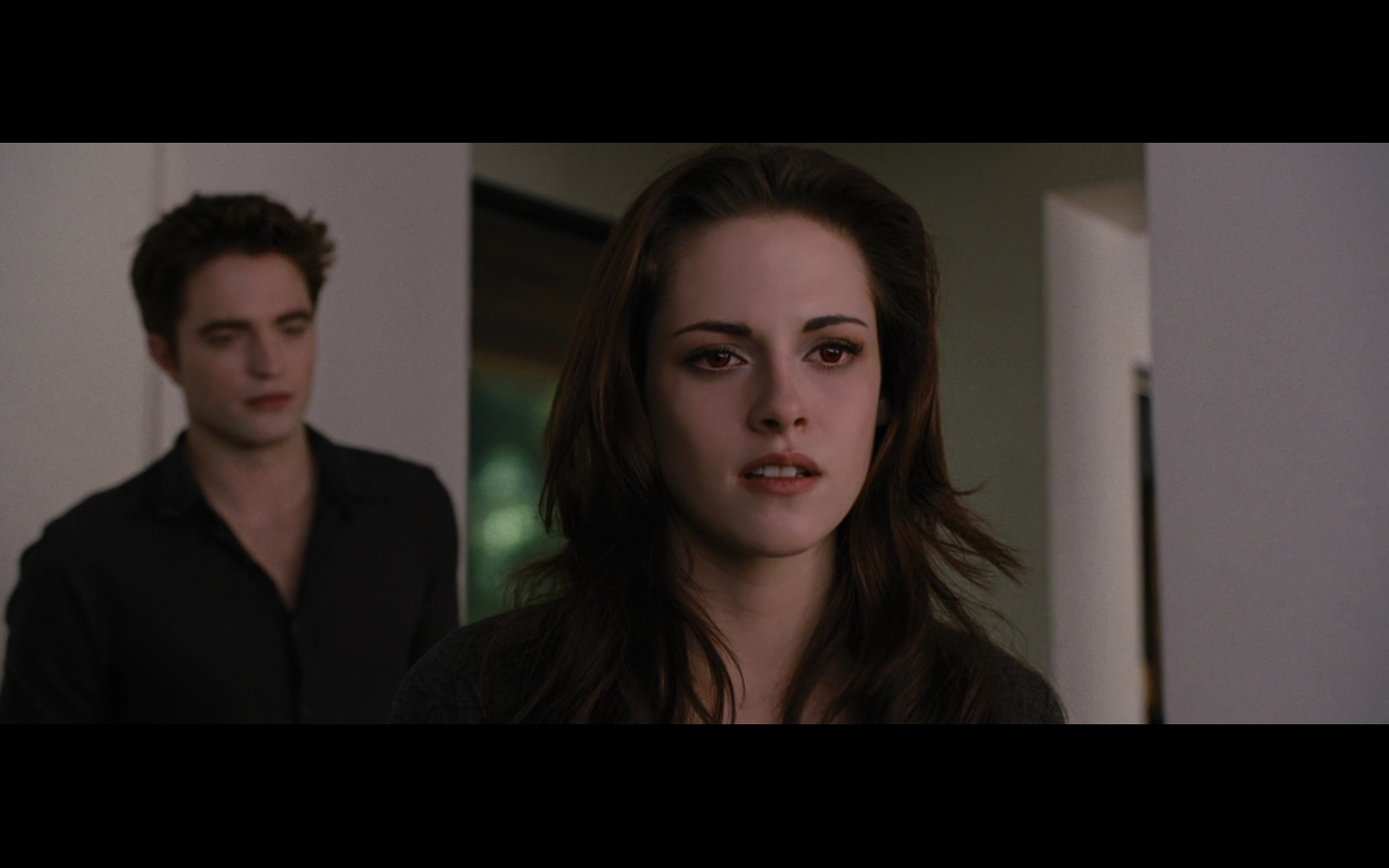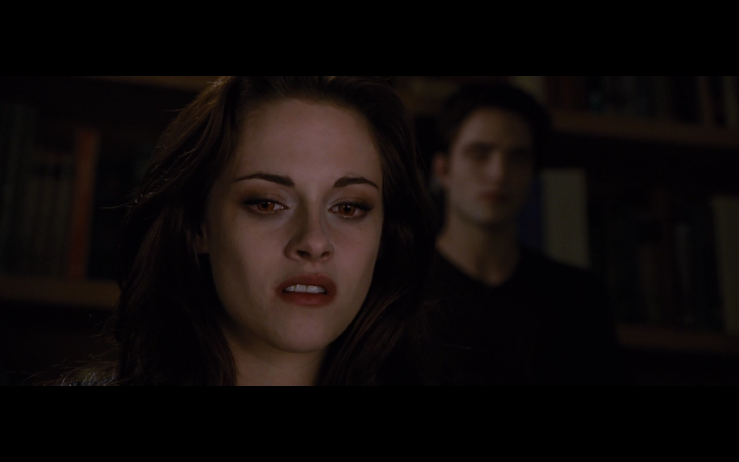 There’s something interesting to be discussed here. When you change into a vampire, what decides your body makeup and all that shit? That is to say, what decides what shape you are, what your fat content is, and what your overall aesthetic ends up being? Because Bella was in rough shape when she was turned — she was emaciated and gaunt, pretty much on the verge of death. But when she changed, she got her muscle tone and fat back. Her hair got fixed and she ended up looking the way she does now. But it would be a little arbitrary to suggest that the transformation process makes you look the way you looked a little while BEFORE the transformation, so there’s really no reason why she shouldn’t have looked the way she was when she was changed.
